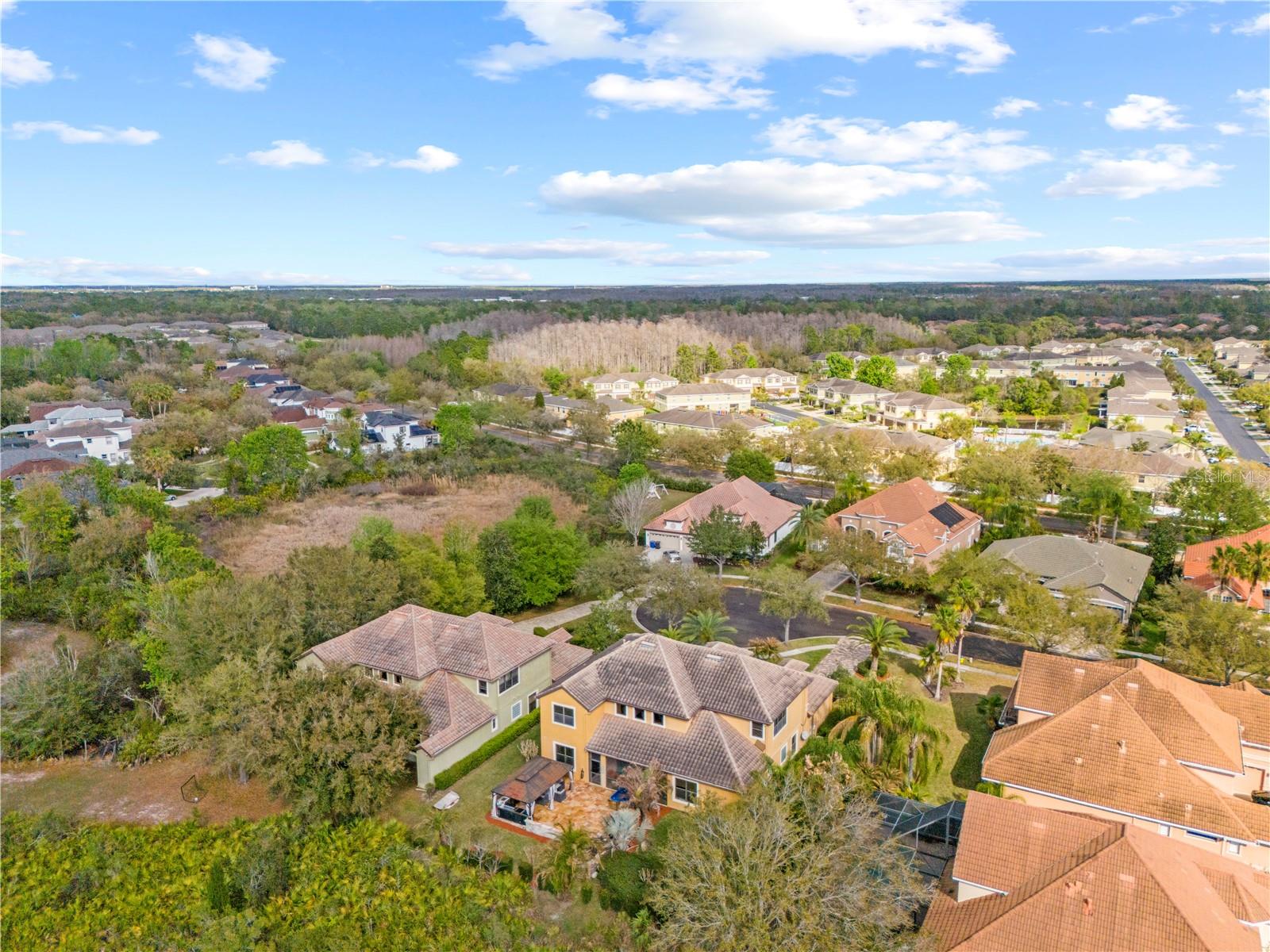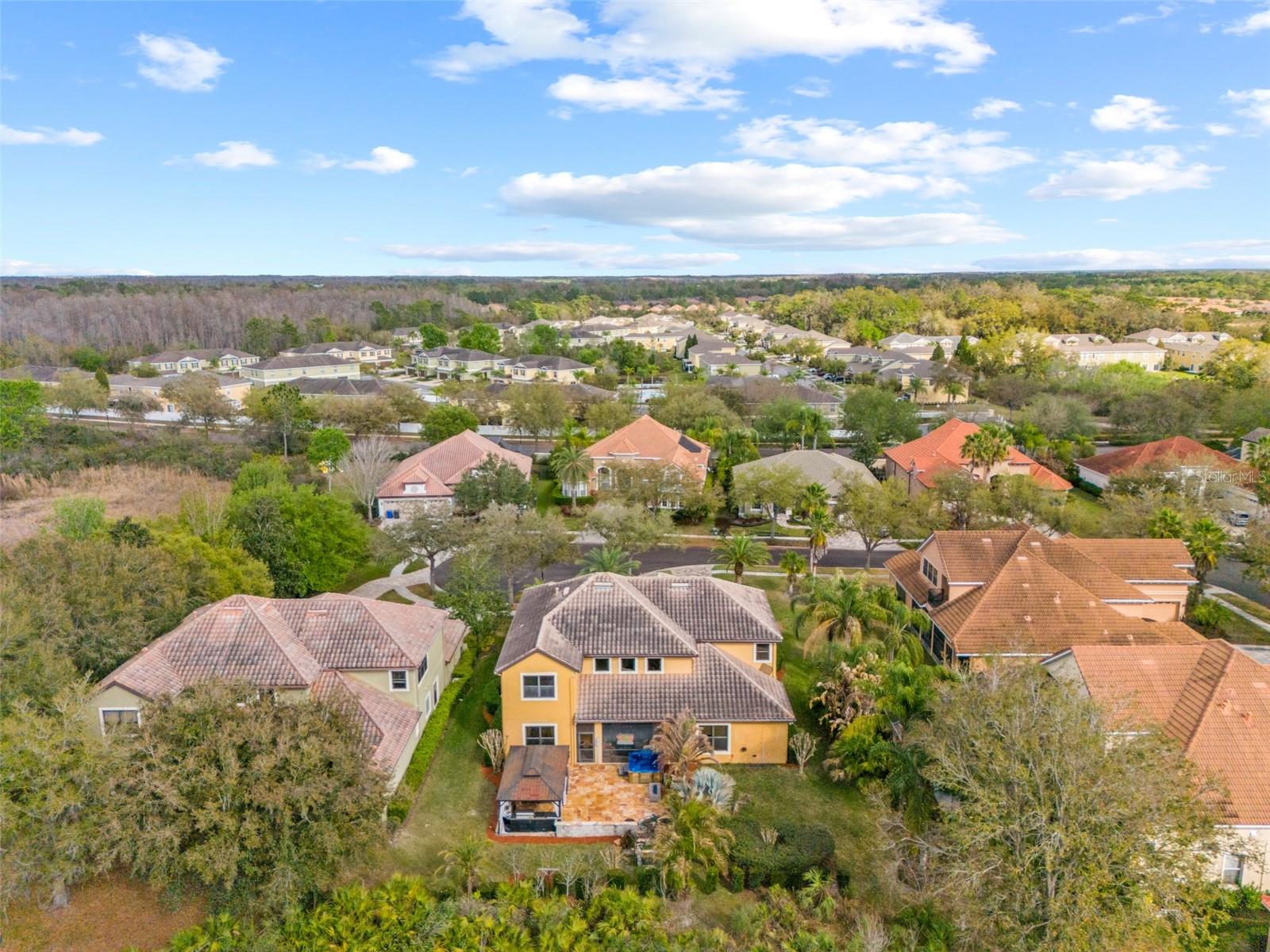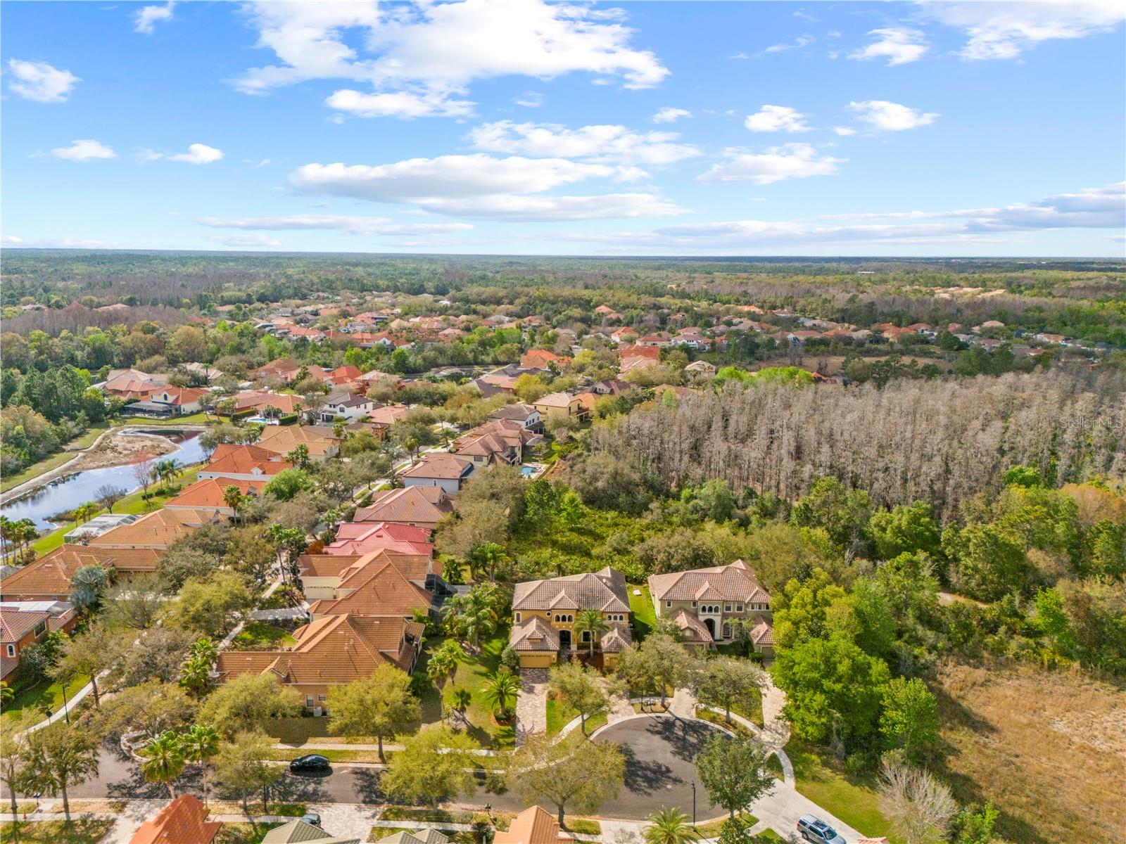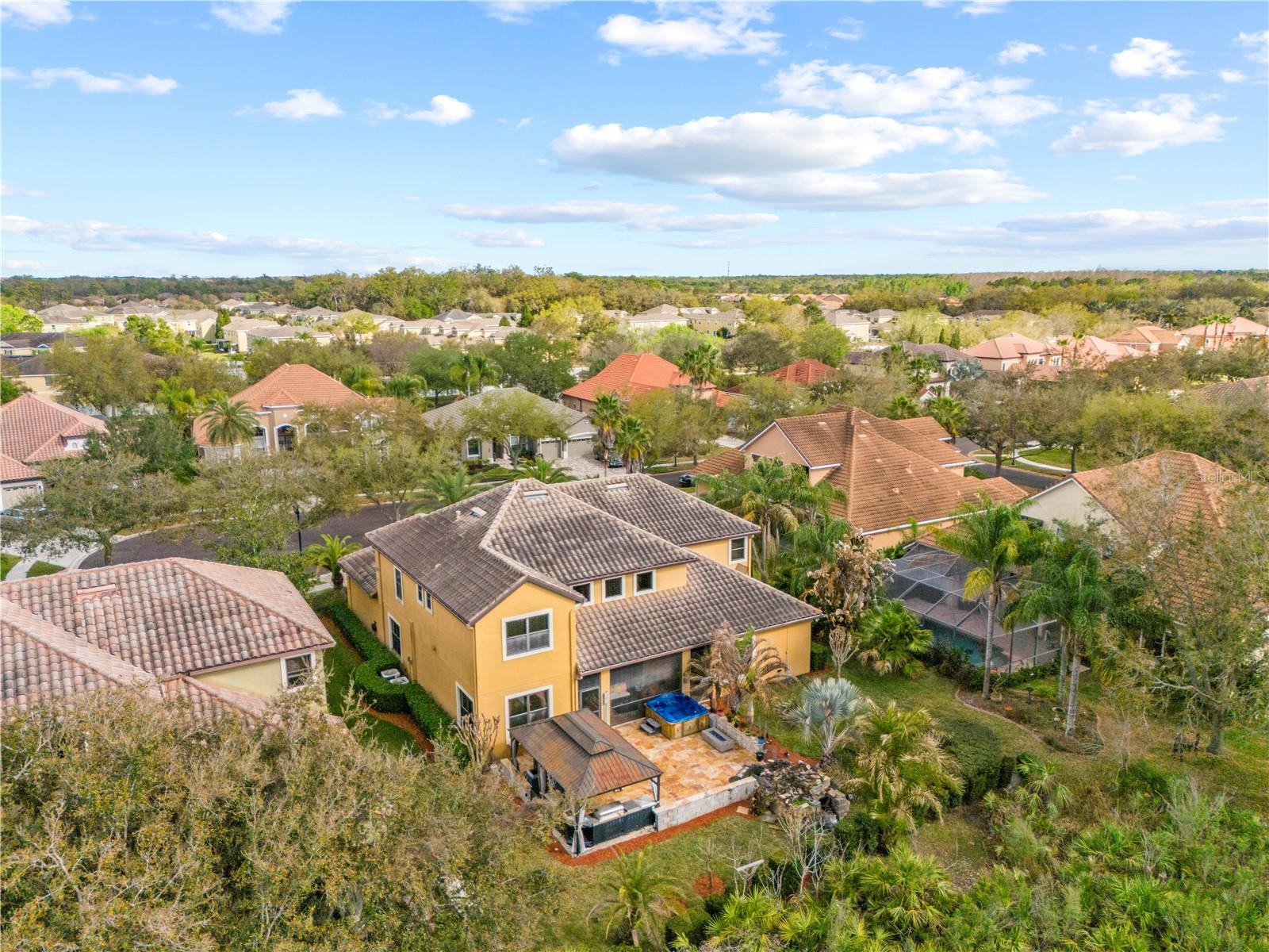 Welcome to this exceptional 5-bedroom, 3-bath single-family home nestled in one of the most sought-after communities in New Tampa, located in Tampa. Situated on a private cul-de-sac within a gated, 24-hour guard community, this stunning residence offers luxury, privacy, and thoughtful upgrades throughout. From the moment you arrive, the custom-designed paver driveway and grand Spanish-tile entrance create an impressive first impression. Inside, the home features polished porcelain flooring throughout the main living areas and is illuminated by two oversized glass bead chandeliers, adding elegance and sophistication to the space. The heart of the home is the beautifully appointed Gourmet kitchen has ample cabinetry, seamlessly connecting to the main living and dining areas—perfect for entertaining and everyday living. The primary suite is a true retreat, featuring an LED fireplace, a custom-designed closet, and a spa-inspired bathroom with marble walls and striking gold fixtures. With five spacious bedrooms and three full bathrooms, the home offers flexibility for family, guests, or dedicated work-from-home spaces. Designed for both relaxation and entertainment, the property boasts an expansive custom travertine patio overlooking untouched preserve land, offering exceptional privacy and tranquil views. The outdoor living space is truly remarkable and includes: A handcrafted waterfall feature. A custom-built stone and granite table with a firepit insert. A professionally designed outdoor kitchen with smoker and refrigerator. A hot tub perfect for unwinding after a long day. Inside, entertainment continues with a dedicated home theater room equipped with a Bose sound system and recliner seating, creating the ultimate movie-night experience. Additional upgrades and features include: 8-camera security system with hard drive and monitor. Generator-ready fuse panel for added peace of mind. Garage workshop tables with pegboard walls. Black and gold flake epoxy garage flooring. The home sits on beautifully manicured landscaping with striking canary palm trees, enhancing the property’s curb appeal and tropical ambiance. Ideally located in New Tampa, residents enjoy close proximity to outdoor recreation such as Flatwoods Wilderness Park, as well as premier shopping and dining destinations like The Shops at Wiregrass and Tampa Premium Outlets. Combining luxury finishes, exceptional outdoor living, and a prime location, this one-of-a-kind home offers an extraordinary opportunity to experience the best of New Tampa living.