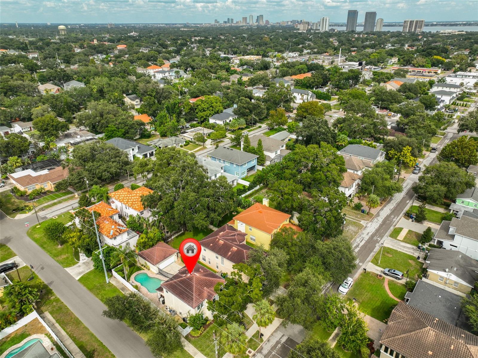 This Mediterranean-style home with a tile roof offers 3 bedrooms plus an office, 2.5 bathrooms, and a detached 2-car garage, and features solid block construction on both stories. The fenced backyard features a pool with a covered patio and artificial turf, creating a private outdoor space for relaxation and entertaining. Inside, the first floor includes new hardwood floors (2023), a versatile bonus space that can serve as a fourth bedroom, playroom, or office, a half bathroom, a formal dining room, and an open kitchen with granite countertops, an island, and pendant lighting overlooking the family room with built-in shelving. Upstairs, the owner's suite offers a soaking tub, walk-in shower, and generous closet space, while the secondary bedrooms are spacious. Additional upgrades include a brand NEW HVAC (2026), tankless water heater (2021), water softener (2020), high-impact windows and doors (2022), and new tile in the bathrooms (2022). Located in the desirable Roosevelt, Coleman, and Plant school district. Flood zone X500 , so flood insurance is NOT required and no water intrusion in past hurricanes. This home is close to Downtown Tampa, Bayshore Boulevard, Hyde Park, Tampa International Airport, and the SOHO district, providing convenient access to shopping, dining, and entertainment. Call today for your private showing!