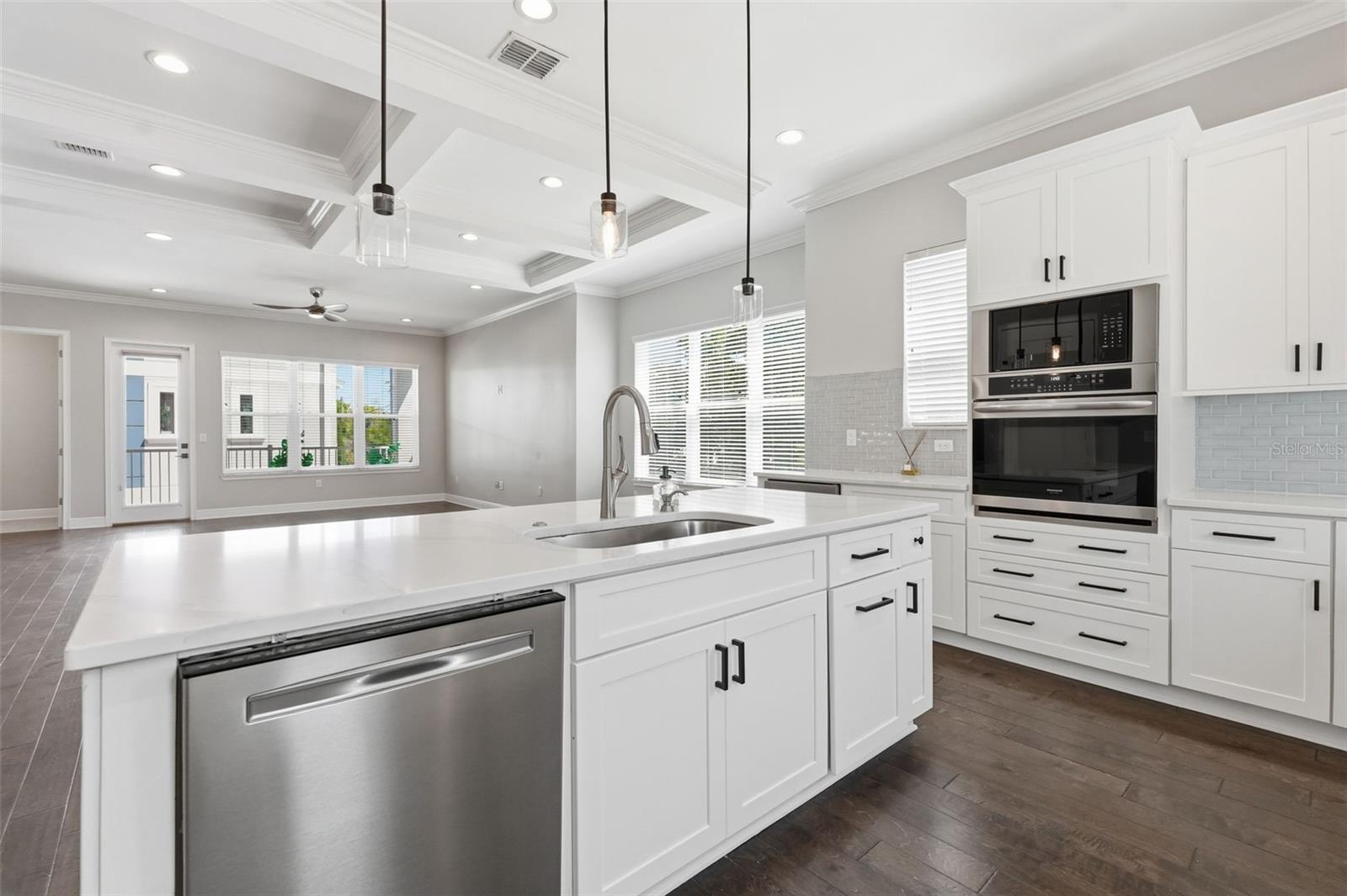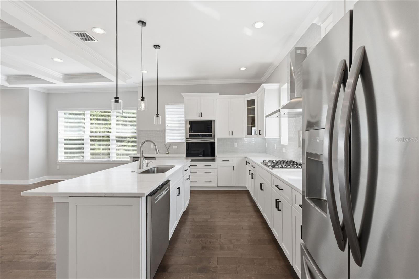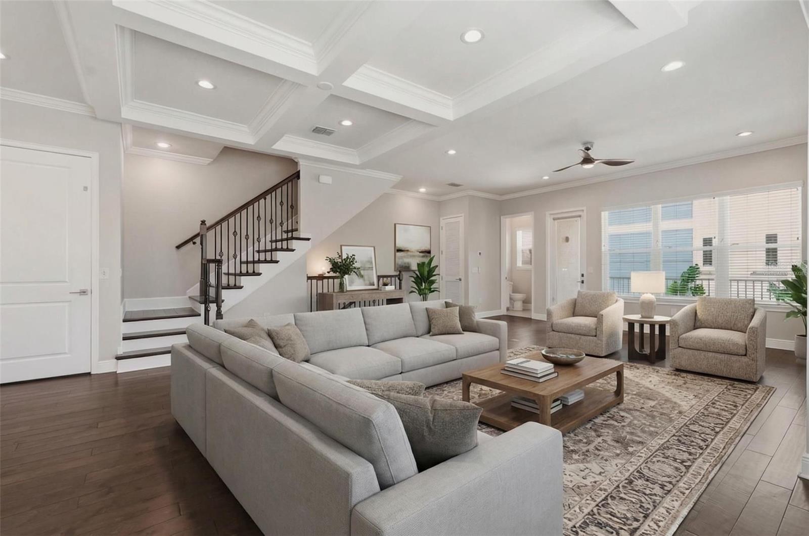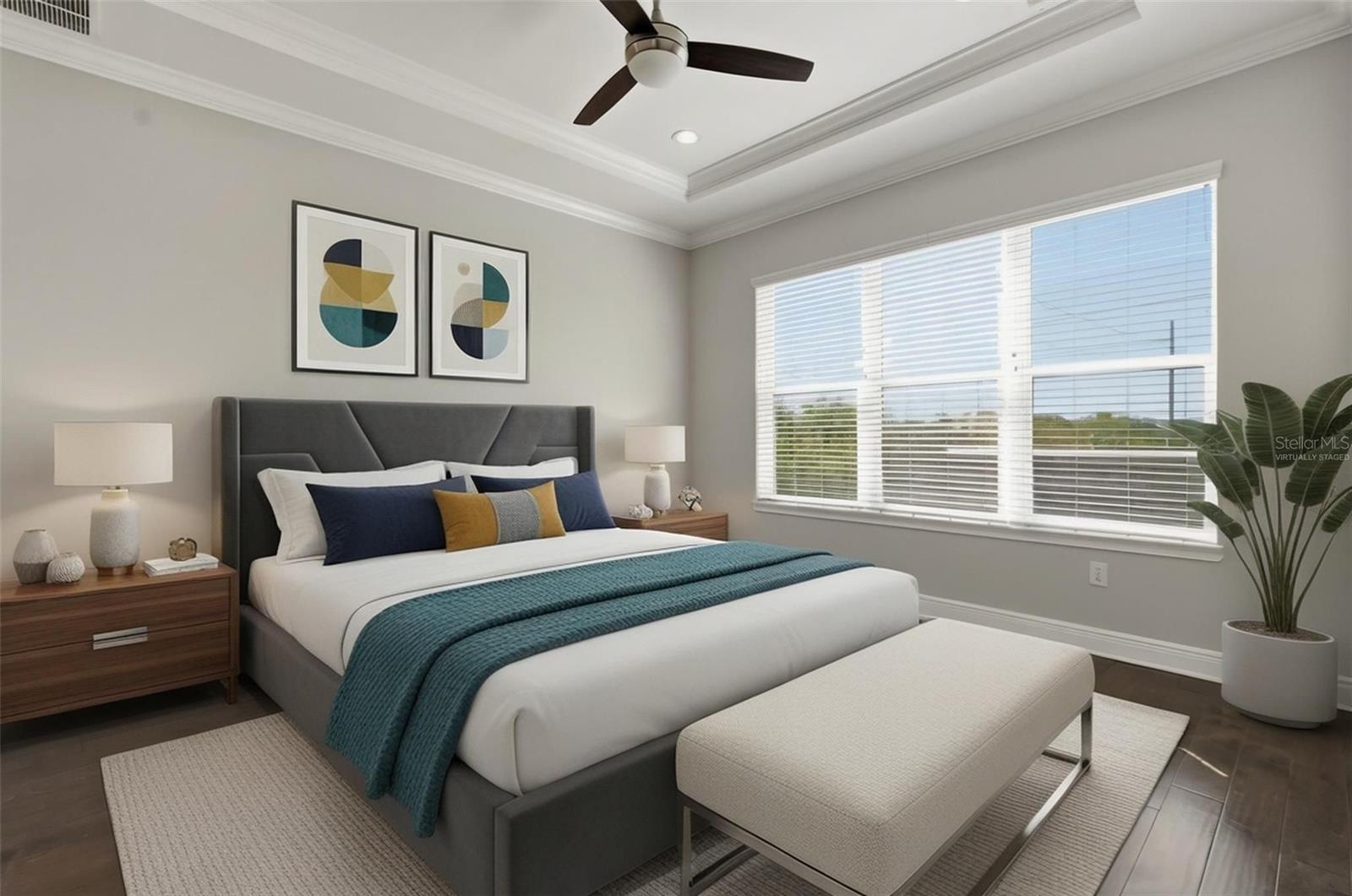 One or more photo(s) has been virtually staged. Step into your South Tampa oasis with this exceptional luxury townhouse, perfectly situated in a vibrant community. Built in 2021, this four-bedroom, three-and-a-half-bathroom corner unit spans over 2,500 square feet across three stylish levels. From the moment you arrive, the private elevator transports you effortlessly from the two-car garage straight to your residence, ensuring convenience and elegance. On the first floor, you'll find a versatile bedroom with an en-suite bathroom - ideal for guests or a dedicated home office. Sliding glass doors lead to a vinyl-fenced backyard, an inviting space for outdoor gatherings, playtime with pets, or soaking up the Florida sunshine. On the second floor, discover a spacious open-concept living area bathed in natural light and detailed with crown molding. The kitchen is a culinary dream, featuring sleek quartz countertops, a gas range, stainless steel appliances, and a generous island with pendant lighting, perfect for cooking and entertaining. The adjacent dining area boasts a coffered ceiling, while a charming balcony offers a tranquil spot for relaxation. A convenient half bath completes this level. Ascend to the third floor to find the luxurious primary suite, a true retreat with a spa-like en-suite bathroom that includes a standalone tub, a glass-enclosed shower, a double vanity with quartz countertops, and a walk-in closet with a custom organization system. Two additional guest bedrooms and a full bathroom with a quartz vanity provide ample space for family and friends. This townhouse's prime location places you minutes from a diverse array of dining options and shopping destinations, including Trader Joe’s and Whole Foods. Enjoy easy access to Hyde Park, Sparkman Wharf, Amalie Arena, Tampa International Airport, and Raymond James Stadium. With the Gulf beaches just a short drive away, this property offers the quintessential Florida lifestyle. Seize the opportunity to make this luxurious haven your new home!