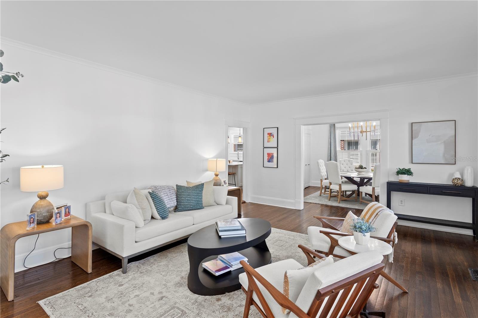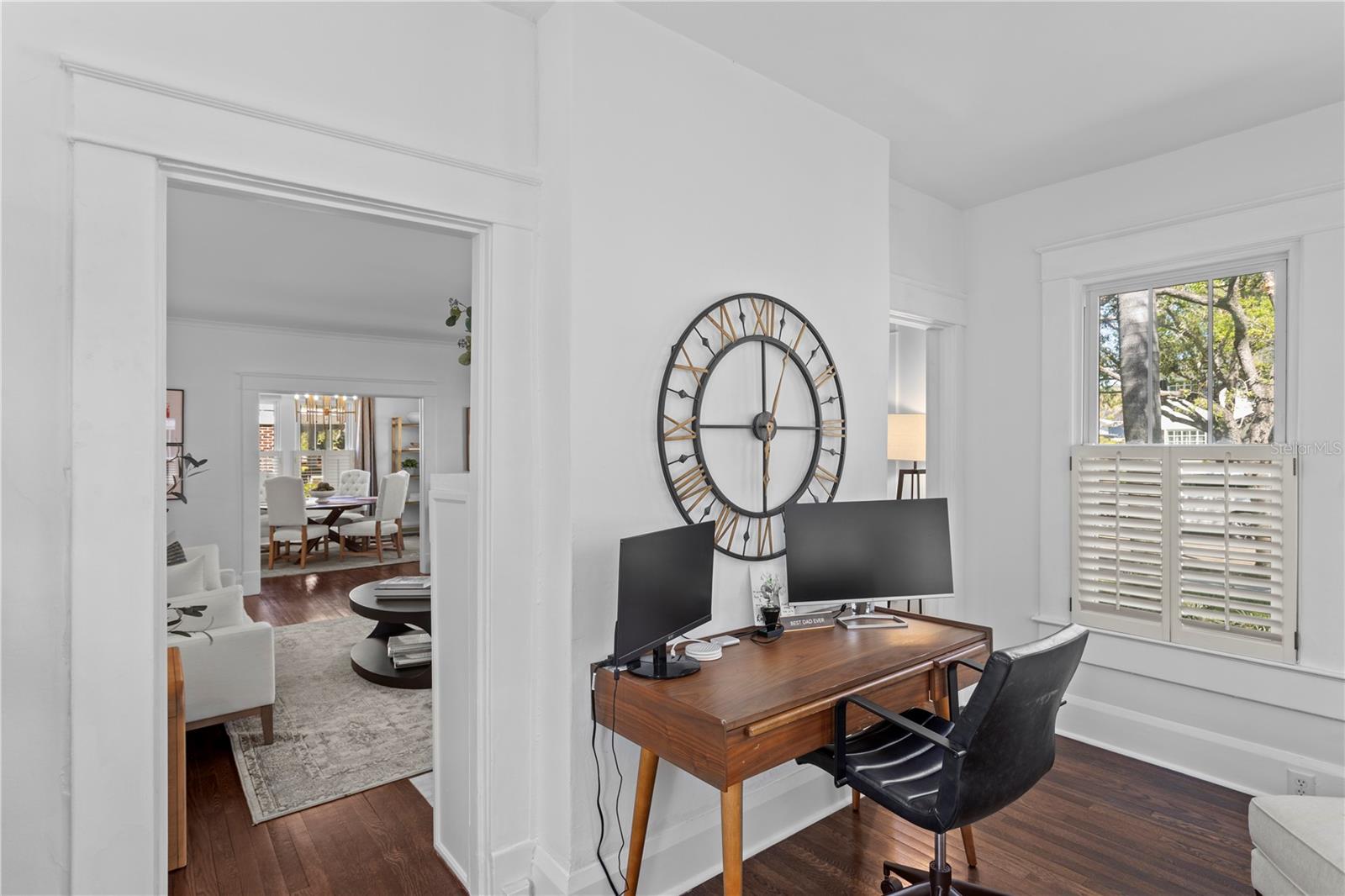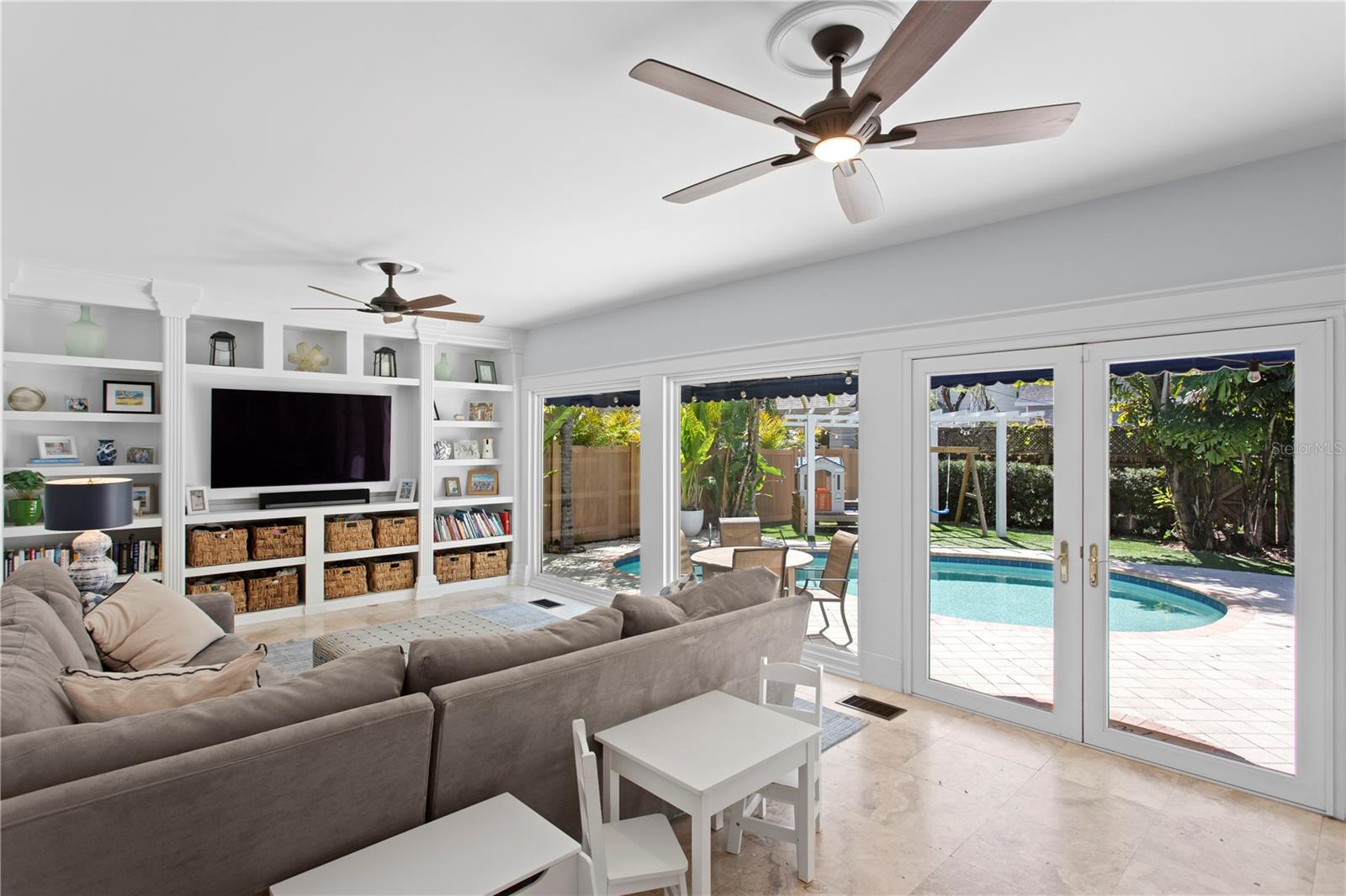 A rare gem nestled in coveted New Suburb Beautiful, this Southern-style Colonial Revival pool home is a study in character and timeless architecture. An unmatched lifestyle awaits, defined by exceptional walkability and immediate proximity to Palma Ceia, Bayshore Boulevard, and Hyde Park. Step inside to an inviting, spacious formal living room, perfect for hosting guests and conversation. Tucked beyond, through elegant cased openings, is a generous dedicated space for an office. The flow continues into the formal dining room, leading you to the beautifully updated kitchen. This culinary space is equipped with a gas stove, quartz countertops, and a large central island for casual dining and prep. The rear of the home opens to a grand family room featuring full-height picture windows that flood the room with natural light, complemented by handsome floor-to-ceiling built-ins. The first floor also offers a convenient guest bedroom and a detached full bathroom that doubles perfectly as a powder bath. Upstairs, a functional layout provides two spacious guest bedrooms with a shared bath, all leading to the private, generously sized Primary Bedroom Suite. The luxurious suite boasts a custom built-in closet and a fully updated, modern bathroom (2025). Outside you will find a two car garage and a stunning outdoor living space with very limited maintenance surrounding the heated pool and tropical landscaping that gives ultimate privacy. The home has been continuously enhanced with a New Roof (2025), New Hardie Siding, New AC units (2021/2019), and a Fully Encapsulated Crawl Space (2024). New interior and exterior paint, a full primary bath remodel (2025), and a primary bedroom custom closet (2025). Double pane windows, historic trim and moldings, and shutters throughout the home. Book your private showing today and own a piece of Tampa history with all the modern amenities.