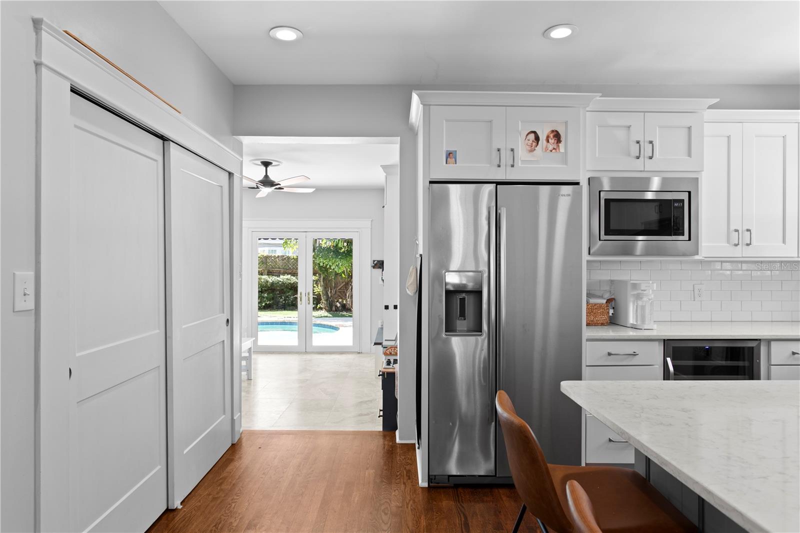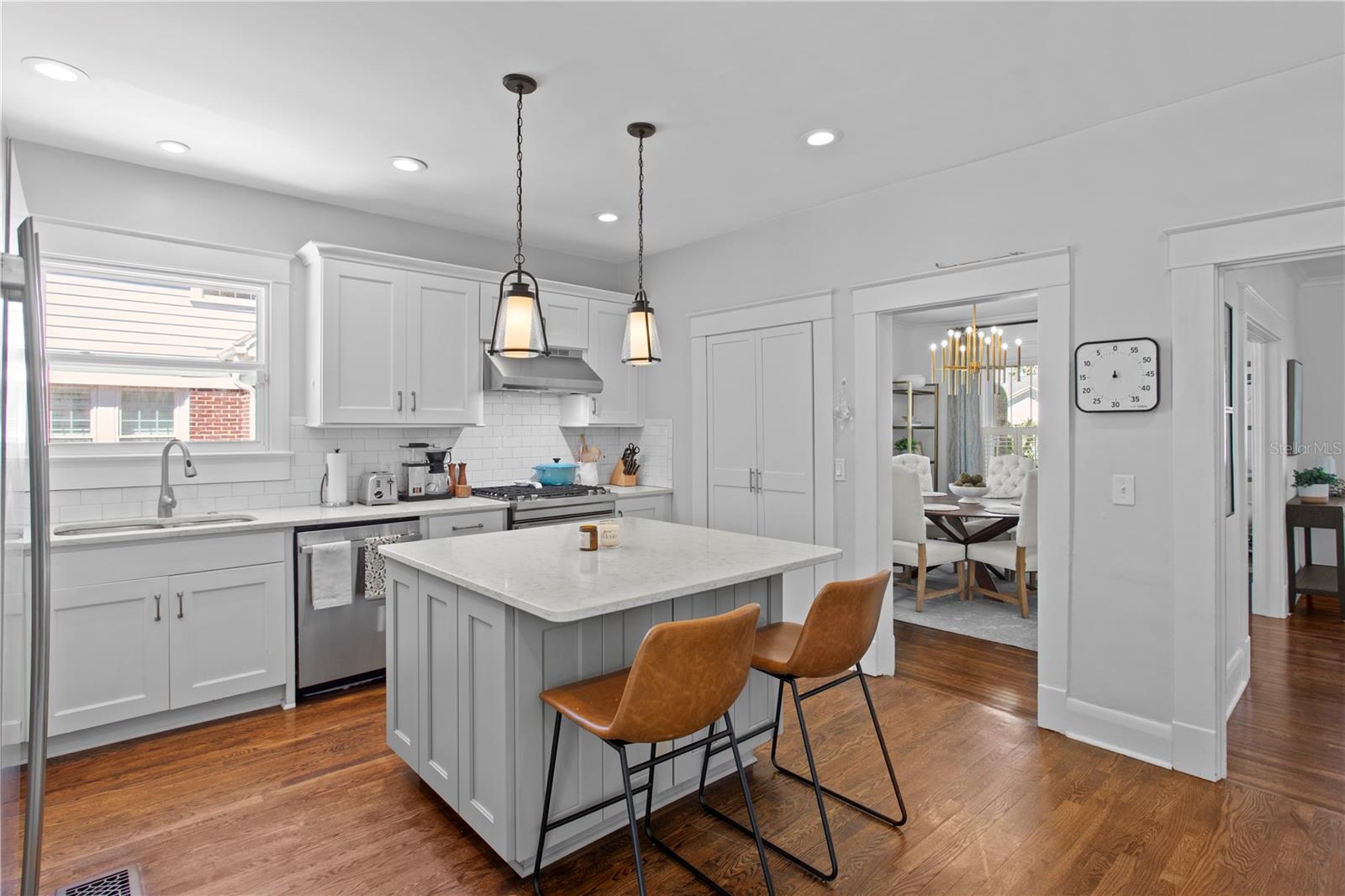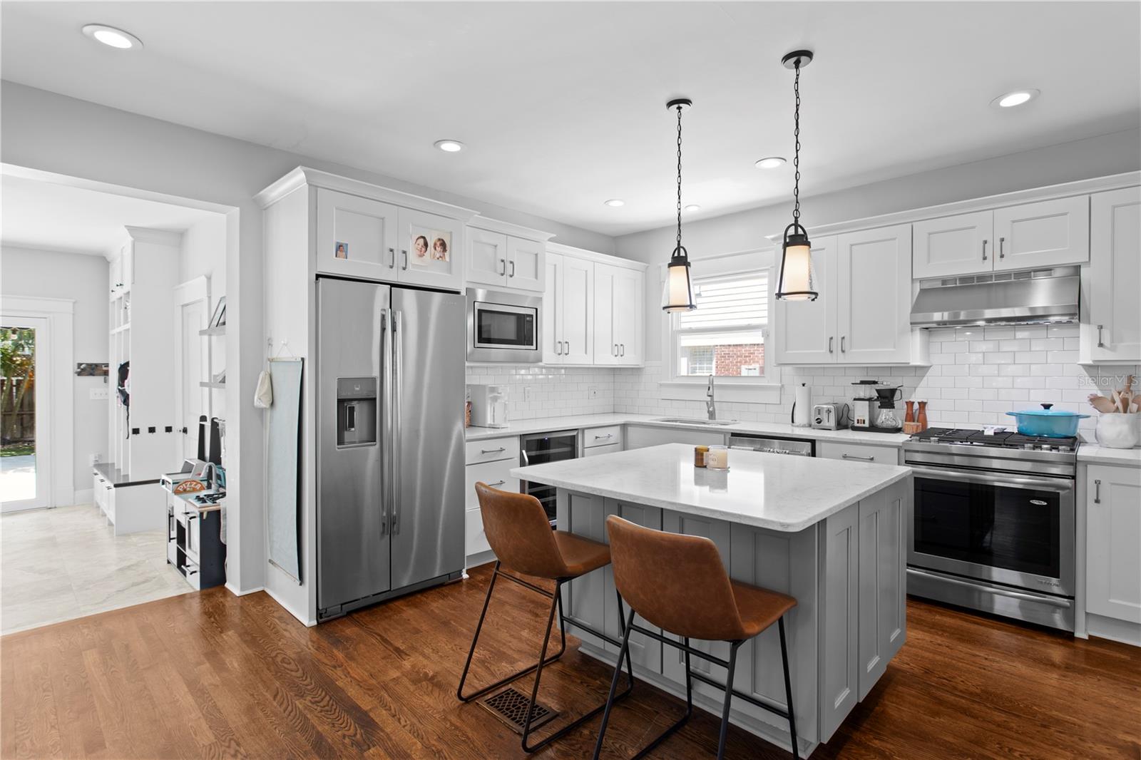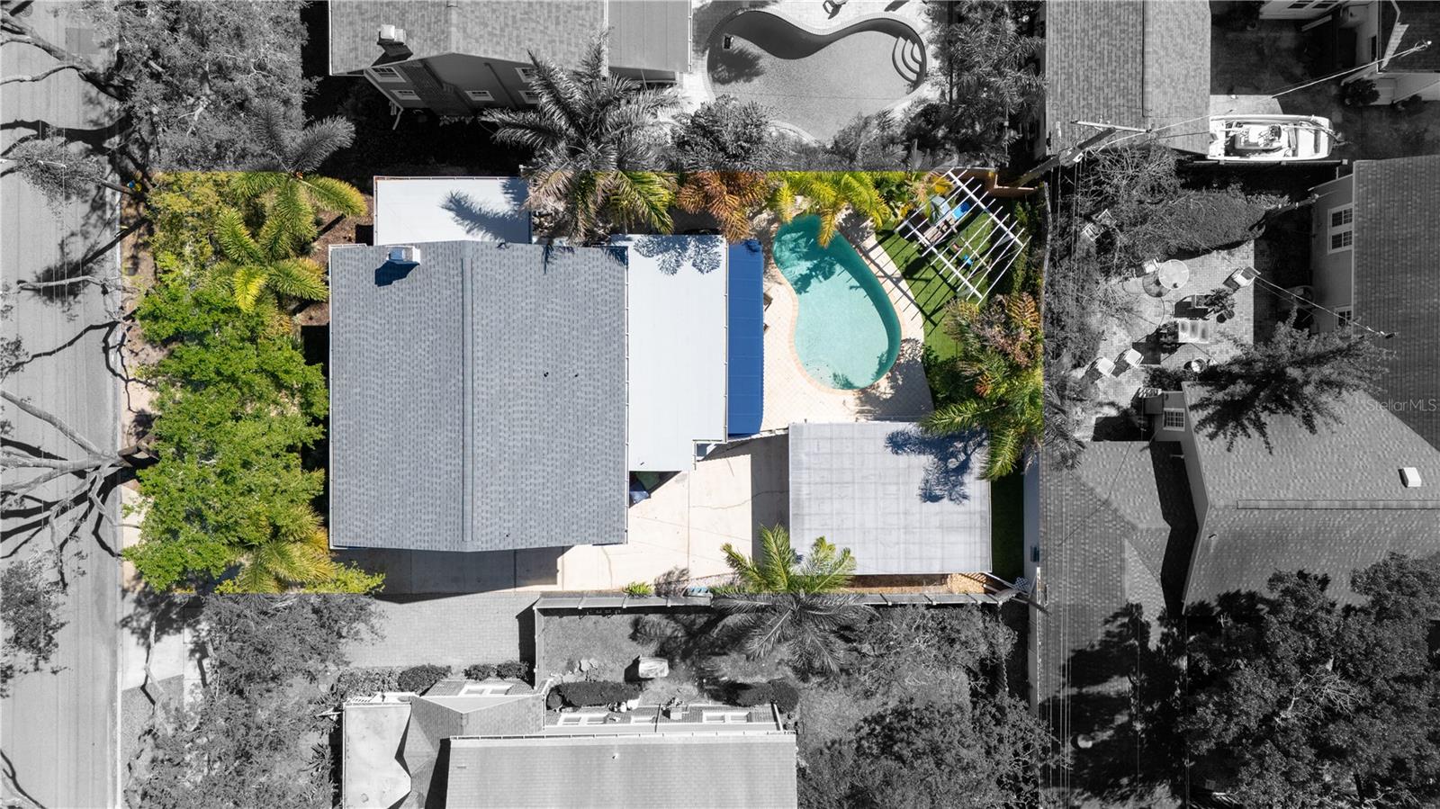 A rare gem nestled in coveted New Suburb Beautiful, this Southern-style Colonial Revival pool home is a study in character and timeless architecture. An unmatched lifestyle awaits, defined by exceptional walkability and immediate proximity to Palma Ceia, Bayshore Boulevard, and Hyde Park. Step inside to an inviting, spacious formal living room, perfect for hosting guests and conversation. Tucked beyond, through elegant cased openings, is a generous dedicated space for an office. The flow continues into the formal dining room, leading you to the beautifully updated kitchen. This culinary space is equipped with a gas stove, quartz countertops, and a large central island for casual dining and prep. The rear of the home opens to a grand family room featuring full-height picture windows that flood the room with natural light, complemented by handsome floor-to-ceiling built-ins. The first floor also offers a convenient guest bedroom and a detached full bathroom that doubles perfectly as a powder bath. Upstairs, a functional layout provides two spacious guest bedrooms with a shared bath, all leading to the private, generously sized Primary Bedroom Suite. The luxurious suite boasts a custom built-in closet and a fully updated, modern bathroom (2025). Outside you will find a two car garage and a stunning outdoor living space with very limited maintenance surrounding the heated pool and tropical landscaping that gives ultimate privacy. The home has been continuously enhanced with a New Roof (2025), New Hardie Siding, New AC units (2021/2019), and a Fully Encapsulated Crawl Space (2024). New interior and exterior paint, a full primary bath remodel (2025), and a primary bedroom custom closet (2025). Double pane windows, historic trim and moldings, and shutters throughout the home. Book your private showing today and own a piece of Tampa history with all the modern amenities.