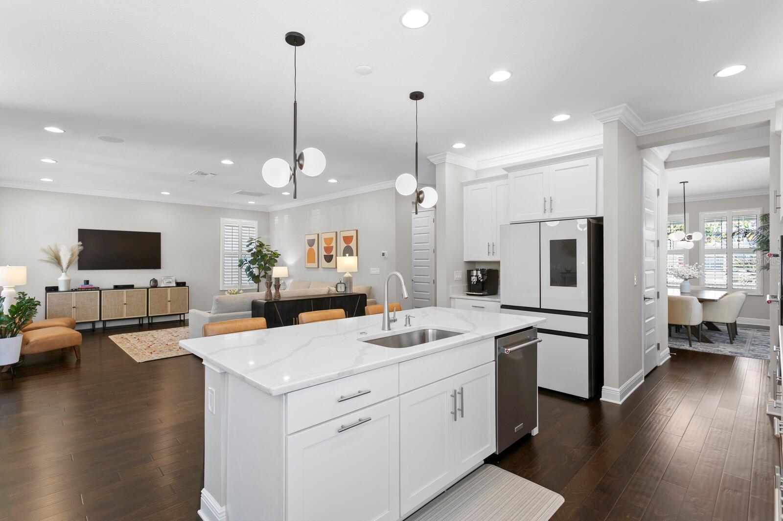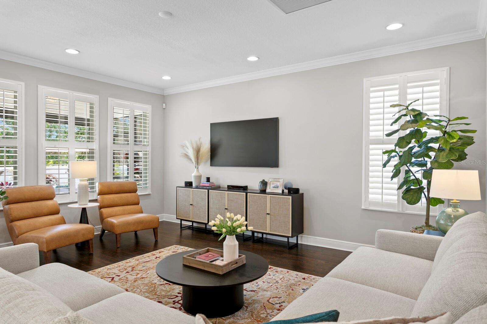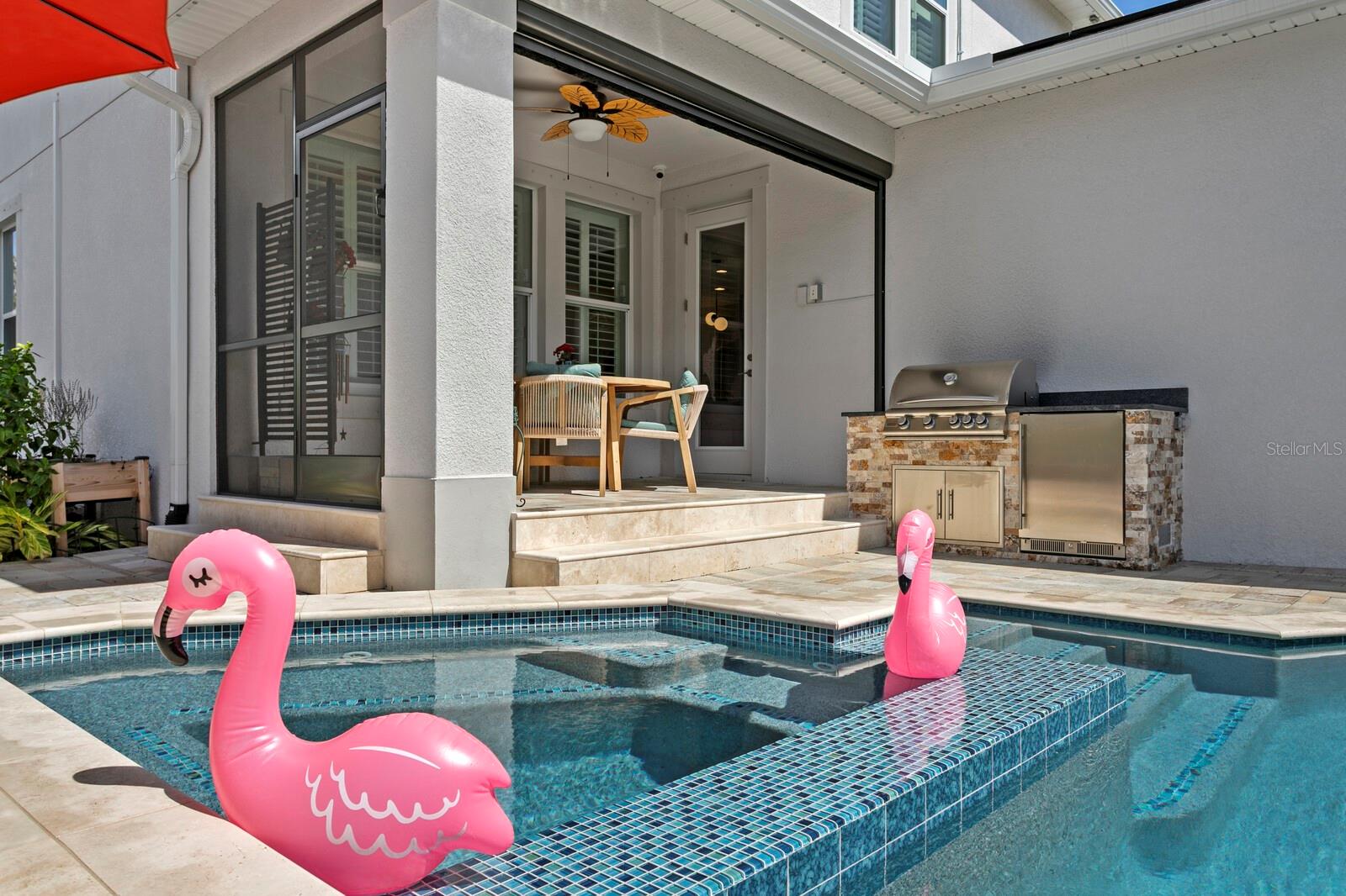 Welcome to 2702 W Cass Street, a stunning nearly new 2024-built home with thoughtfully curated upgrades throughout. Ideally situated on a desirable corner lot adjacent to Vila Brothers Park and zoned for the highly rated Plant High School District, this home offers the perfect blend of modern luxury, smart technology, and resort-style outdoor living just minutes from Midtown Tampa, Hyde Park Village, and Downtown Tampa. From the moment you arrive, the home’s curb appeal makes a lasting impression with an expansive front porch, elegant gas lanterns, professional landscaping, aluminum front yard fencing, and charming architectural details. Step inside to discover a light-filled open floorplan featuring rich engineered hardwood flooring throughout, upgraded interior doors, 10-foot ceilings, crown molding, and elevated baseboards that add a refined touch to every space. The kitchen and living area serve as the centerpiece of the home, designed for both everyday living and entertaining. The chef-inspired kitchen features soft-close cabinetry, a gas range and oven, a dedicated water line for a coffee station, wine fridge and upper cabinet outlets ideal for accent lighting. The adjoining living room is enhanced with built-in ceiling speakers and pre-wiring for mounted televisions, creating a seamless entertainment experience. Step outside and experience your own private backyard retreat. The custom-designed pool and spa are complemented by a retractable screened-in lanai and a fully equipped outdoor kitchen, creating the ultimate space for entertaining or relaxing year-round. Permanent whole house Jellyfish soffit lighting and upgraded fencing add both beauty and convenience to the outdoor spaces. Upstairs, the home continues to impress with spacious bedrooms and a dedicated bonus/theatre room featuring in-ceiling surround sound speakers, theatre-style sconce lighting, and pre-wiring for a mounted television—perfect for movie nights or game days. The luxurious primary suite offers a spa-like bathroom with upgraded tile selections, a walk-in shower, dual shower heads including a rain shower, and generous closet space enhanced with a beautiful custom organization system. Designed with both efficiency and technology in mind, the home includes a centralized tech hub with CAT5 wiring to every room, a whole-home security system with outdoor cameras, and a full-home solar system with Tesla Powerwall battery backup. Additional highlights include custom pantry organization system, a side-entry garage door, tankless gas water heater, and an in-wall pest control system. Nearly every detail of this home has been thoughtfully upgraded, creating a move-in-ready property that combines the advantages of new construction with premium enhancements already in place. This is a rare opportunity to own a nearly new, fully upgraded home offering luxury living that is ready for YOU!