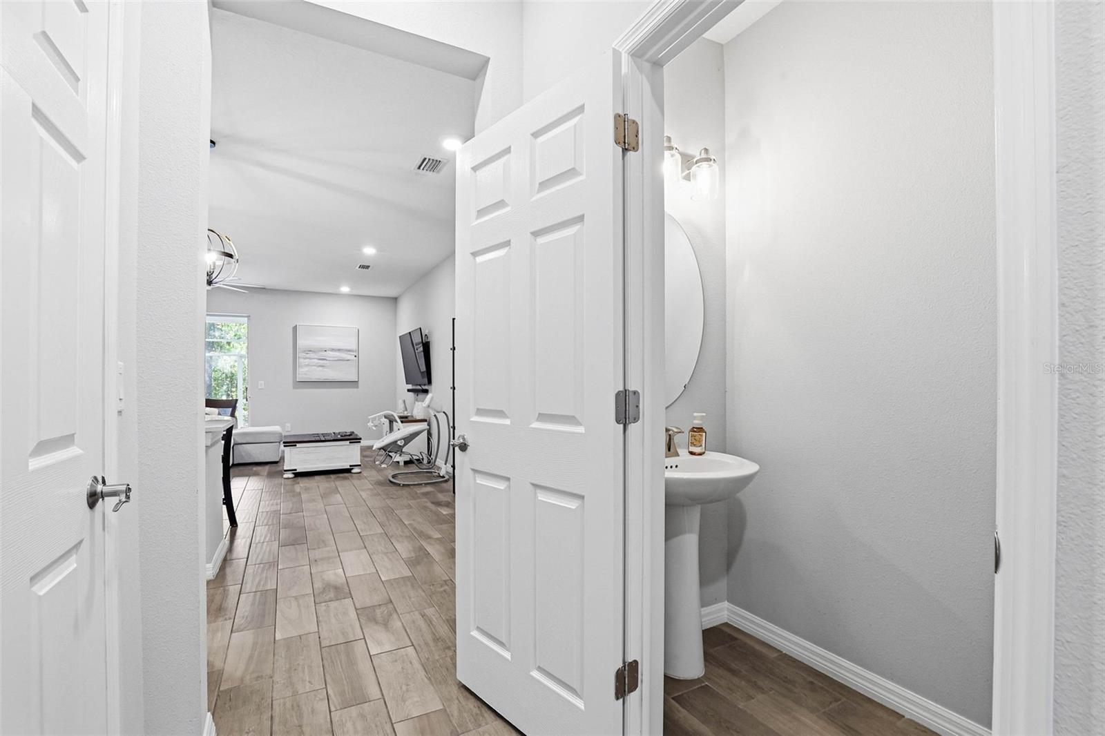 Welcome to Kemerton Place—where newer construction, thoughtful upgrades, and a prime location come together in one beautiful townhome. Built in 2020 and tucked inside a private gated community, this 3-bedroom, 2.5-bath home offers a clean, modern feel with the benefit of low-maintenance living. The main level features wood-look plank ceramic tile throughout, upgraded lighting and fixtures, and a seamless flow from the kitchen into the living space. Out back, you’ll find a screened and extended lanai—an special upgrade that adds valuable outdoor living space—overlooking a peaceful conservation area with no rear neighbors. Upstairs, generously sized bedrooms and a versatile den space that can function as a second living area, office, or flex space to fit your needs. Additional features include an electric vehicle charger in the garage and a low HOA that provides access to a resort-style community pool. Located directly behind North Lakes Sports Complex, where you have access to basketball courts, baseball fields, and brand-new pickleball courts just steps away. With close proximity to shopping, dining, and major highways, everything you need is right at your fingertips. If you’ve been waiting for a move-in ready home with upgrades, privacy, and a great location —this is it.