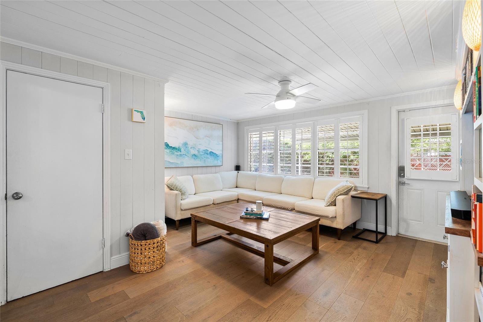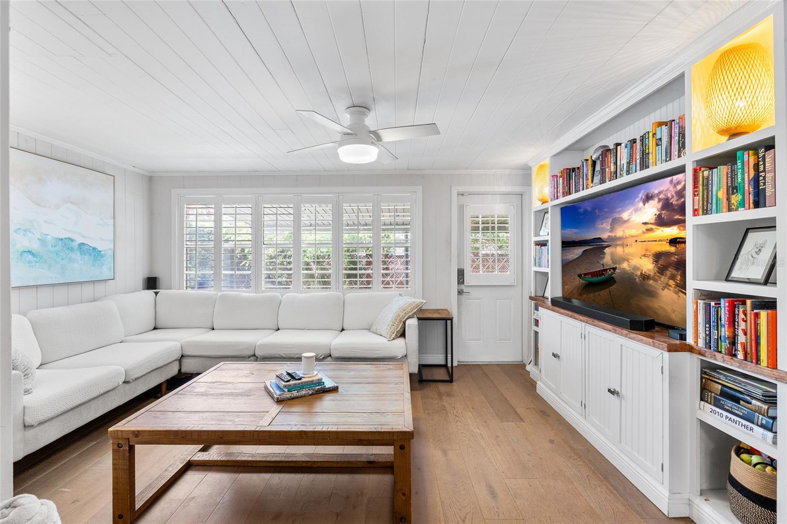 Charming and versatile, this tastefully updated 2-bedroom, 2-bath home (offers the potential to easily convert to a 3-bedroom)offers the perfect layout for growing families, guests, or a home office. Thoughtfully enhanced throughout, the home features a new kitchen complete with modern cabinetry, stainless steel appliances, and elegant granite countertops. Wood flooring flows seamlessly through the living spaces, complemented by plantation shutters and upgraded light fixtures that add both style and sophistication.The interior is neutrally decorated, creating a warm, inviting atmosphere ready for your personal touch. Enjoy everyday living and entertaining with an eat-in kitchen, a separate dining room, and a comfortable living area anchored by a built-in entertainment center.Step outside to your private backyard retreat, fully fenced for privacy and ideal for pets or play. Relax or entertain on the spacious covered rear porch, or soak up the sunshine on the additional open patio. The property also offers excellent storage options, including a large shed and a convenient exterior storage closet.Located in a quiet neighborhood experiencing exciting growth, with beautiful new homes emerging throughout the area, this property presents not only a wonderful place to live but also a smart investment opportunity.