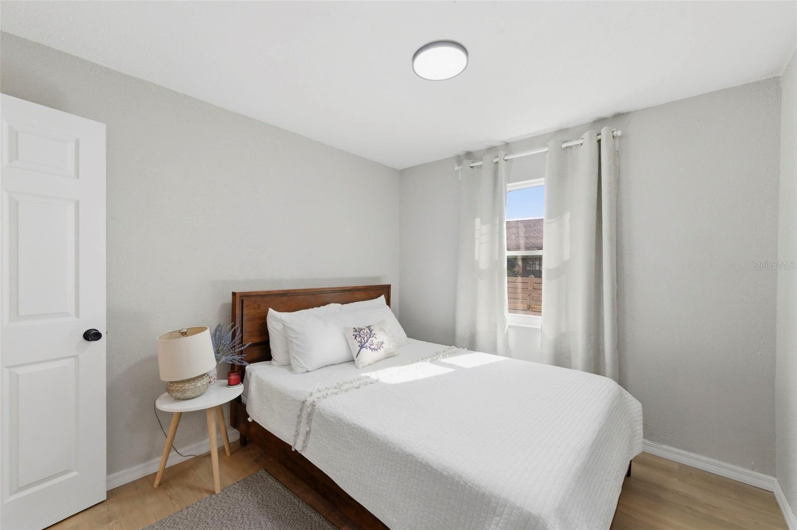 Beautifully renovated 3-bedroom, 2-bath home in a desirable East Tampa neighborhood! This move-in ready bungalow offers approximately 1,200 sq ft of bright, open living space on a 5,000 sq ft lot. The south-facing layout fills the home with natural light, creating a warm and inviting atmosphere perfect for everyday living or entertaining. The modern kitchen features quartz countertops and stainless steel appliances, while both bathrooms have been stylishly updated with contemporary finishes. Upgrades include new windows, and new plumbing, along with luxury vinyl plank flooring throughout. Step outside to enjoy a welcoming front porch, a private fenced backyard ideal for pets or gatherings, and a 2-car garage in the rear, plus a covered 1-car porch for added convenience. The beautifully landscaped yard with colorful flower beds adds excellent curb appeal. Conveniently located near Ybor City, Downtown Tampa, and I-4, with easy access to shopping, dining, parks, and local amenities. Situated in a low flood risk area, this turnkey property is perfect for first-time buyers, families, or investors. Don’t miss this opportunity—schedule your private showing today!