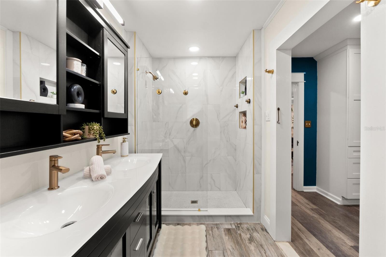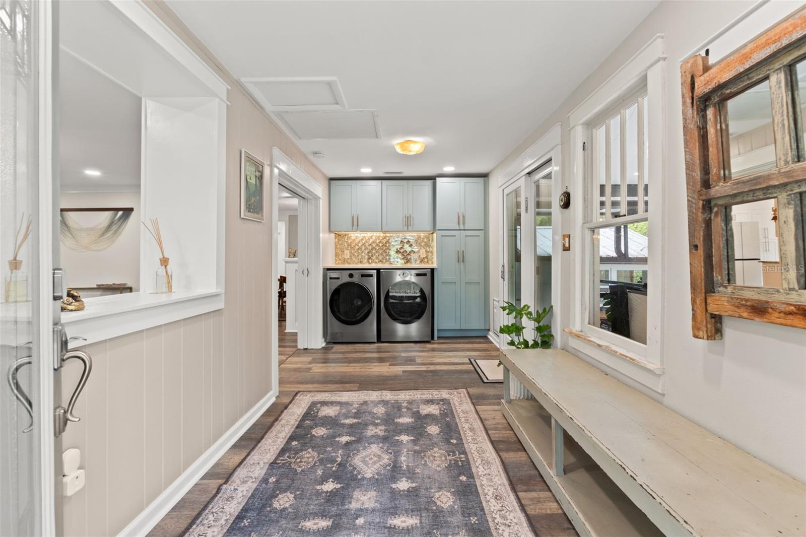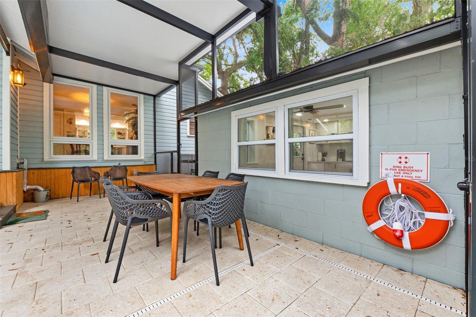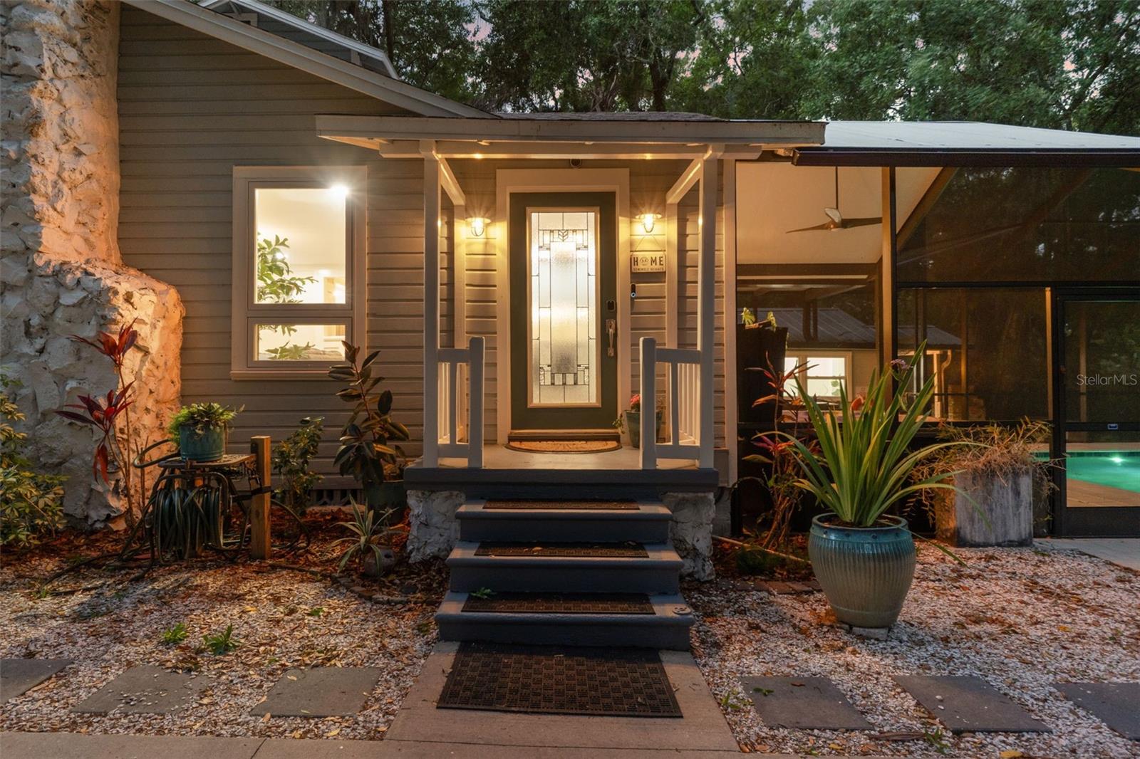 Privately tucked behind lush landscaping with a private drive and electric gated entry, this beautifully renovated historic Craftsman in prime Seminole Heights blends original character with luxury finishes. The main residence offers three bedrooms, two bathrooms and an upstairs bonus room that can serve as a fourth bedroom, office or creative studio. Thoughtfully redesigned for modern convenience while preserving original charm, the home features abundant natural light through upgraded windows, a multifunctional entry/mudroom, a living room with pocket French doors, a functional wood-burning fireplace and original built-ins that enhance the nautical-inspired aesthetic. The primary suite is exceptional, appointed with URBN WRKS custom built-ins and entertainment center, a rich cedar-planked walk-in closet and a completely remodeled ensuite with dual vanities, a step-in shower and frameless glass door. The chef’s kitchen with two ovens showcases a raised tray ceiling, timeless tile backsplash, quartz countertops, stainless appliances and a modern Bespoke refrigerator, all overlooking sweeping front and river views that create an estate-like feel. Bedrooms two and three share an updated bathroom with craftsman-style tilework and a soaking tub, while the formal dining room—with chandelier fixtures—offers pool and river vistas ideal for entertaining. HVAC system is upgraded and has all new ductwork. A fully modernized detached ADU provides flexible options for rental income (Airbnb or long-term), guest quarters or in-law accommodations and includes its own back porch with panoramic Hillsborough River views. Outdoor living centers on a screened patio enclosure and an enormous 16x32 heated saltwater pool installed in 2021 featuring spa jets, waterfall and fountain lighting for dramatic nighttime ambiance. Landscape lighting outside sets a brilliant vibe. The .44-acre parcel includes a workshop-sized shed with loft, additional storage shed, multiple fire pits and gathering areas, and unobstructed river views with oak, palms and fruit trees all-around. This location is the best in Seminole Heights, with a neighboring community garden, historic shipyard, two community parks and local coffee shops / restaurants are walking distance. 6200 River Terr. is perched HIGH & DRY in Flood Zone X, this property has no HOA and no CDD. Home warranty included. Private tours are available by appointment.