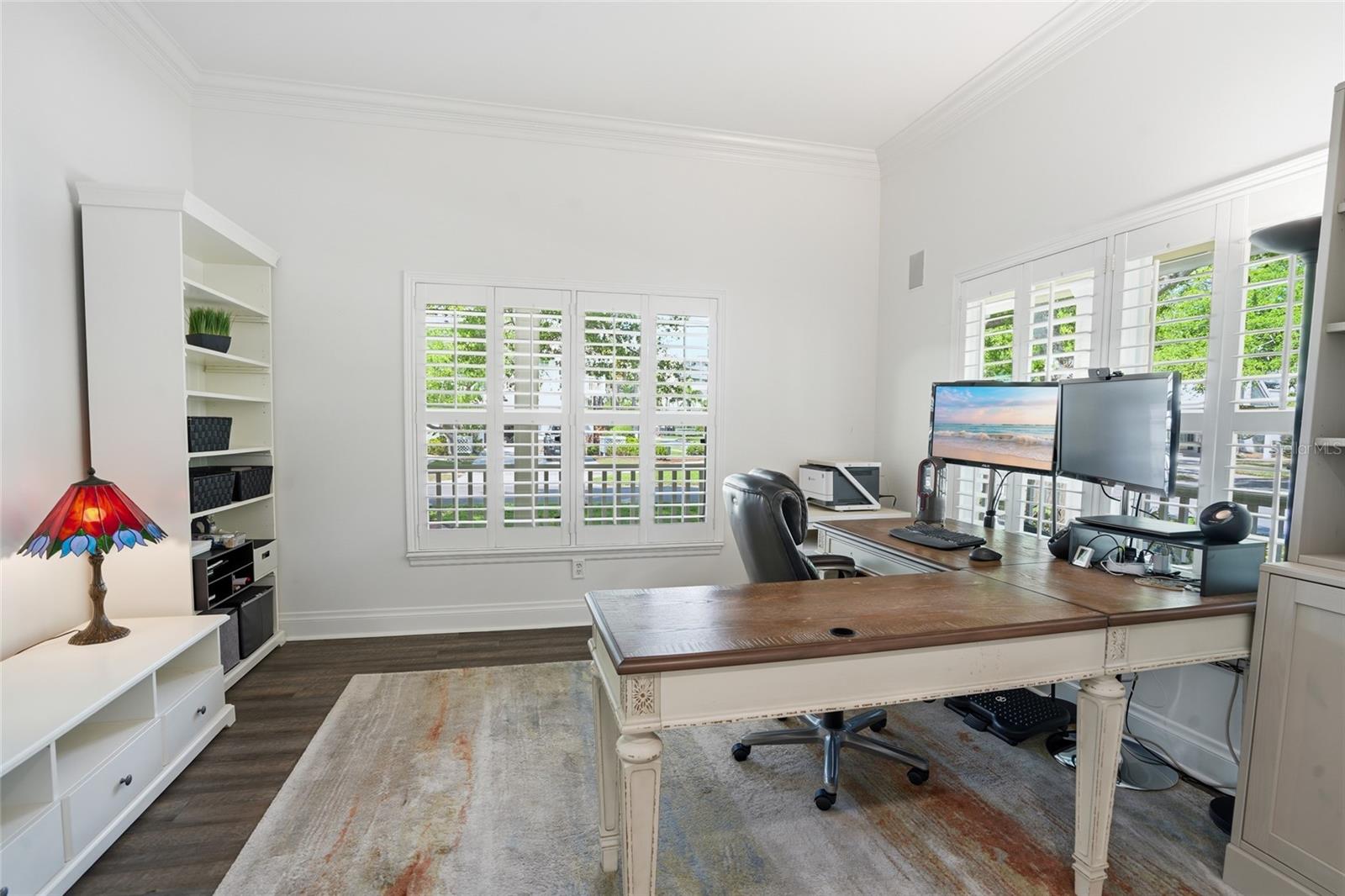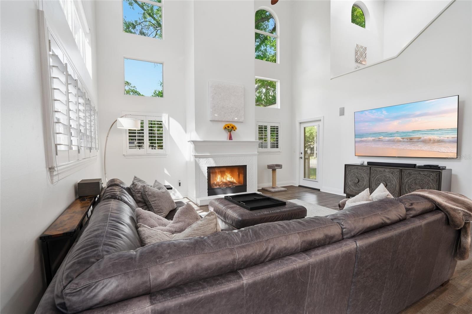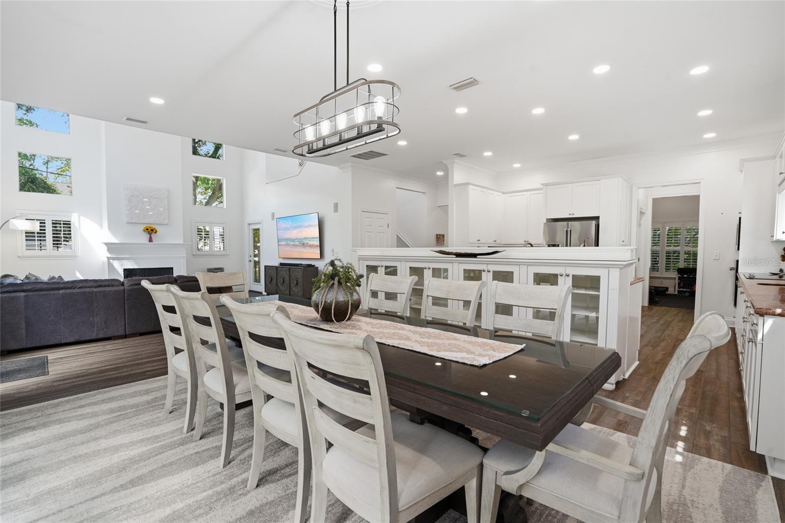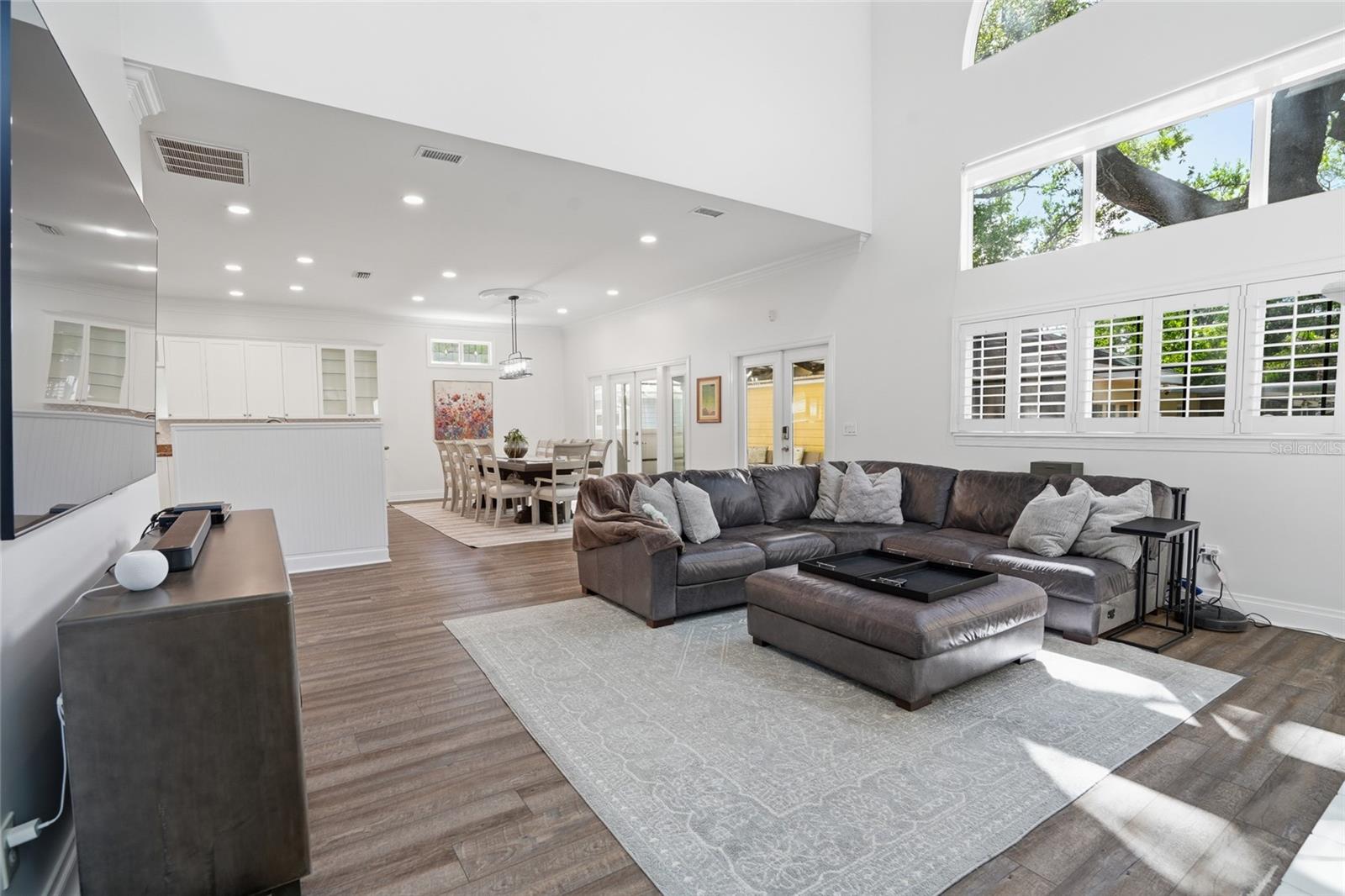 Welcome to one of South Tampa’s most iconic streets, where location and lifestyle come together seamlessly. Just moments from Tampa Bay Yacht Club, Ballast Point Park, and the entrance to the Bayshore Boulevard Fitness Trail, this residence also enjoys the rare convenience of being only one block from A-rated Ballast Point Elementary School. Rich in character and history, the surrounding neighborhood even carries ties to the legendary author Jules Verne—an added layer of charm for those who appreciate a story behind the setting. A welcoming wraparound front porch sets the tone, delivering timeless curb appeal with a modern farmhouse aesthetic. Through the leaded glass front door, a spacious front-facing office with glass-pane double sliders offers a bright and refined work-from-home environment. Inside, newly installed luxury vinyl plank flooring flows throughout the main living areas, combining durability with a clean, contemporary feel. The kitchen is thoughtfully designed for both everyday living and entertaining, featuring abundant cabinetry with soft-close doors and drawers, convenient pull-outs, granite countertops, a tile backsplash, and 42-inch upper cabinets that maximize storage and visual height. The open-concept layout allows the kitchen to transition effortlessly into a generously sized dining area, easily accommodating large gatherings with seating for up to ten. French doors with sidelights draw in natural light and create a seamless connection to the rear screened entertainment deck, where translucent polycarbonate panels allow sunlight to pour in while keeping the space protected from rain—extending usability year-round. The true centerpiece of the home is the grand family room, where soaring 25-foot ceilings and three tiers of oversized windows frame breathtaking views of Ballast Point’s signature oak canopy, creating a light-filled space that feels both expansive and connected to nature. Upstairs, the primary suite is privately tucked away behind French doors, offering a peaceful retreat complete with a spacious walk-in closet with custom built-ins and a well-appointed bathroom featuring dual vanities, a soaking tub, and a separate shower. Two additional bedrooms provide flexibility for family or guests, one enhanced with charming window seats and the other showcasing a cathedral ceiling, both sharing access to an updated hall bath. Outdoor living continues to impress with a large covered and screened party deck that connects effortlessly to the main living areas, ideal for entertaining or relaxing in comfort. A side-entry driveway leads to a detached two-car garage with overhead storage and convenient access to the covered rear lanai. The home’s exterior is wrapped in durable James Hardie fiber cement siding, offering long-term resilience with the aesthetic appeal of a modern farmhouse. The expansive front and side yards present endless opportunities to create a private outdoor oasis, whether envisioned as a garden, play area, or alfresco dining retreat. Recent updates, including a 2020 shingle roof, 2021 gutters and kitchen cabinetry, 2021 LVP flooring, a 2023 vinyl fence, and a 2023 HVAC system, provide peace of mind and enhance the home’s overall value. Positioned at a high elevation with no history of flooding, this property offers both beauty and confidence in its construction and location. This is a rare opportunity to own an updated home in one of South Tampa’s most sought-after neighborhoods.