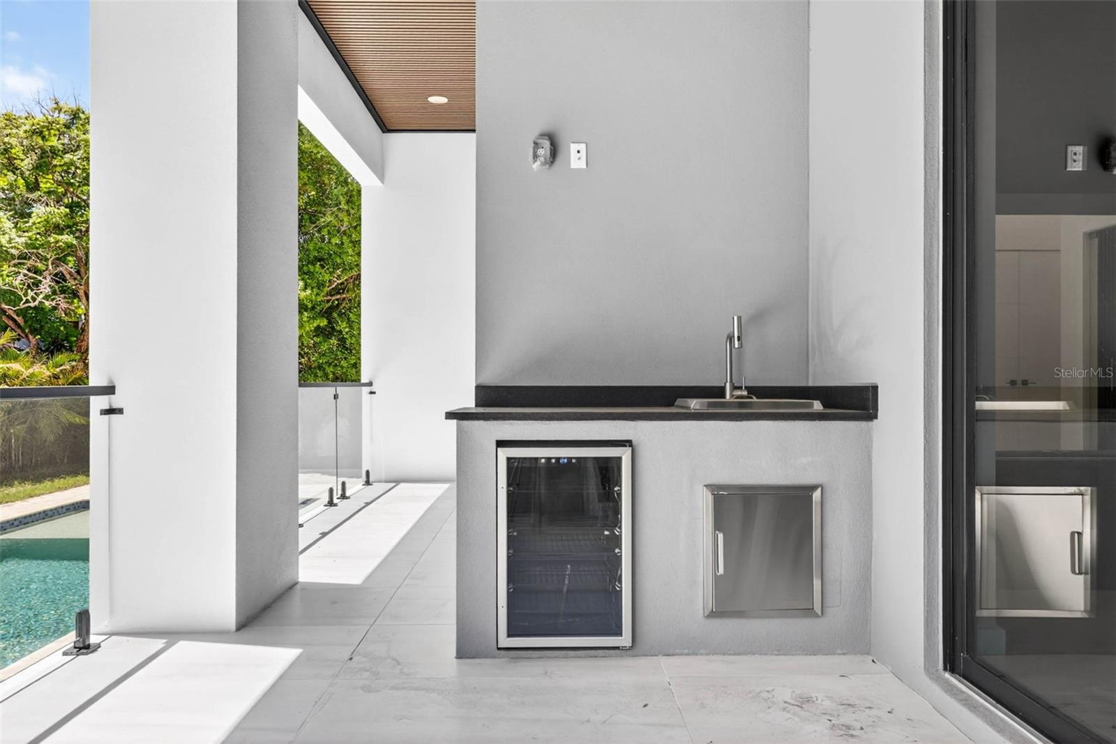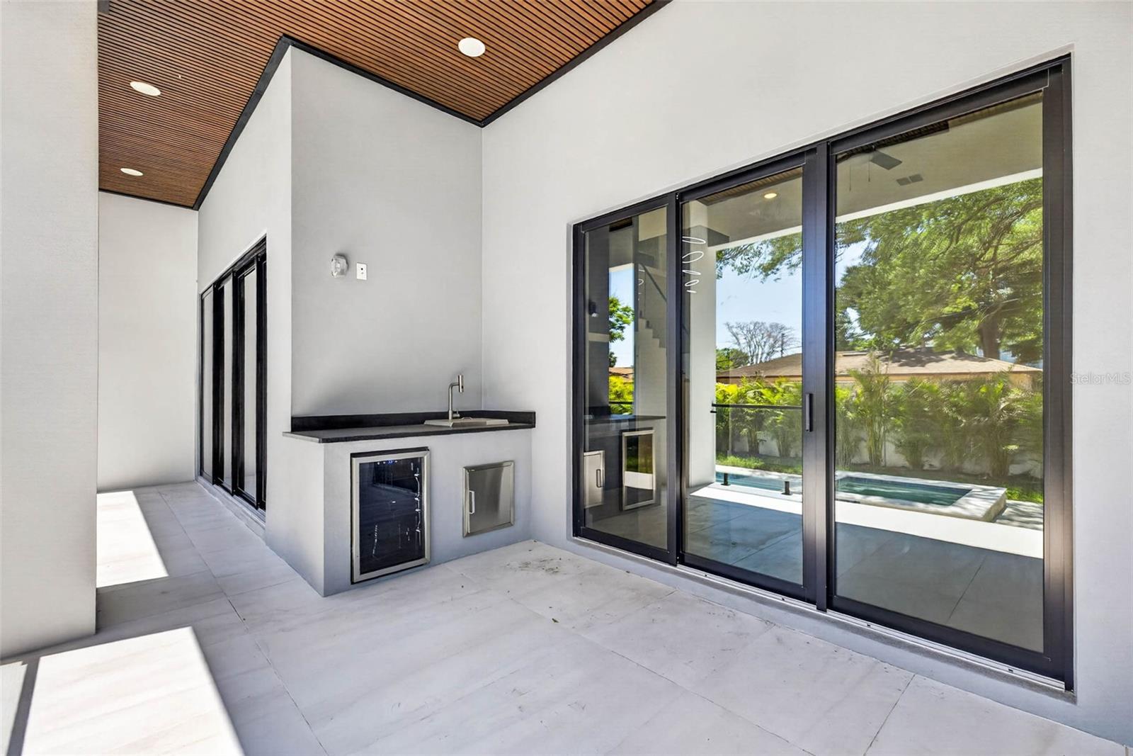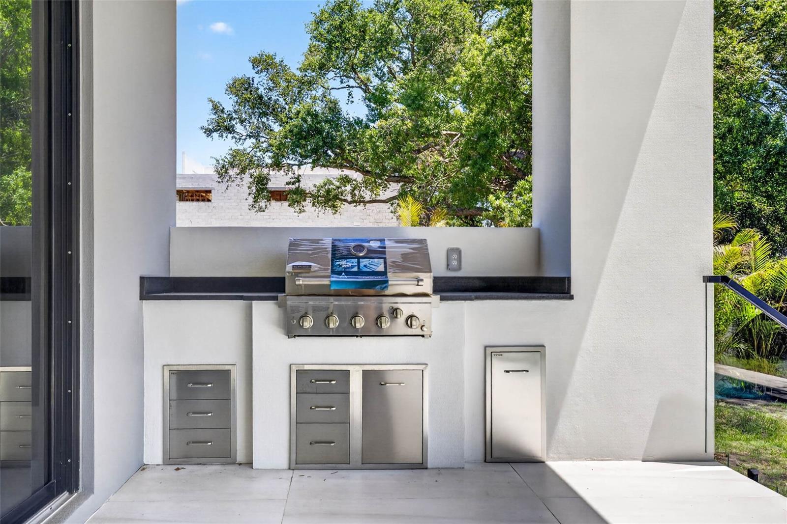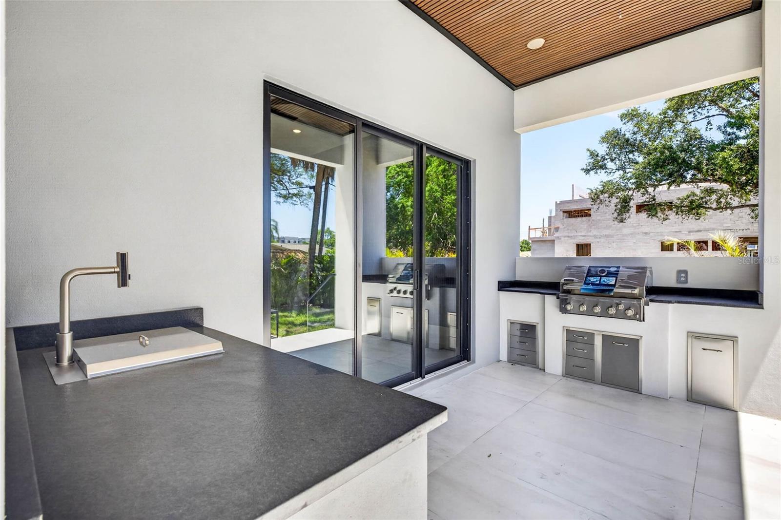 Balcony, Lighting, Outdoor Grill, Outdoor Kitchen, Sidewalk, Sliding Doors