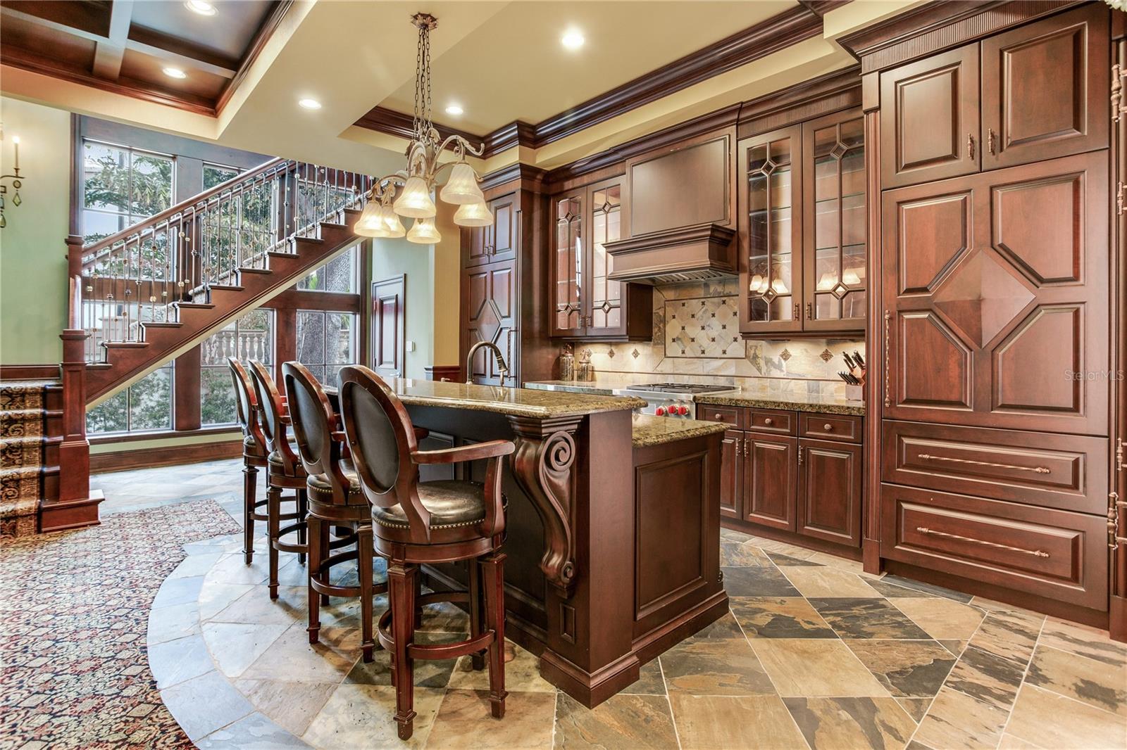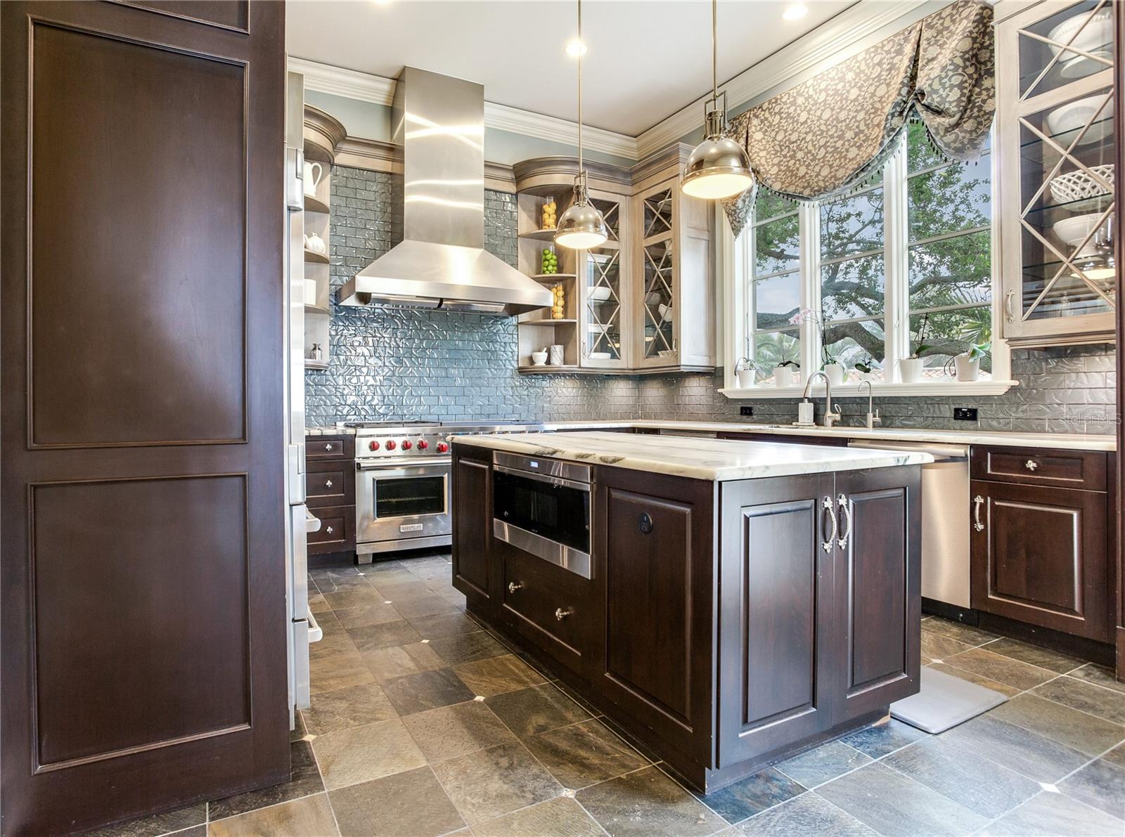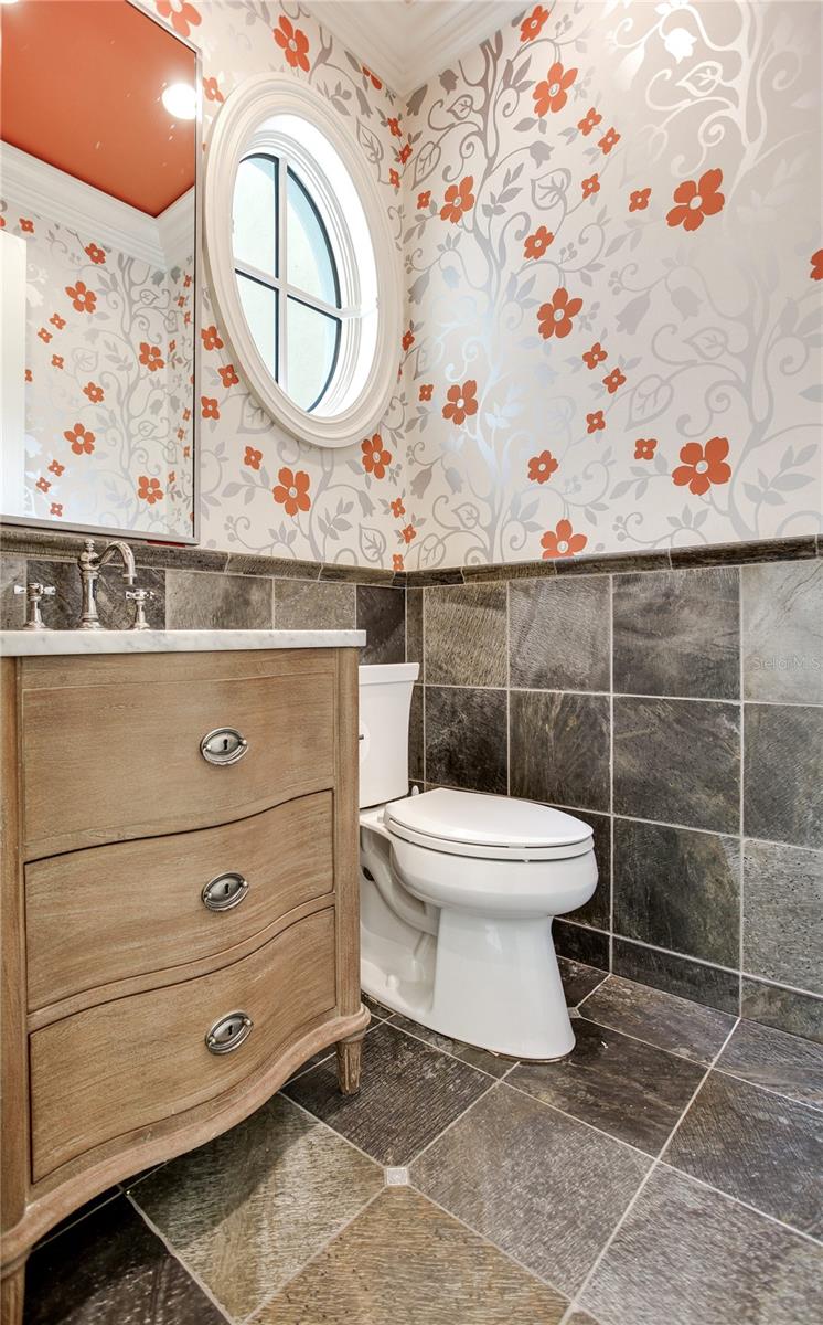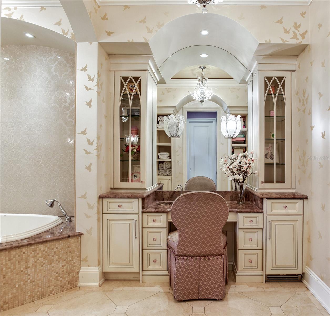 Experience the height of Livable Luxury in this extraordinary estate designed by Thomas Everett Lamb and built by Windstar Homes, an award-winning custom builder with over 100 industry accolades for craftsmanship and architectural excellence. Positioned on the open bay along Davis Islands, this one-of-a-kind residence blends timeless design with resort-style living. Created for grand-scale entertaining and refined everyday living, the home captures sweeping bay views, expansive terraces, and meticulously curated interiors. A stately arrival welcomes with parking for 9 vehicles and a 4-car garage, framed by hand-cast cement trim, shell detailing, and custom copper lanterns. Twin fountains accent the circular glass-paneled French doors, opening to a breathtaking foyer highlighted by a sweeping spiral staircase, intricate filigree ironwork, layered crown and dentil moldings, and a dramatic domed ceiling. The Grand Salon and formal dining spaces, including a dining alcove flanked by dual wine rooms with beveled glass, feature hardwood floors, hand-carved limestone fireplaces, and floor-to-ceiling arched windows. Walls of glass frame the west-facing veranda, gazebo, pool, fire pit, party dock, pickleball court, and unobstructed open bay. Exceptional craftsmanship is evident throughout, with concealed air-conditioning vents seamlessly integrated within the crown molding, deep windowsills, and extensive custom millwork. The chef’s kitchen centers around a massive island with beveled stone countertops and dual crystal chandeliers, complemented by Sub-Zero refrigeration, double dishwashers, and a Wolf range with griddle. A fully equipped scullery kitchen offers commercial refrigeration, double ovens, and additional prep space, ideal for catered events. A butler’s pantry, mudroom, and secondary laundry enhance daily functionality. Seamless indoor-outdoor living unfolds as the kitchen and great room open to a covered terrace featuring a pizza oven, warming drawer, beverage refrigerator, ice maker, sink, gas grill, and generous seating and dining areas overlooking the pool and bay. The first level also includes a bayfront office with custom cabinetry and fireplace, a game room with bar and adjacent theater, as well as a gym, craft, and multipurpose spaces. A private guest suite with rotunda seating, kitchenette, and elaborate bath completes the main floor. Upstairs, the primary suite is a private sanctuary occupying nearly one-third of the level. Entered through a grand vestibule, it features a bayfront sitting room with terrace access, limestone fireplace, dual custom walk-in closets with crystal chandeliers, and a spa-inspired bath with fireplace, steam shower, and marble finishes. Additional bedroom suites offer ensuite baths, custom cabinetry, and tranquil water or garden views, with many opening to private terraces. A separate guest or nanny suite, accessible via stairs and a hidden passage, includes a full kitchen, living area, bedroom, walk-in closet, laundry, and full bath. Outdoor living rivals a private resort, with a gazebo featuring marble bar seating for ten, a resort-style pool, fire pit, multiple terraces, pool baths, and a fully equipped kitchen. A crow’s nest terrace captures west-facing sunsets over the bay. With elevator access, 3 staircases, integrated technology, whole-home audio, and thoughtfully designed flow, this Davis Islands estate delivers architectural grandeur, modern luxury, and an unparalleled waterfront lifestyle.