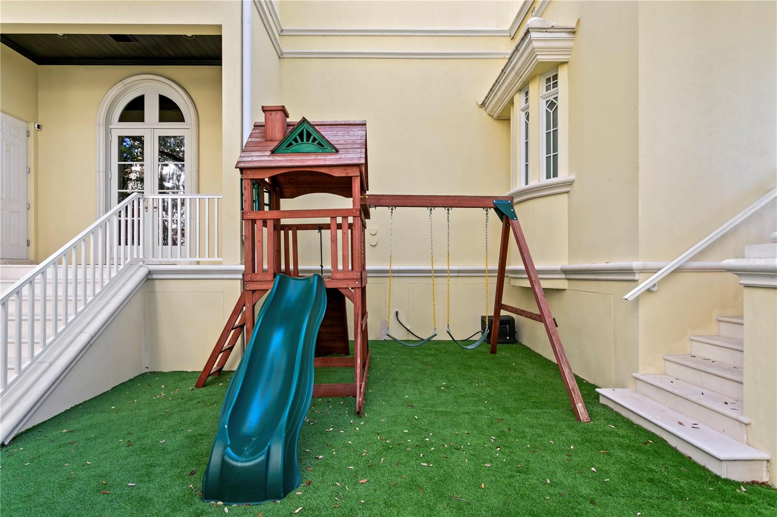 Balcony, Basketball Court, Fire Pit, French Doors, Lighting, Outdoor Grill, Outdoor Kitchen, Playground, Private Yard, Sidewalk, Sliding Doors, Tennis Court(s)