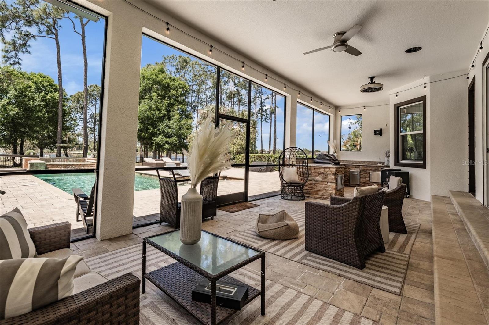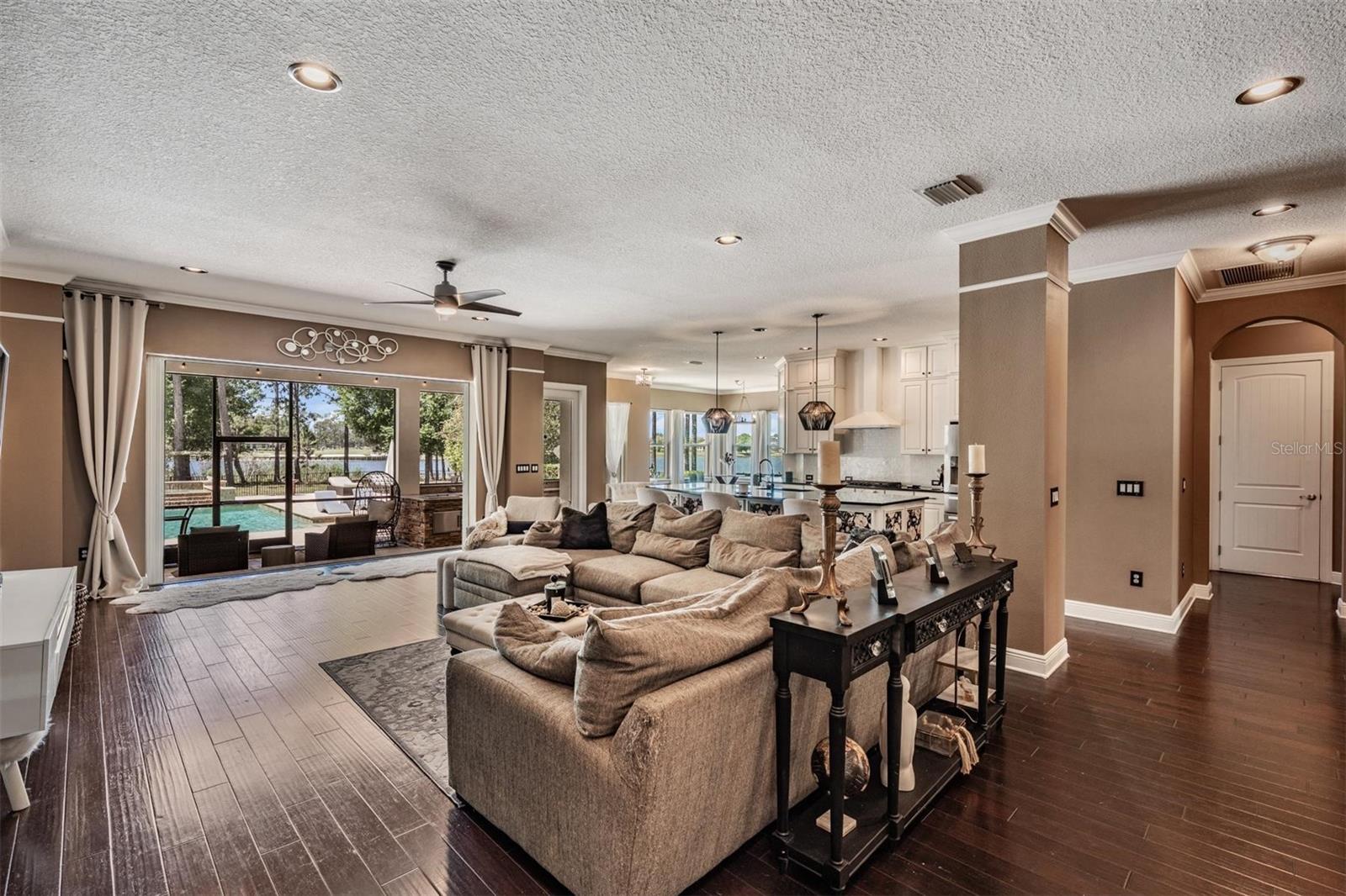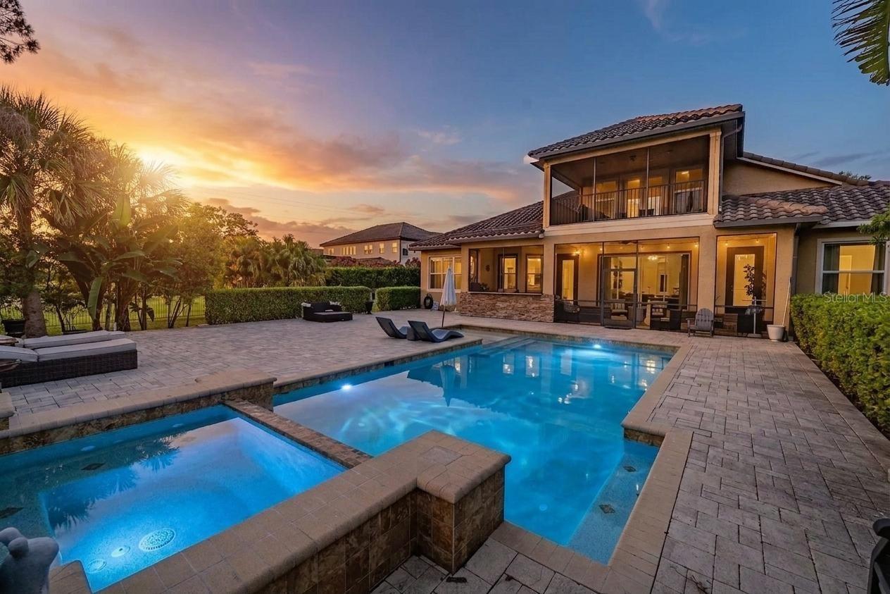 Stunning sunset lake views paired with rare, private views of Old Memorial Golf Club, what more could you ask for? Set on one of the largest homesites in this highly coveted, gated community, this exceptional residence offers the perfect balance of privacy, space, and scenery. Positioned on an expansive ¾-acre lot, the home is thoughtfully set back from the street, creating a grand sense of arrival with a circular drive and landscaped island. The generous setback, greater than neighboring homes, enhances privacy, while the fully fenced yard extends beyond the fence line all the way to the water, offering additional usable space and uninterrupted views. Across the lake, Old Memorial Golf Club provides a picturesque and ever-changing backdrop. Spend your evenings relaxing outdoors, watching golfers in the distance, then turn to take in breathtaking sunset skies over the water. Inside, rich wood flooring and a bright, open split floor plan welcome you. A private office with custom built-ins and a formal dining room sit at the front of the home, while three bedrooms and two bathrooms are tucked away on one side for functionality and comfort. The primary suite is privately situated on the opposite wing. The kitchen is designed to impress, featuring granite countertops, stainless steel appliances, a natural gas range, and ample space for entertaining. Just off the kitchen, a sunlit breakfast nook offers the perfect place to enjoy casual meals with serene views. The primary suite is a true retreat, complete with a sitting area overlooking the lake and golf course, filling the space with natural light. The ensuite bathroom includes dual vanities, a soaking tub, walk-in shower, private water closet, and an oversized walk-in closet. Upstairs, a versatile loft with a wet bar provides endless possibilities, along with a potential fifth bedroom with a private bath or an ideal media room. Step out onto the private balcony and take in sweeping views of the pool, backyard, and lake offer an elevated perspective that truly sets this home apart. The outdoor living space is equally impressive. The expansive lanai offers shaded comfort and features a fully equipped outdoor kitchen with a sink, grill, and refrigerator. The vertically positioned pool, one of only two of its kind on the lake in the community, maximizes both space and views, creating a resort-style setting perfect for entertaining or relaxing. Additional highlights include dual-pane windows, a three-car garage, and whole-home speaker wiring. Located just minutes from top rated schools, premier golf courses, shopping, dining, and Tampa International Airport, this home delivers not just exceptional features, but an elevated lifestyle. Schedule your private tour today. Check out http://www.9134tillinghastdr.com/ for more info!