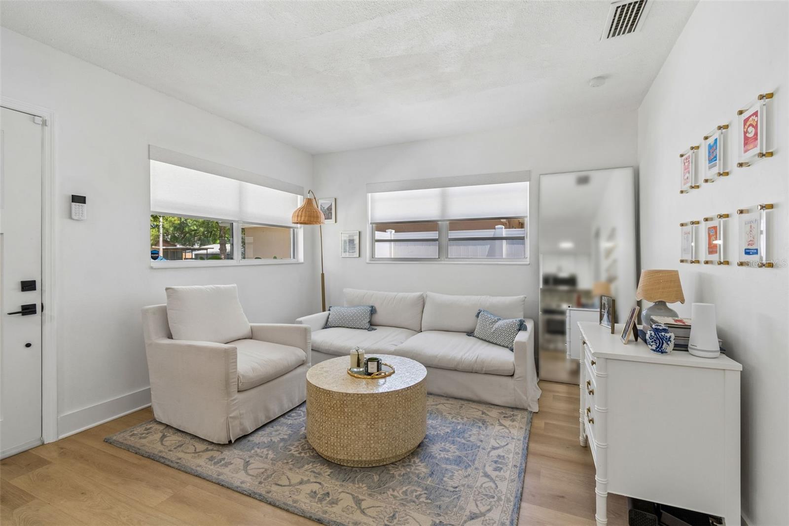 Welcome to this beautifully updated home in highly desirable South Tampa, just minutes from MacDill Air Force Base! This 3-bedroom, 2-bath residence offers a perfect blend of modern upgrades, flexible living space, plus a new roof (2023), new HVAC system (2023) & updated plumbing! All this is set on an oversized, fenced lot with inviting curb appeal. Arrive to a charming gravel driveway and a beautiful mature tree that enhances the front of the home, creating a warm and welcoming first impression. Step inside to an open foyer that flows seamlessly into the living room and kitchen, where luxury vinyl plank flooring runs throughout the main living areas. The kitchen is a true standout, featuring Frigidaire stainless steel appliances, quartz countertops, a designer tile backsplash, and a generously sized island with a stunning waterfall quartz edge—perfect for both everyday living and entertaining. Soft-close cabinetry and drawers add a touch of quality craftsmanship. Down the hall, you’ll find two guest bedrooms, a spacious primary suite, and a beautifully appointed bathroom complete with quartz countertops, modern gold fixtures, floor-to-ceiling tile in the shower, and a separate tub. To the right of the foyer, a large step-down bonus/TV room with a closet and adjacent full bath offers incredible versatility—easily functioning as a second living area, guest suite, or potential 4th bedroom with minor modification. Additional highlights include a 2023 roof and HVAC system, new easy-operating shades throughout, and a convenient covered carport. The expansive screened and covered lanai features durable composite decorative plank flooring and provides the perfect space for relaxing or entertaining, while the extended paver patio overlooks the huge backyard enclosed by a white PVC fence. With its thoughtful updates, flexible layout, and prime South Tampa location, this home is a must-see! Located just minutes from MacDill Air Force Base, South Tampa’s popular restaurants and bars, shopping, Gulf beaches, Downtown Tampa, Armature Works, and sporting events, this home offers both convenience and the privacy of a tucked-away street — a rare combi