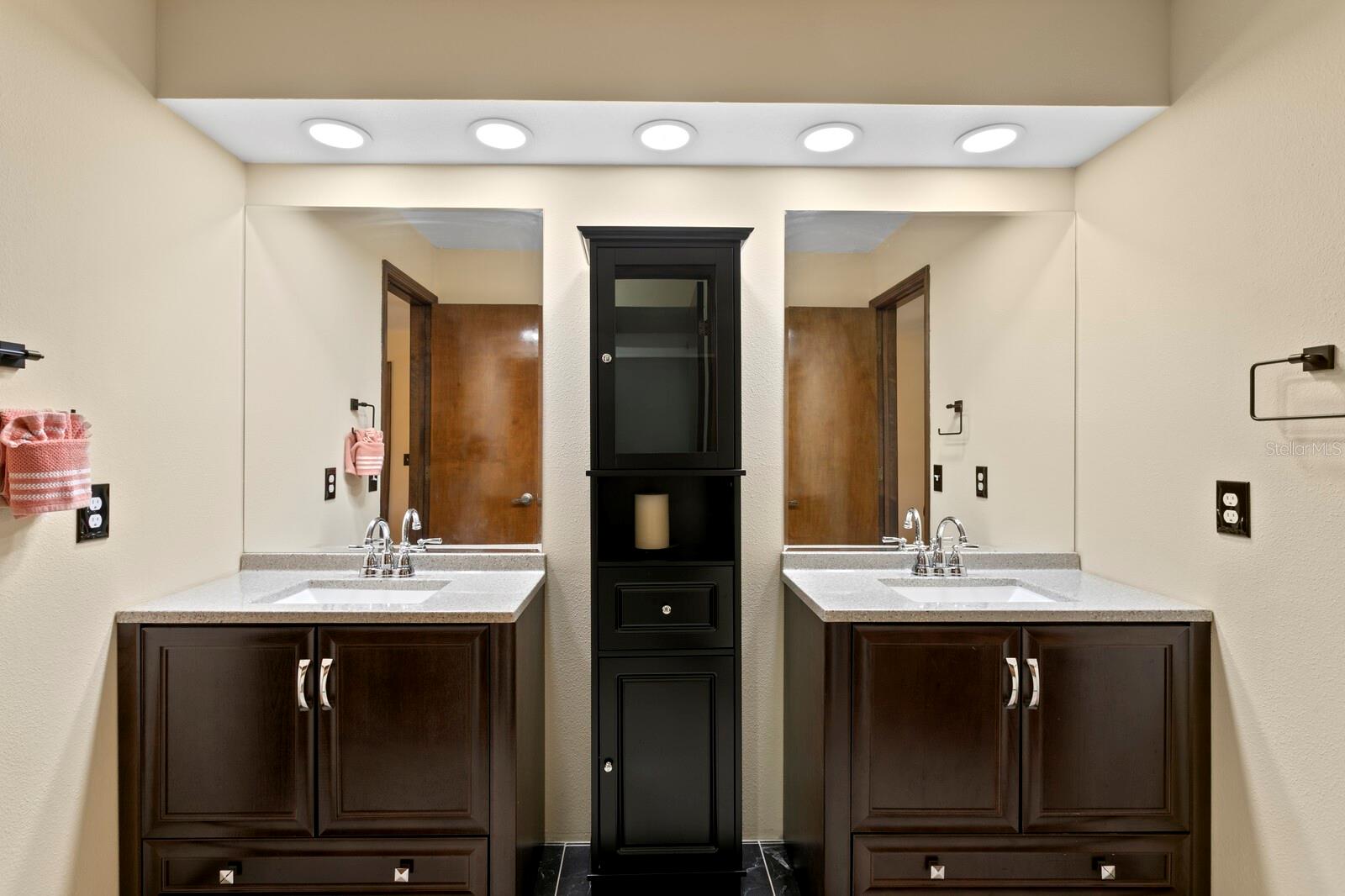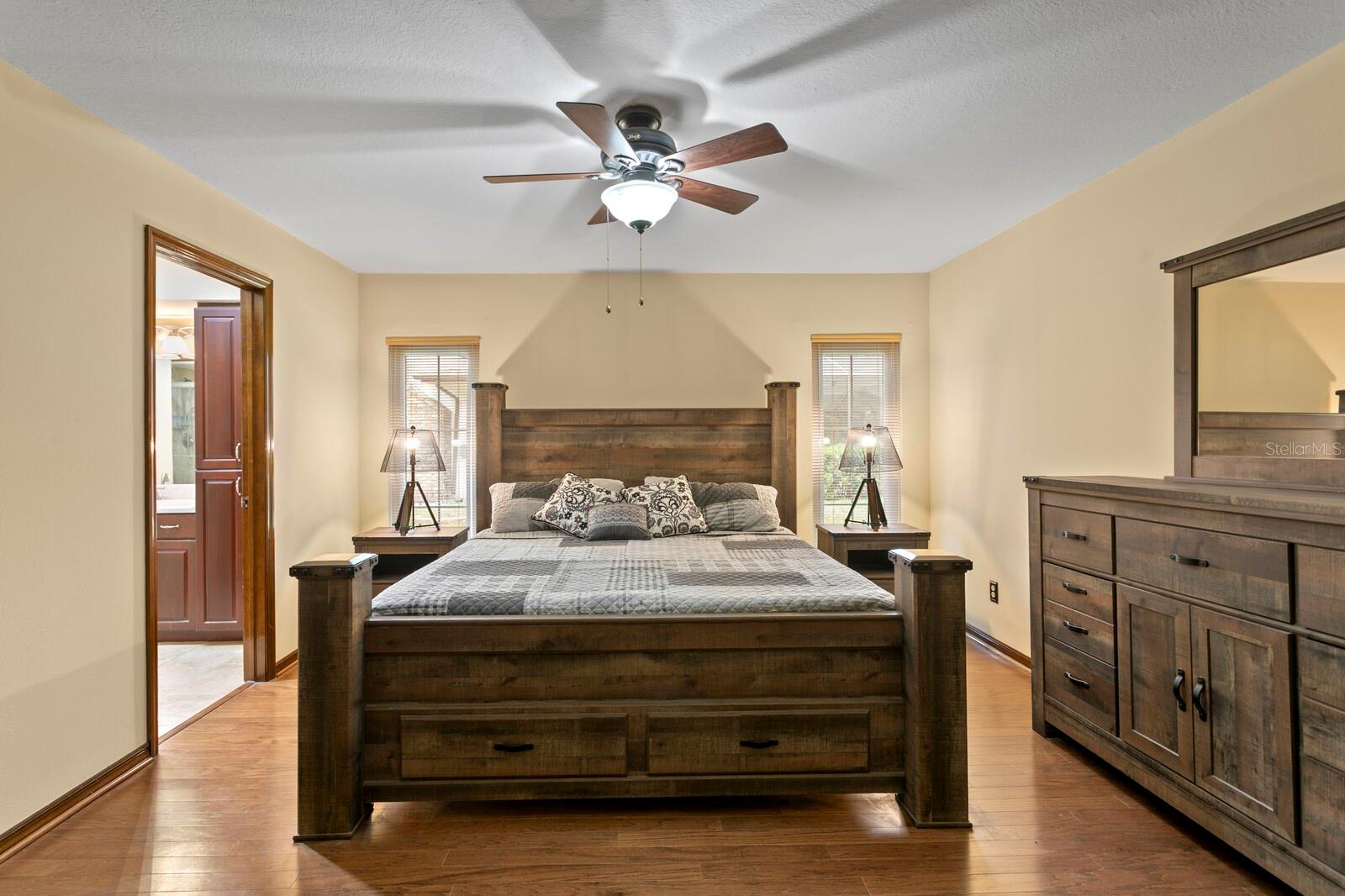 **Take a VIRTUAL VIDEO TOUR of this home now at www.16701ECourseDr.com** Looking for a large, beautiful, move-in-ready pool home on a golf course where all the expensive updates have been completed? Look no further because you’ll fall in love with this gorgeous Northdale home. Situated at the northern end of the community on a nearly quarter-acre, non-flood zone lot, this home features 4 bedrooms + bonus room + office, 3.5 baths, an oversized 2-car garage, huge private pool and nearly 3,000sqft of living space, all looking out towards the green of the 4th hole of the Northdale Golf Course. Upon arriving, you’ll find an oversized brick paver driveway with plenty of room for extra parking, carefully manicured landscaping and a brick/siding exterior that gives the home a northern feel. Upon entering the custom leaded-glass front door, the spacious foyer opens to a formal living room with vaulted ceilings and oversized windows. Throughout the home, you’ll find real hardwood floors and ceramic tile floors in all wet areas – no carpet anywhere. The living room connects to a large dining room that also includes French doors out to the massive screened lanai and private pool. Adjacent to the dining room is the large kitchen, complete with quartz counters, updated appliances, tons of wood cabinets, island, breakfast bar and even space for a small casual dining table with pool views & access to the lanai. Just past the kitchen is the large family room with a wood-burning fireplace and beyond is a cozy home office/library area – perfect for working from home while enjoying pool and golf course views. The best feature of this stunning home is the 1,400+sqft screen enclosed lanai with brick pavers and a large outdoor private pool, completing the perfect Florida outdoor entertaining space. Back inside you’ll find a half bath and the 1st floor primary suite. Enter through French doors and you’ll find a spacious primary suite with a large walk-in closet. The primary bath includes split vanities, a Jacuzzi tub and separate walk-in shower. A convenient laundry room (washer & dryer included) leads to the side-entry 2-car garage. Head upstairs to the bonus room (possible 5th bedroom) and the remaining 3 large bedrooms and an additional 2 full baths. The 2 bedrooms at the back of the home each have access to a 2nd floor screen-enclosed balcony for more outdoor living space. These 2 bedrooms share a Jack-n-Jill bath with dual vanities and a tub/shower combo. The 3rd full bath is adjacent to the 4th bedroom and includes quartz counters and a tub/shower combo. Numerous updates include hurricane impact windows, 2024 roof, 2025 HVAC, new water heater, hurricane generator hook-up (portable generator included), updated Rainbird irrigation system & more! Northdale is a well-established community in Tampa that is close to plenty of shopping, dining and easy access to Dale Mabry and the Veterans Expressway. With an optional HOA and nearby Northdale Golf & Tennis Club, this beautiful home is just waiting for its new owners!