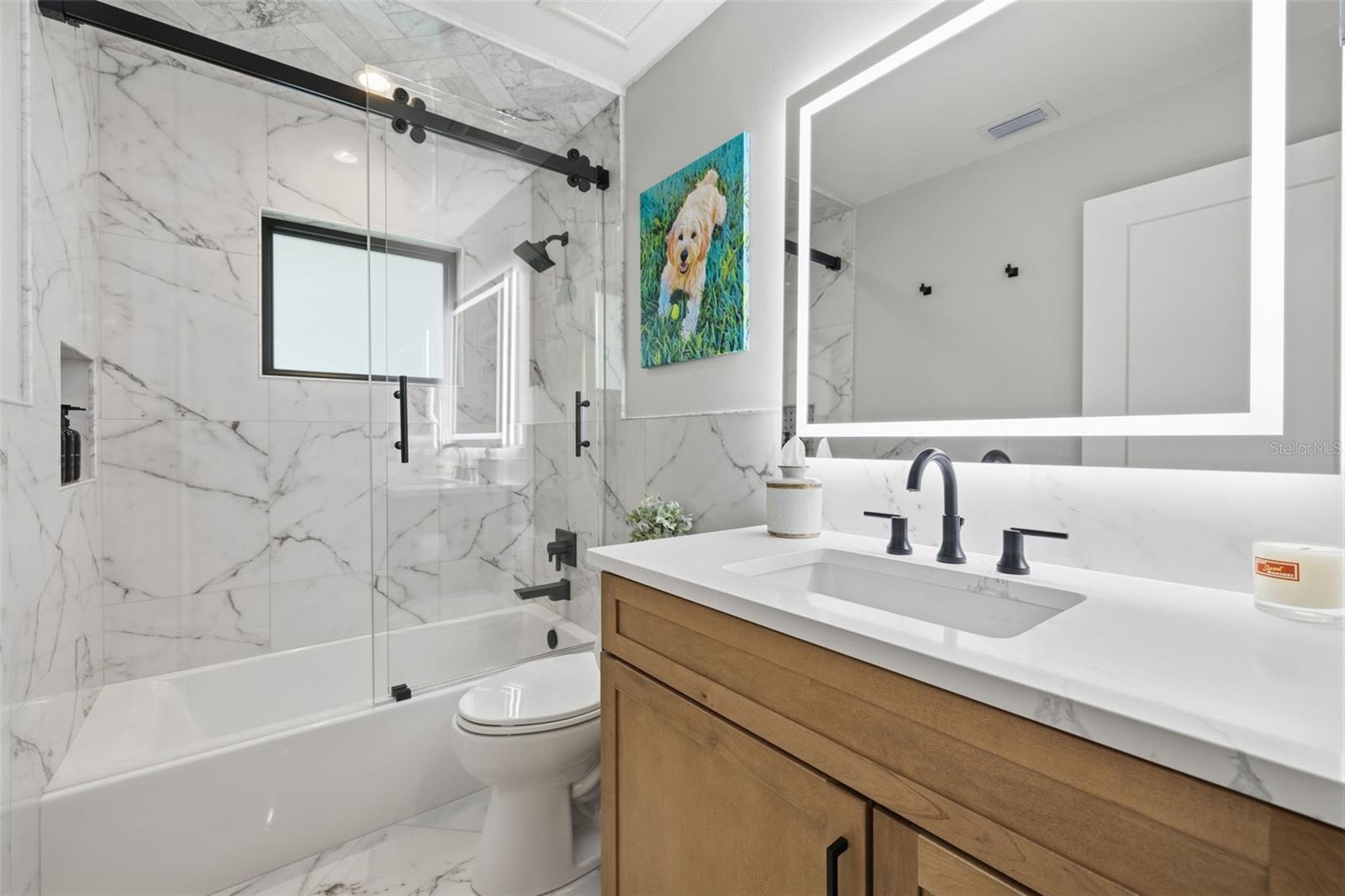 Completely remodeled and thoughtfully redesigned, this stunning home in the heart of Beach Park offers the perfect blend of style, comfort, and modern convenience. Featuring 4 bedrooms and 2.5 baths, every inch of this residence has been carefully curated with high-end finishes and attention to detail. The spacious, light-filled layout showcases a large kitchen that opens seamlessly to the family room—ideal for both everyday living and entertaining. The kitchen is a true centerpiece, equipped with Frigidaire Professional appliances, a generous center island, and elegant finishes throughout. French doors lead you to a beautifully designed outdoor oasis, complete with a brand-new pool and expansive living and dining areas finished with timeless limestone pavers—perfect for enjoying Florida living year-round. Inside, French oak hardwood flooring flows throughout the home, complemented by custom California Closet systems in every closet for optimal organization. New impact windows and doors provide peace of mind, while smart home features—including programmable switches, automated window shades, and Ecobee A/C controllers—offer modern convenience at your fingertips. Major system upgrades include a new roof, two new Trane A/C systems, and all-new ductwork, ensuring efficiency and long-term reliability. The finished garage is equally impressive, featuring epoxy flooring, an impact-rated garage door, and added attic flooring for maximized storage. This exceptional home combines luxury, functionality, and prime location—truly a rare opportunity in one of Tampa’s most sought-after neighborhoods.