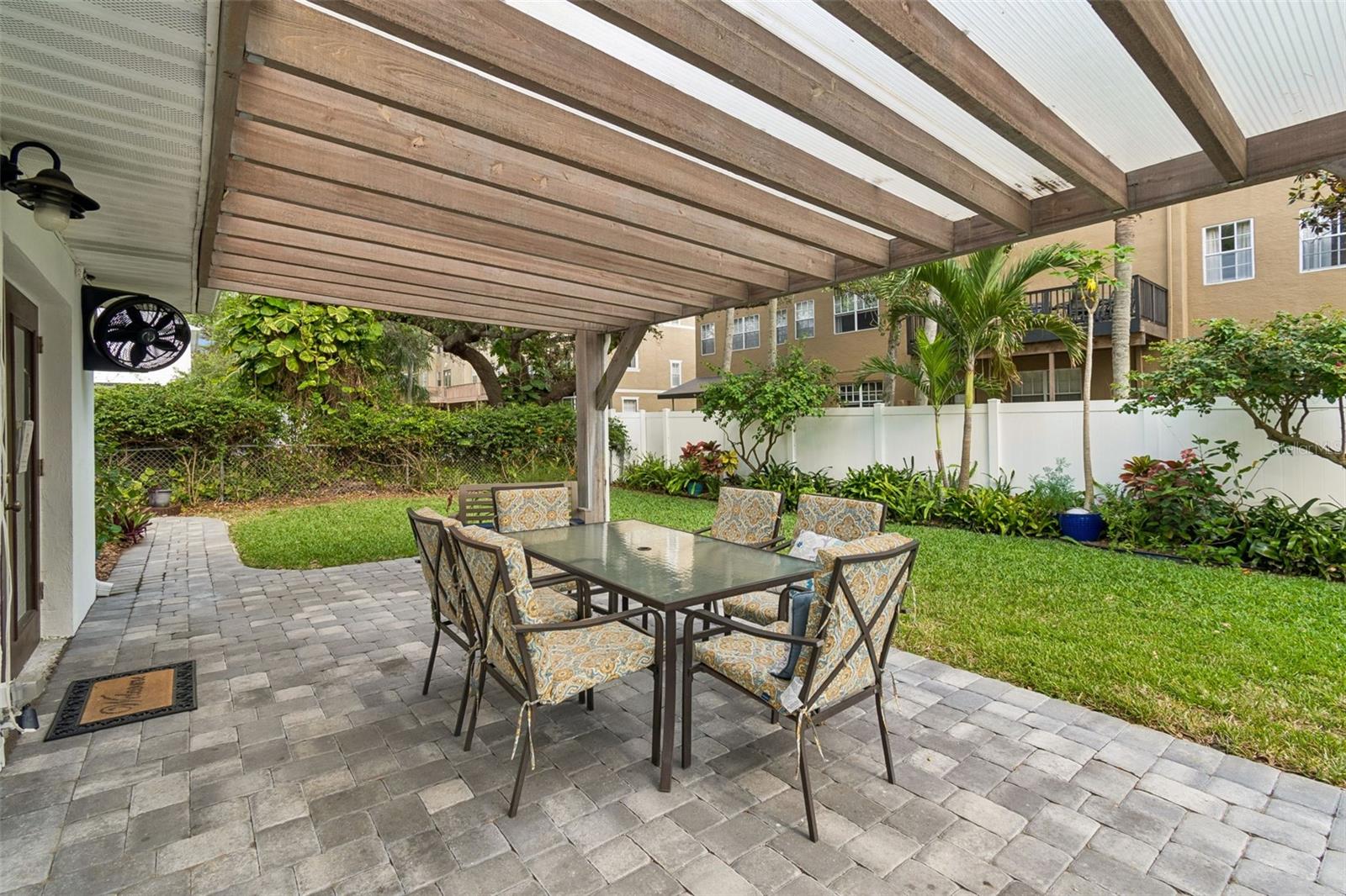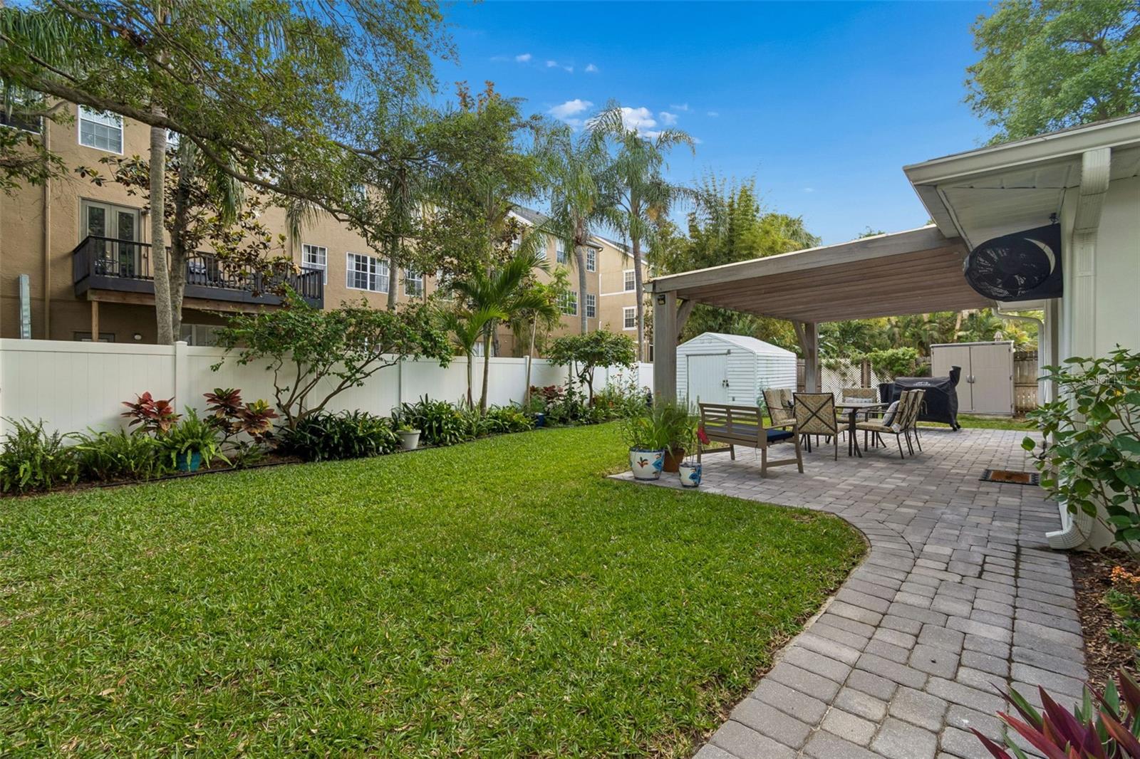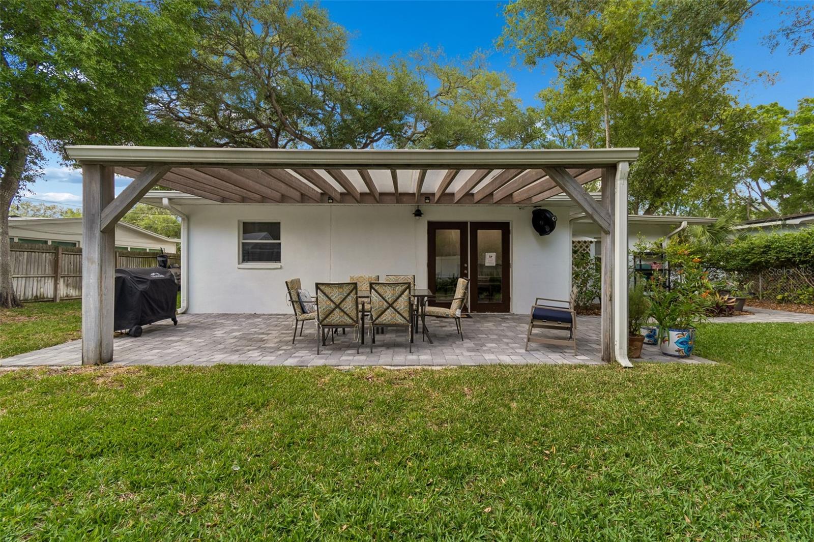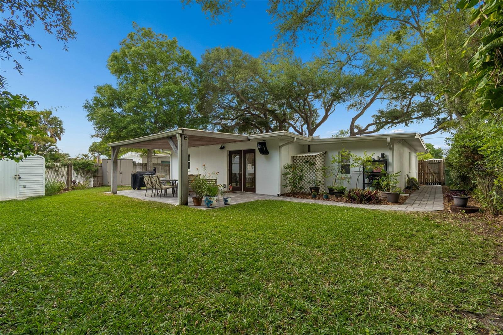 Just a half block from iconic Bayshore Boulevard, this coastal-inspired contemporary home blends clean design with thoughtful updates in one of South Tampa’s most desirable pockets, zoned for top-rated Ballast Point schools. Originally remodeled and expanded in 2016, the home features a bright, open layout with vaulted ceilings, exposed ductwork, and a wide central hallway that enhances the sense of space. Wide wood plank tile flooring runs throughout, leading into a beautifully appointed kitchen with grey all-wood cabinetry, soft-close drawers and doors, White Wave granite countertops, a basket-weave marble backsplash, and stainless steel appliances. The split floor plan offers privacy, highlighted by a spacious primary suite with dual closets and a well-designed bath featuring a dual vanity, an oversized walk-in shower, and a custom barn door. A large secondary bathroom includes a built-in laundry area with additional storage, while a guest bedroom with French doors opens to a covered rear patio, creating a seamless indoor-outdoor flow. Major system updates include electrical and HVAC from 2016, a newer roof from 2022, updated plumbing in 2020, plus a paver patio and gutters added in 2018. The fully fenced yard is framed by mature landscaping and includes a storage shed with electrical. Set in a quiet neighborhood surrounded by new construction and renovations, this location offers quick access to local favorites like Ballast Point Park, along with nearby shopping, dining, MacDill Air Force Base, and convenient routes via the Gandy Bridge and Crosstown.
