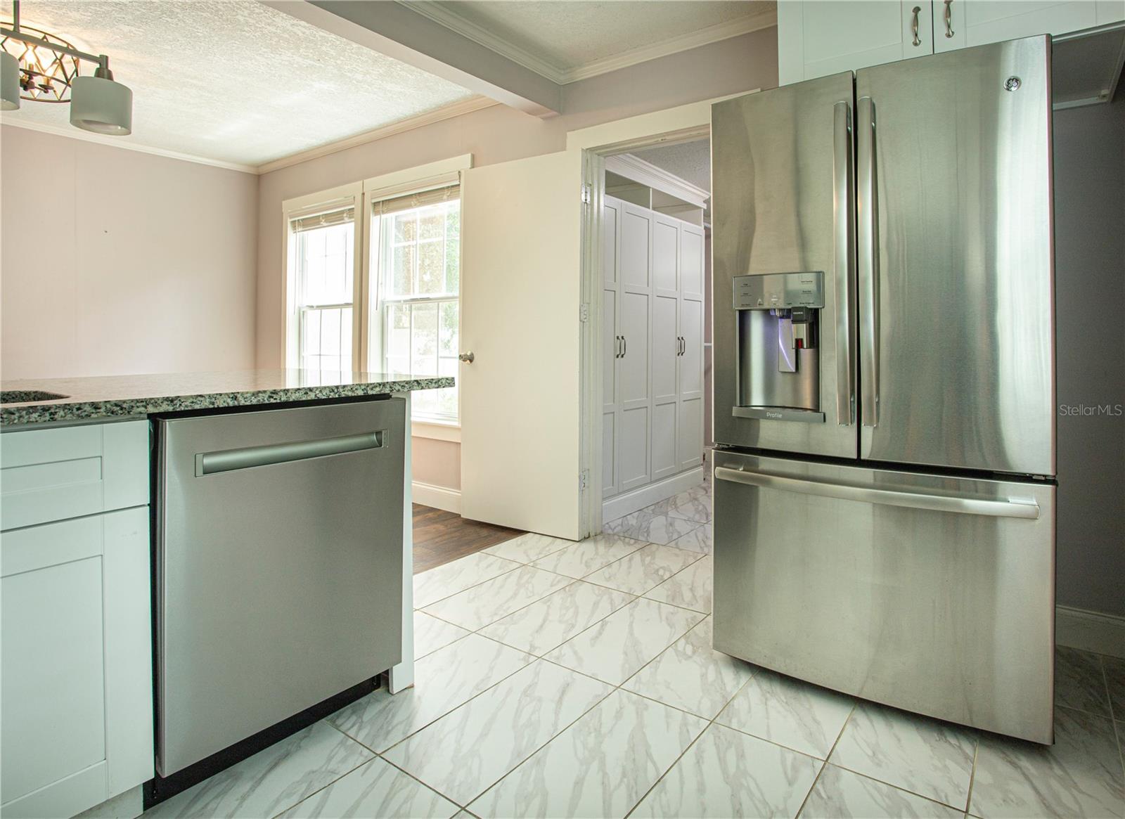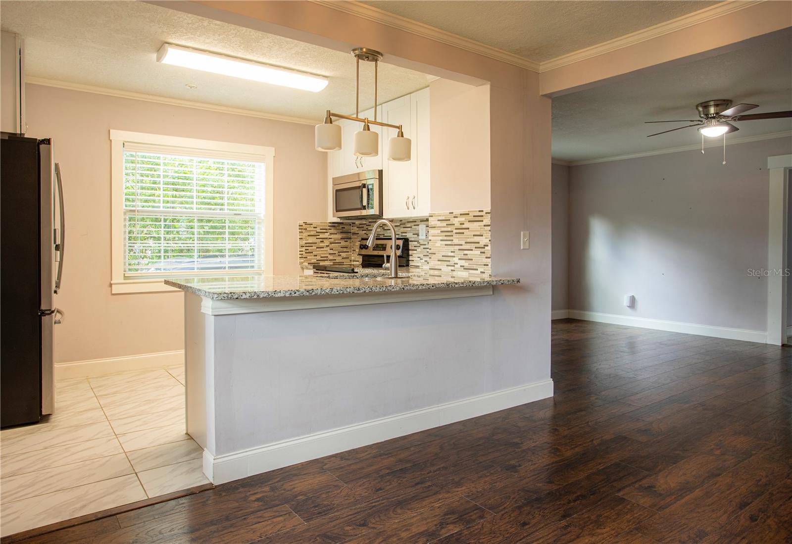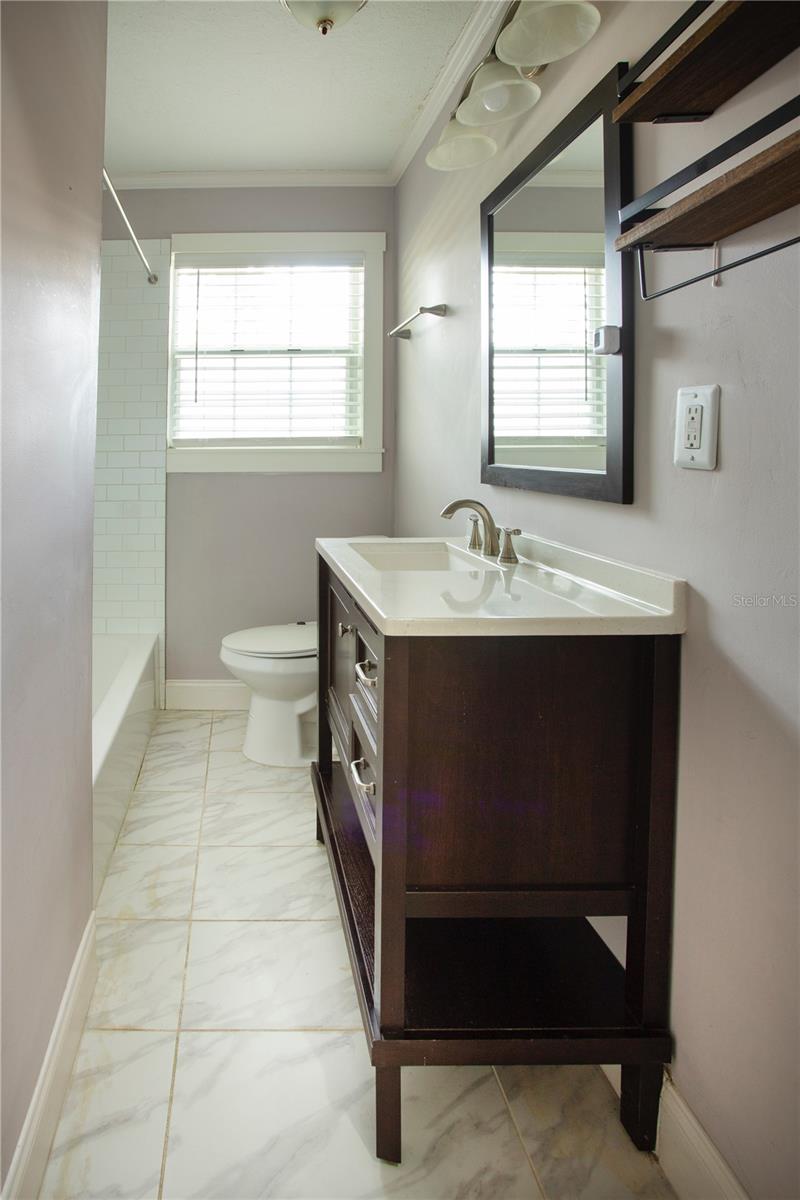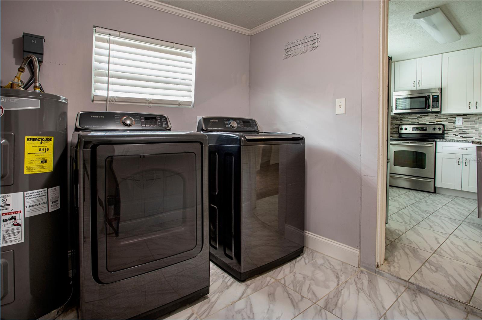 Beautiful home is situated on an oversized lot located in trendy Seminole Heights with no CDD or HOA! Fully renovated in 2019 to include flooring, plumbing, roof, water heater and double pane windows and new AC in 2023. There is plenty of natural light, crown molding and ceiling fans throughout. The living room and dining area has beautiful walnut color wide plank luxury laminate floors. The kitchen opens to the dining area and includes stainless steel appliances, granite counters, soft close shaker cabinets with chrome hardware, glass tile back splash and ceramic tile floors. The hall bathroom features ceramic tile floors, subway tile tub shower combo, walnut finish vanity, neutral color granite counters and undermount sink. The bathroom located off from the living room features ceramic tile floors, a unique pebble waterfall wall tiled walk-in shower, walnut finish vanity, neutral color granite counters, undermount sink with a double lever brushed stainless steel faucet. The inside laundry room offers extra space for storage and has an exterior door leading to the spacious back yard. The back yard is surrounded by mature trees, which were recently trimmed, offering plenty of shade and a great space for entertaining. Home and lot were high and dry during hurricanes. The extended driveway gives ample guest parking. This charming property is conveniently located near Hwy 275, downtown Tampa, Water Works Park, Riverwalk, Tampa International Airport, restaurants, shopping, hospitals and all of the other attractions Tampa Bay has to offer.
