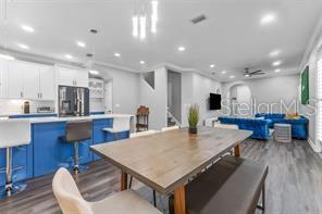 Welcome to this beautifully appointed 3-bedroom, 2.5-bath townhome in the highly desirable Courier City/Oscawana neighborhood of South Tampa. Built in 2004 and thoughtfully maintained, this residence blends timeless Mediterranean-inspired architecture with modern updates—creating a home that feels both sophisticated and welcoming in every season.Step inside to an open-concept design that radiates light and warmth. High ceilings, luxury flooring, and refined finishes set the stage for stylish everyday living. The gourmet kitchen is a true showpiece, featuring sleek cabinetry, quartz countertops, a custom island with seating, stainless steel appliances, and a striking backsplash—perfectly designed for both casual meals and elegant entertaining.Upstairs, the primary suite is your private retreat with a generous walk-in closet and spa-inspired en-suite bath. Two additional bedrooms provide flexibility for guests, a home office, or a growing family. Each bathroom is thoughtfully updated with elegant tilework and modern fixtures, creating a serene, four-season retreat.Outdoor living is just as inviting, with a private patio space ideal for morning coffee, alfresco dining, or evening gatherings under the Florida skies.Practical features include a one-car garage, a dedicated laundry room, and ample storage throughout. For peace of mind and effortless living, the monthly HOA covers ground maintenance, water, sewer, and trash—so you can spend more time enjoying all that South Tampa has to offer.Don’t miss the opportunity to experience refined townhome living in one of Tampa’s most coveted neighborhoods. Schedule your private showing today!