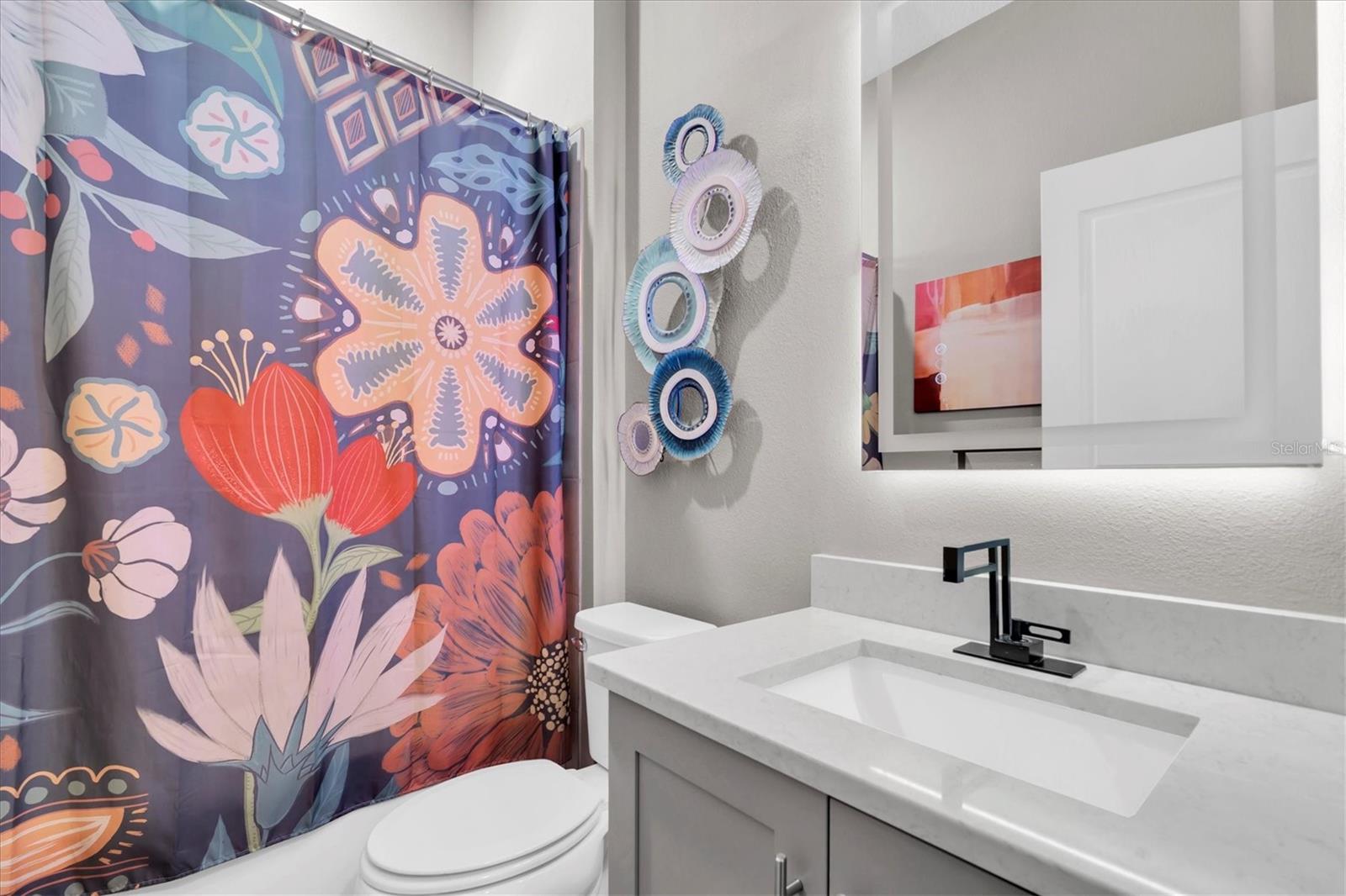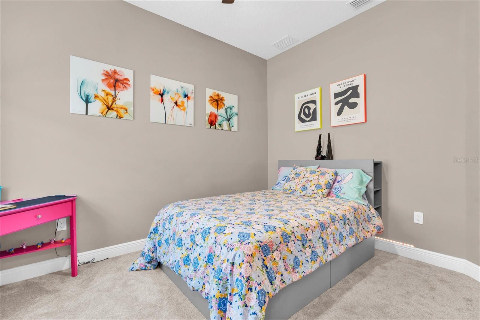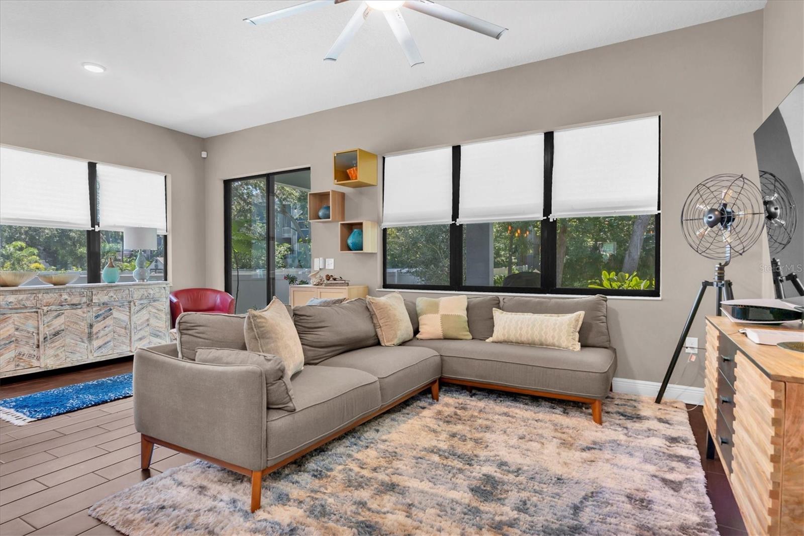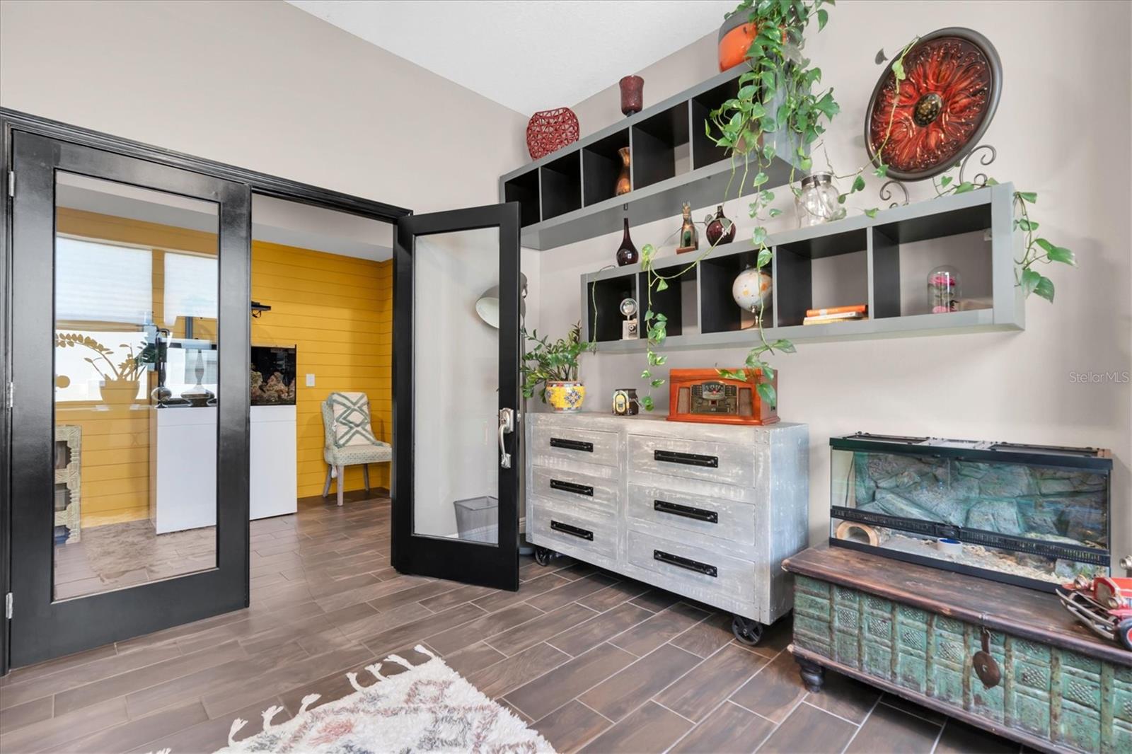 Modern comfort and style come together in this 2019-built Tampa home on a spacious quarter-acre lot with no HOA and no CDD. Freshly painted inside and out, it features high ceilings, wood-look tile floors, and custom touches throughout. The flexible front room with French doors is perfect for a home office, playroom, or media space. The kitchen and main living area are the heart of the home, featuring granite countertops, a shiplap island, new backsplash, stainless steel appliances, upgraded cabinets with crown molding, a glass pantry door, and a walk-in pantry. The open layout connects to a dining nook and great room with sliding doors that lead to a covered lanai and fully fenced backyard—perfect for everyday living and entertaining. The owner’s suite includes a tray ceiling, large walk-in closet, and an upgraded bath with dual vanities, a frameless glass shower, and modern finishes. Two additional bedrooms provide space for guests or hobbies. Located in a no flood and no evacuation zone, this move-in ready home offers modern design, low maintenance, and an ideal Tampa location just minutes from shopping, dining, and major highways.