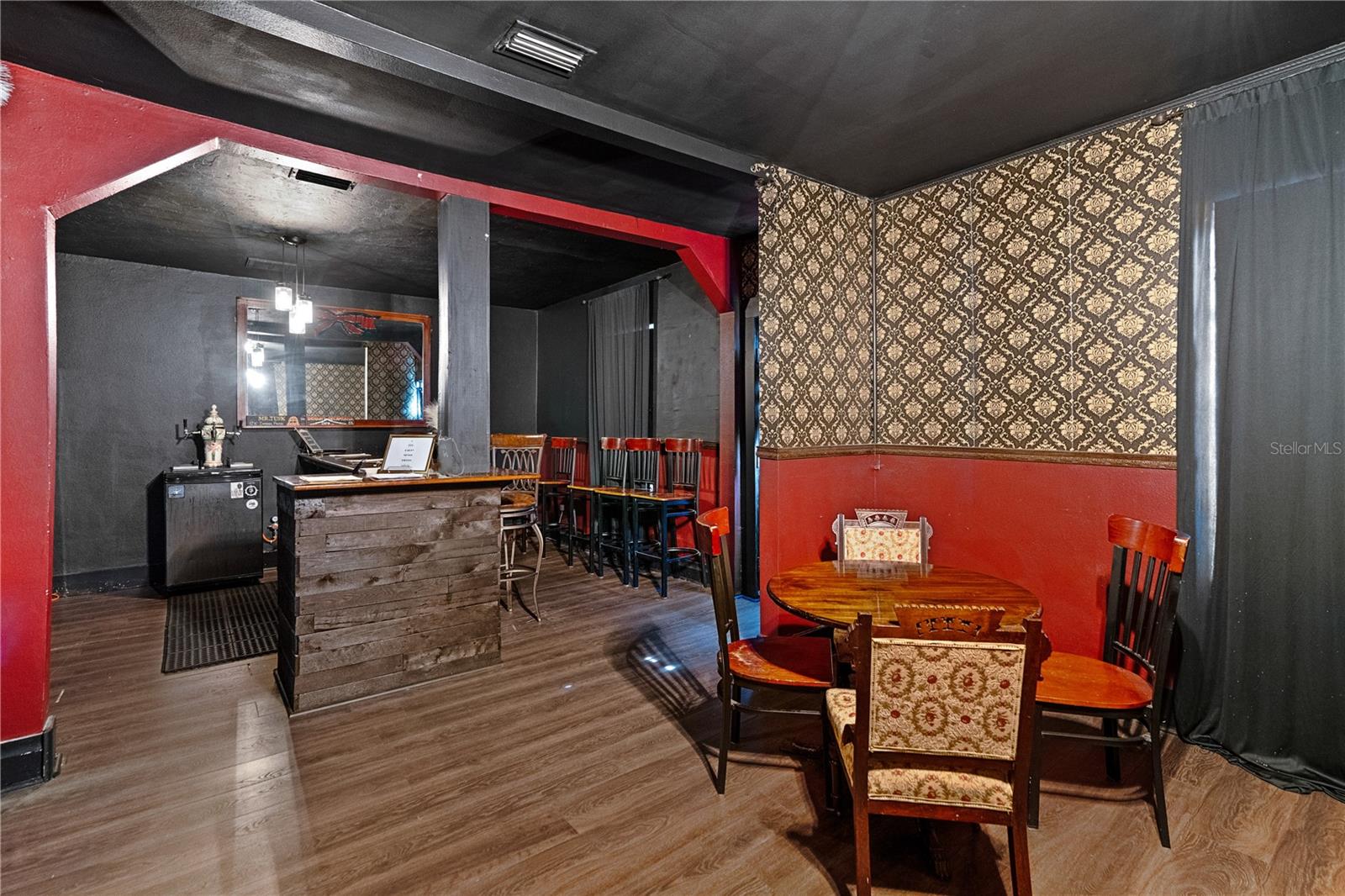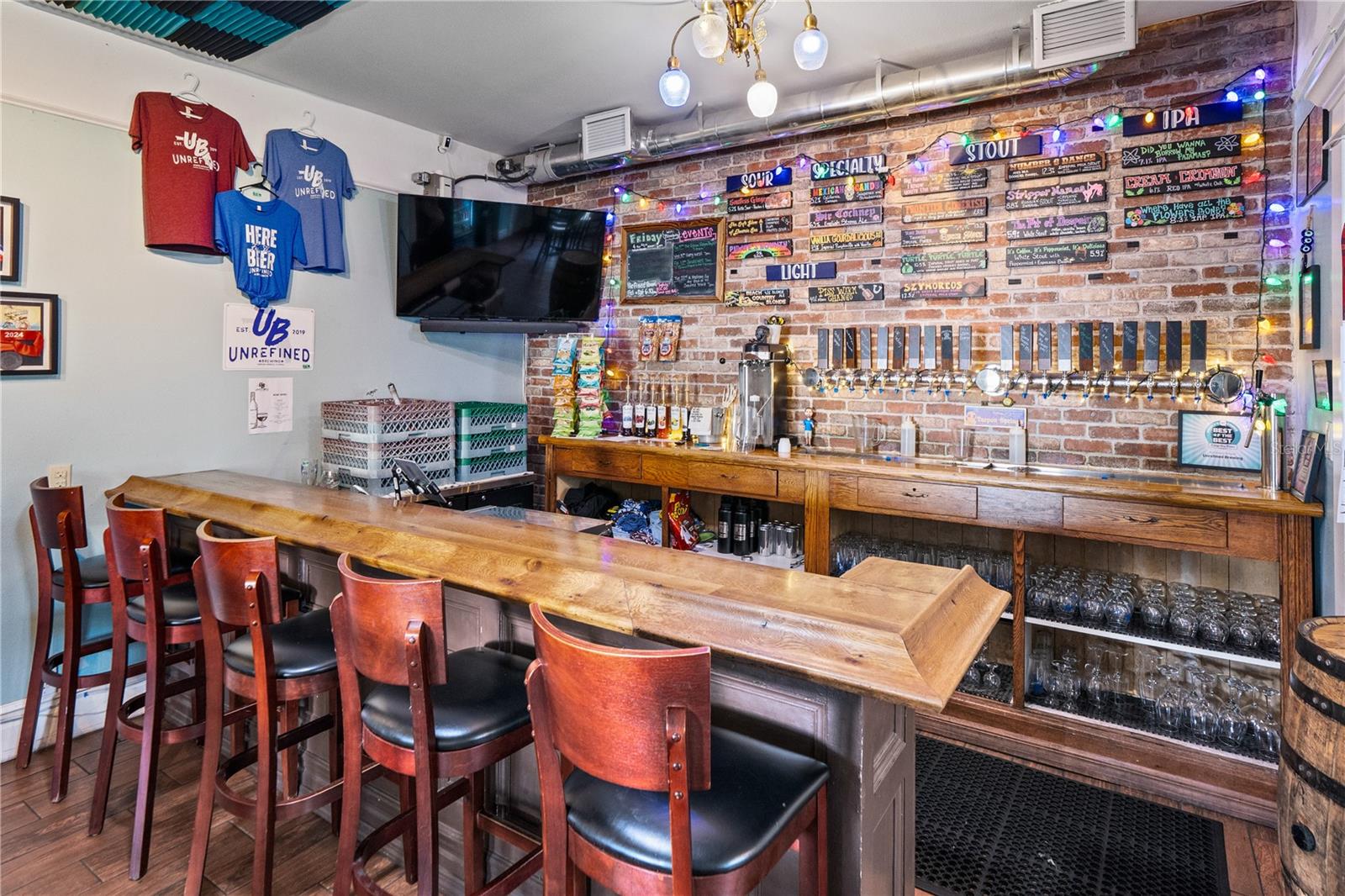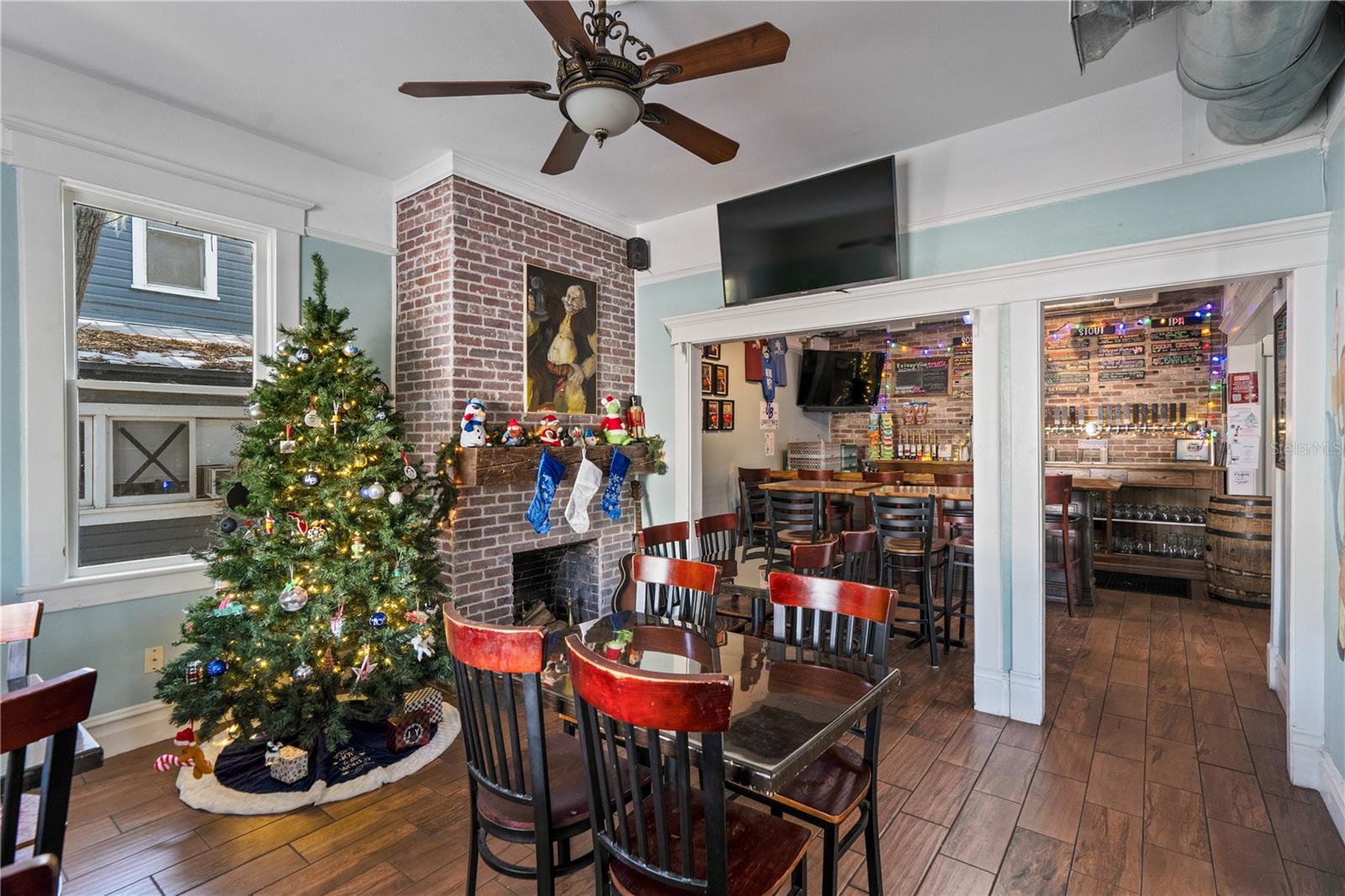 Rare opportunity to own a landmark commercial building in the heart of downtown Tarpon Springs, prominently positioned on busy Tarpon Avenue. Built in 1912, the property offers tall ceilings, large storefront windows, and the authentic character only a century-old structure provides. Currently operating as a brewery, the space suits a wide range of uses—restaurant, café, retail, gallery, or any business seeking prime visibility in a high-traffic corridor. Upstairs features two bedrooms, a full bathroom, and an additional lounge area currently used as a speakeasy, creating a valuable live-work setup or flexible private event/office space. Opportunity to turn upstairs into an 864 sqft 2 bedroom apartment for additional income. With exceptional walkability and exposure, this is a standout asset for an owner-operator or investor.