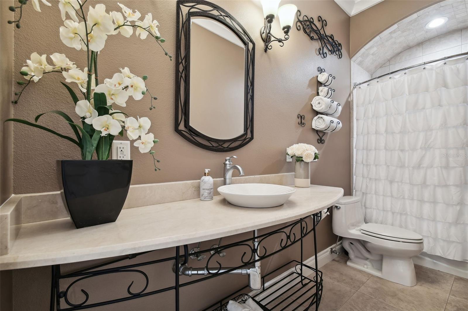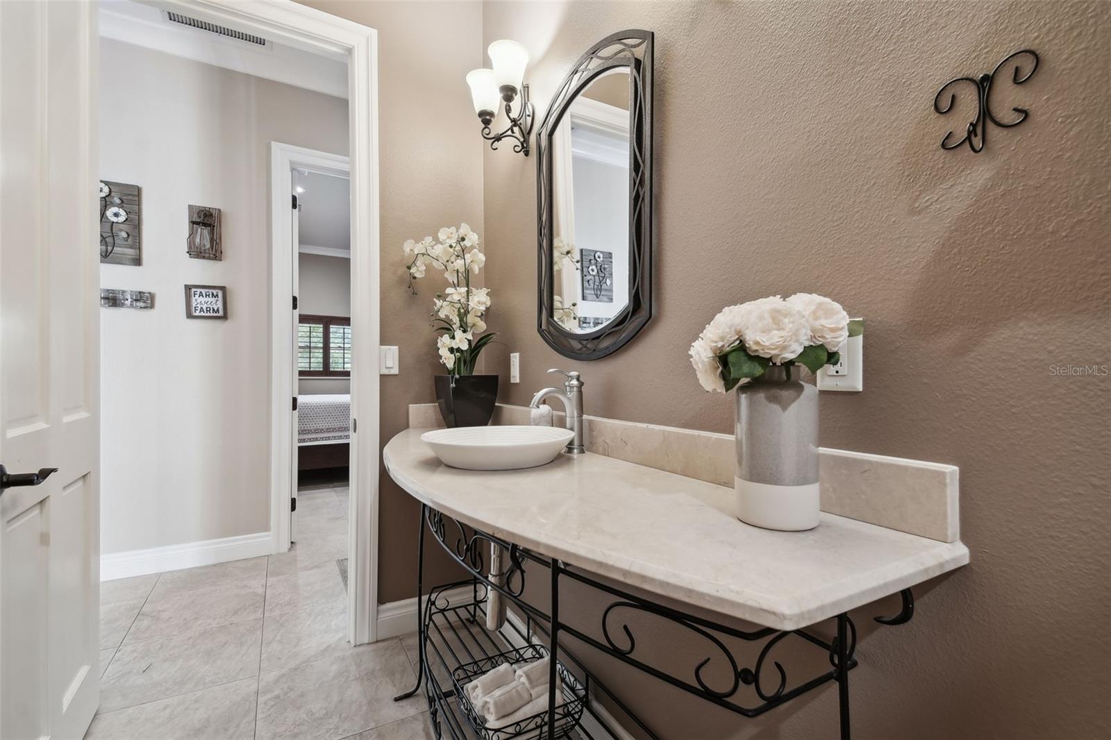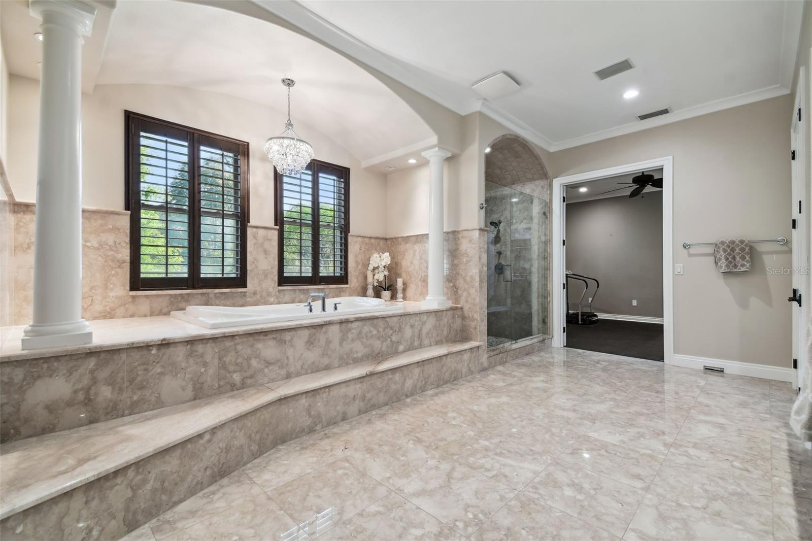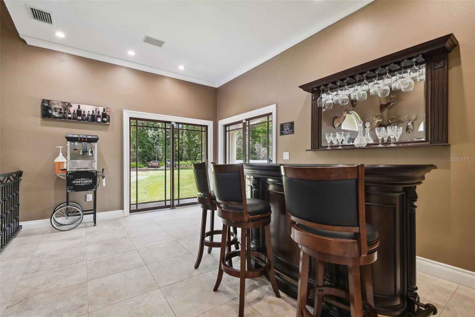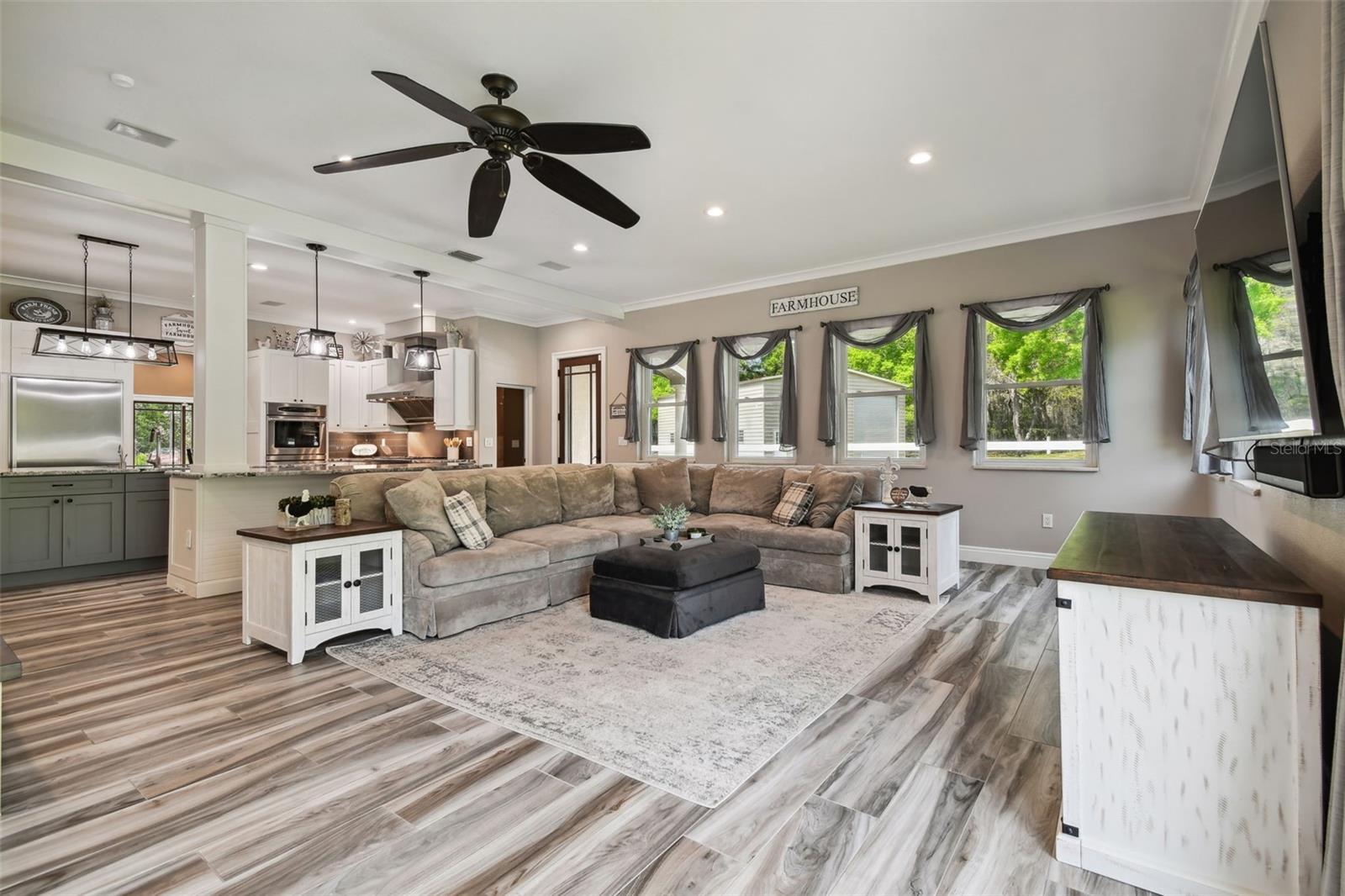 This stunning home has been renovated, reinvigorated, and added on to create an esquite estate. Coming through the private gates, you drive the brick-paved driveway to the beautiful home surrounded by over 4.4 acres of land, all fenced and gated. Included is a private pond with a fountain, a barn with three stables and a tack room, and a newly built 40'x50' workshop with a 6-inch concrete pad that is perfect for the car enthusiast, your boats, and RV storage. The home itself went through an amazing kitchen transformation. The new kitchen was redesigned and reconfigured for a better flow for parties and everyday living. This remodel entailed bringing in new cabinets, hardware, counters, flooring, lighting, ice maker, beverage fridge, and dishwashers. New paint throughout the home brings a cohesiveness from room to room. The living room, with its vaulted ceilings and oversized fireplace, has new flooring in 2024. Down the hall are three bedrooms, two bathrooms, and a large laundry room. One of the guest bedrooms is spacious and has a massive walk-in closet. Upstairs is one of the most thoughtfully designed primary bedrooms. It encompasses new hardwood flooring, a fireplace, a private office, a gym/workout room, a laundry room, walk-in closets, and two private balconies. The office, with its barn doors, has a fridge and sink for your convenience and could be used as a nursery. The closets are oversized with custom cabinetry and one with a gorgeous granite-topped island. The primary bathroom is luxurious, with a jetted tub, a walk-in shower, two separate vanities, one with a makeup area, and a water closet with a bidet. The gym is off the bathroom for a perfect workout. The laundry room is conveniently located by the closets. No details have been left out of the spectacular primary bedroom. Stepping outside by the pool, a covered patio area has been added to shade the outdoor kitchen. The outdoor kitchen houses a BBQ with two gas burners, a Primo Grill, a TV, a refrigerator, an ice maker, a built-in blender, and a fire pit. The saltwater pool was recently redone in 2024 with its spa, sun shelf, table, and a nearby outdoor woodburning fireplace are all surrounded by stunning travertine, recently sealed. The house boasts two sets of 2 car garages; one is attached to the house, and the other garage connects by a breezeway. The breezeway area is the perfect place to add outdoor games. An air-conditioned safe room is nearby. The seller added the 40x50 workshop in 2021 that has 6" concrete floors and four 16x16 roll-up bay doors for your RV, boats, or whatever you need. The barn has three stalls, a tack room, a wash stall, electricity, and water. The estate has a turn-out pasture, and a separate new electric gate is nearby for easy access to the barn. The outside was painted in 2020 and has security, speakers, and water filtration throughout the home. A new roof was installed in 2021, 3 new tankless water heaters in 2020, and 3 AC units in 2018. This picturesque estate encompasses tranquility and serenity but is close to the beaches, Tampa, St. Petersburg, and the airport.