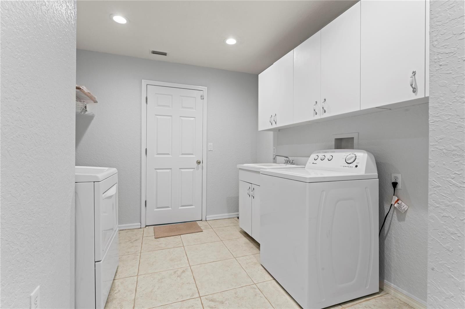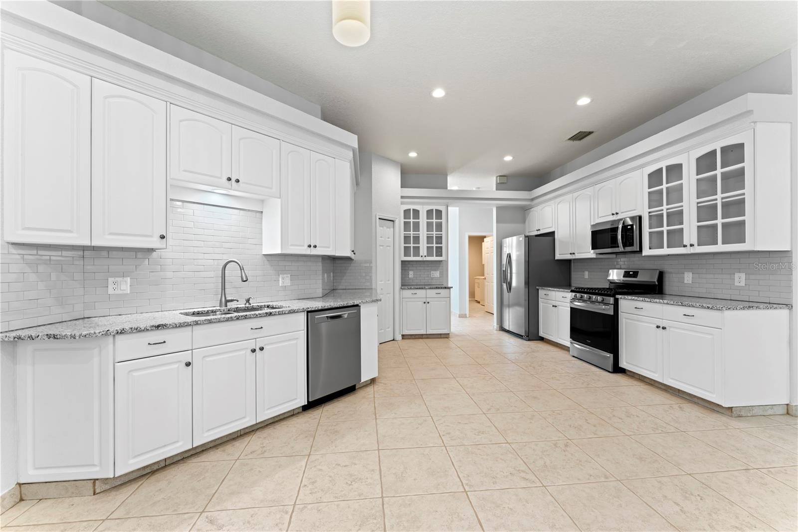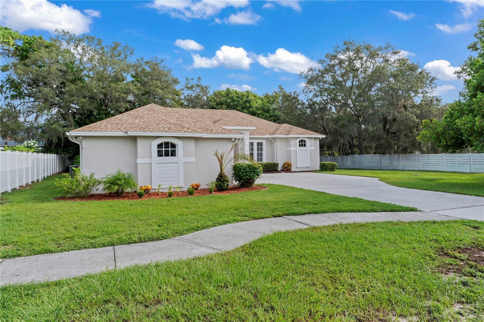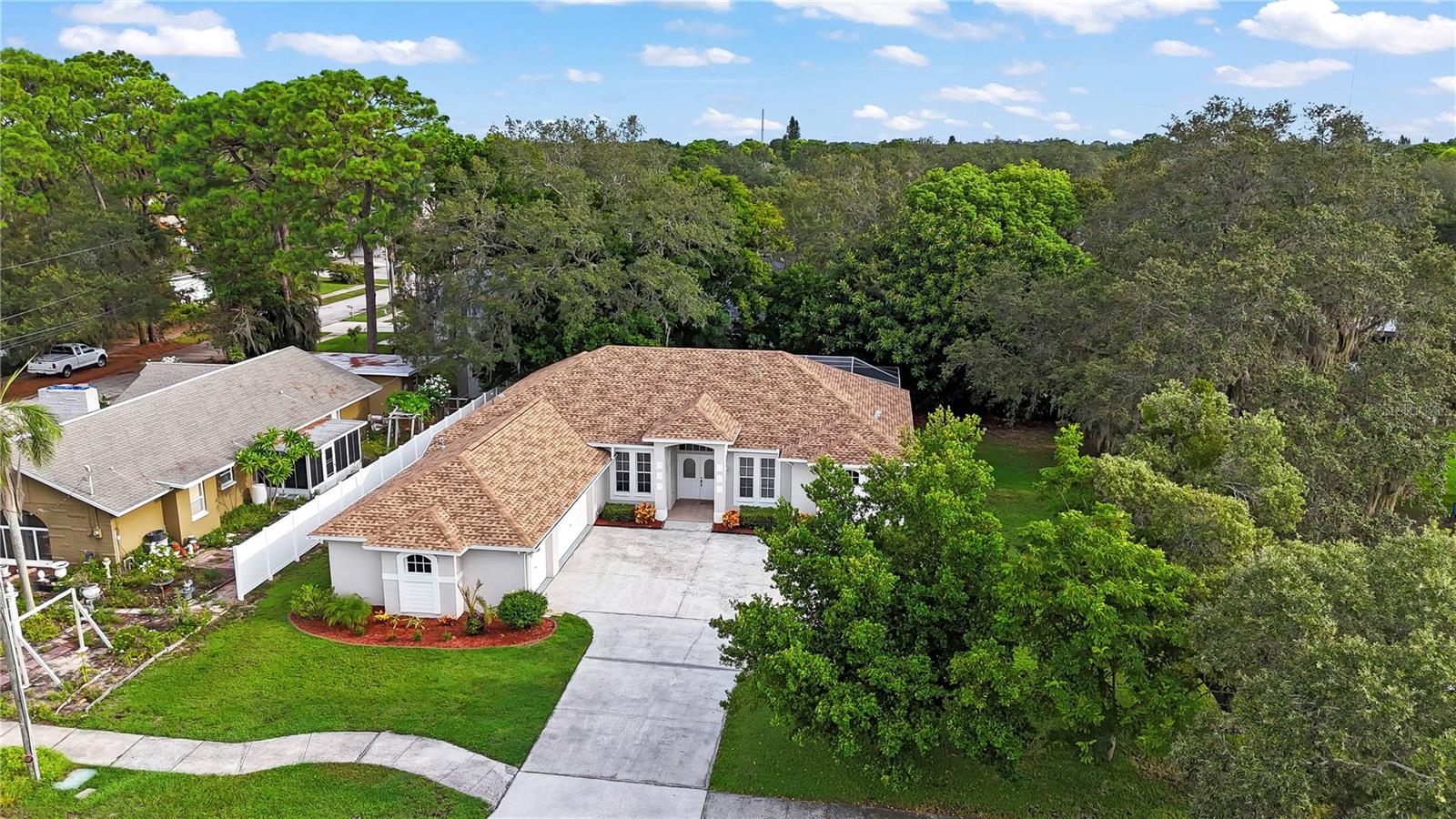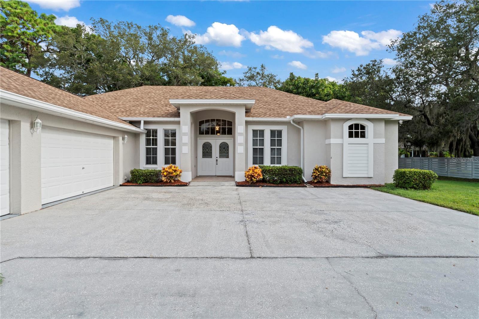 One or more photo(s) has been virtually staged. UNIQUE COASTAL PROPERTY for discriminating buyer. PRIME COASTAL LOCATION: Short walk to Sunset Beach, short bike ride to Howard Beach, Gulf water view form the driveway, and yet NO FLOOD INSURANCE required. Close to famous Sponge Docks, Pinellas Trail, marinas, boat ramps, golf courses, restaurants, and shopping. QUIET AND PRIVATE: Extra-large lot with privacy fences on the sides and lush tropical green belt at the back. Front of the house is set far back from the street. Quiet picturesque red-brick-paved street (Tarpon Springs signature). UPSCALE ARCHITECTURE AND CURB APPEAL: Perpendicular garage and a large (36x32ft) loading area create a stately private courtyard framed on the east side by large oak trees. Soaring front porch. Double-entry front door with leaded beveled glass and large arched transom window. High pitched roof that is of hip construction, which offers added wind resistance (insurance discount). MODERN EFFICIENT LAYOUT: Three-way split floor plan - two bedrooms in each wing and kitchen, living, dining in the center. Kitchen opens to the dinette area with a view of the pool and to large bright family room with gas fireplace. Ceilings are 10ft in the main area and 12ft cathedral in the foyer and dining area. Large laundry/utility room has access door to garage, and can accommodate a second washer/dryer set, or a secondary refrigerator or freezer. Private pool lanai has direct access doors from: family room, living room, pool bath, and the master suite. UPGRADED AND METICULOUSLY MAINTAINED: Ceramic floors throughout. New granite countertops in kitchen and west-wing bath. New roof and outside paint in 2022. Fully repainted inside in 2023, including garage. Garage floor epoxy coated and pool deck repainted in 2023. Brand-new stainless kitchen appliances just installed. New vanity and laundry faucets. New modern LED ceiling fans. LED pot lighting throughout. Custom vertical blinds and new plantation-style blinds in bedrooms. FREEDOM TO ENJOY LIFE: Oversized 3-car garage for your vehicles, tools, and toys. Large walkable garage attic for extra storage. No HOA, no CDD - no restrictions, no fees. You can park your boat or RV on the property. SAFETY AND CONVENIENCE: Wheelchair accessible front entrance and bathrooms (rare find). Screened pool enclosure with door closers and child safety fence (currently rolled up and stored in the attic).