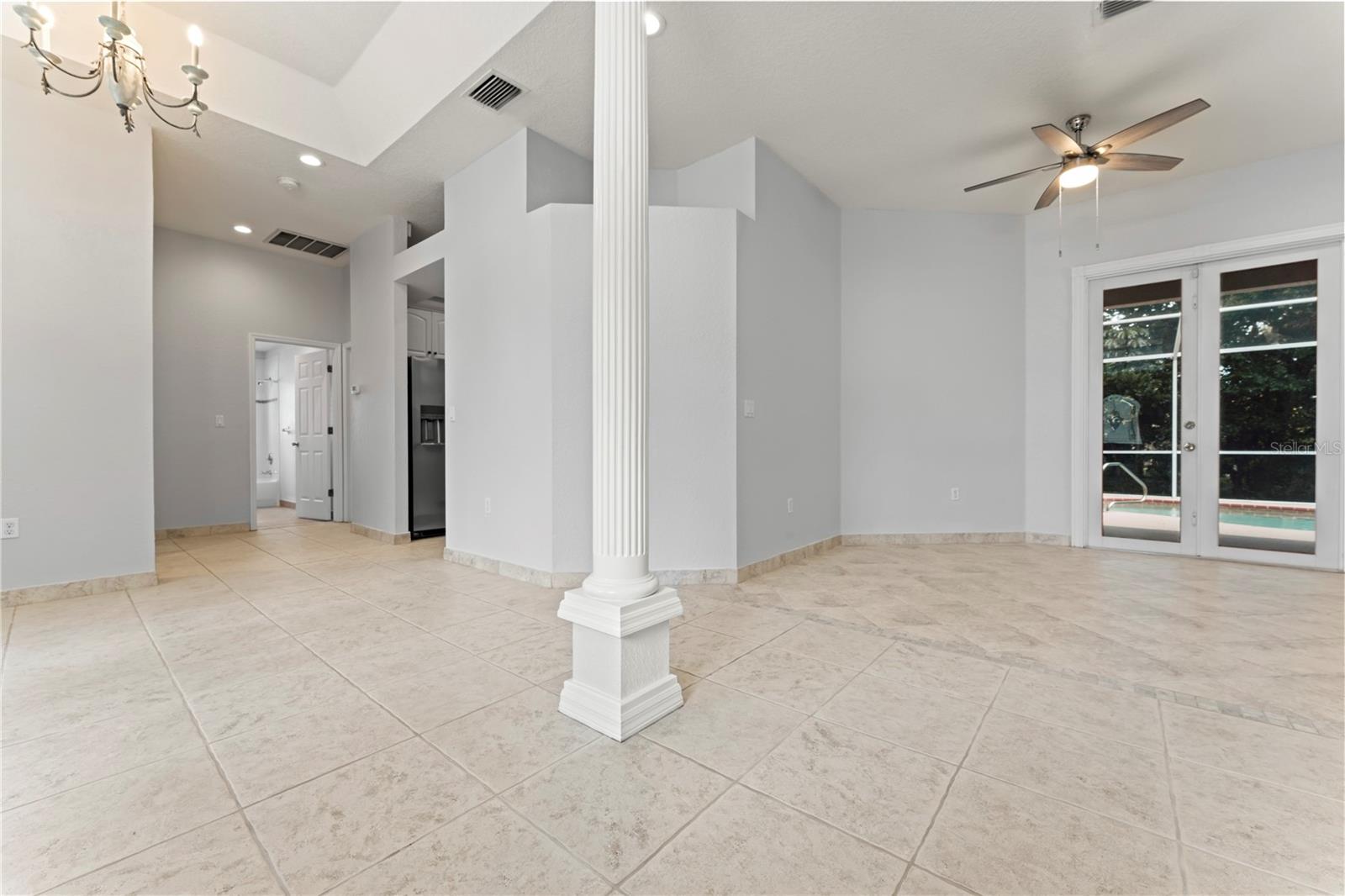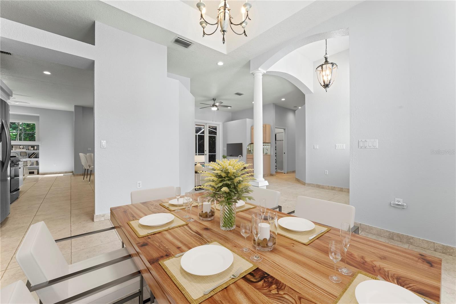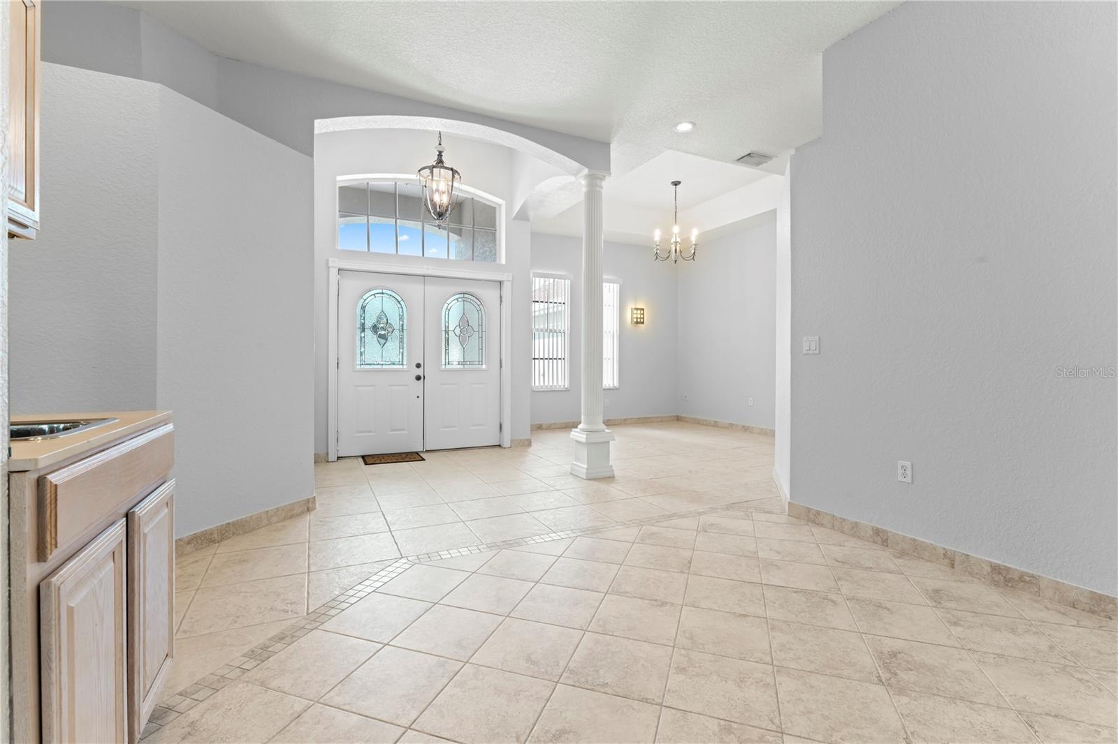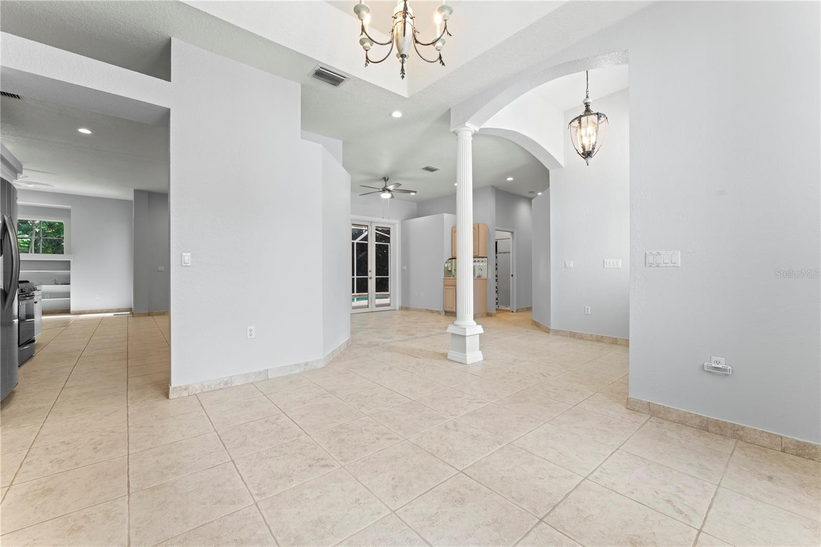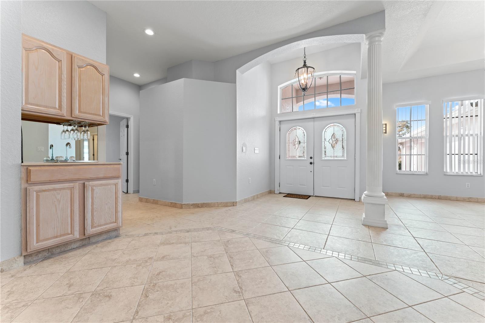 One or more photo(s) has been virtually staged. UNIQUE COASTAL PROPERTY for discriminating buyer. PRIME COASTAL LOCATION: Short walk to Sunset Beach, short bike ride to Howard Beach, Gulf water view form the driveway, and yet NO FLOOD INSURANCE required. Close to famous Sponge Docks, Pinellas Trail, marinas, boat ramps, golf courses, restaurants, and shopping. QUIET AND PRIVATE: Extra-large lot with privacy fences on the sides and lush tropical green belt at the back. Front of the house is set far back from the street. Quiet picturesque red-brick-paved street (Tarpon Springs signature). UPSCALE ARCHITECTURE AND CURB APPEAL: Perpendicular garage and a large (36x32ft) loading area create a stately private courtyard framed on the east side by large oak trees. Soaring front porch. Double-entry front door with leaded beveled glass and large arched transom window. High pitched roof that is of hip construction, which offers added wind resistance (insurance discount). MODERN EFFICIENT LAYOUT: Three-way split floor plan - two bedrooms in each wing and kitchen, living, dining in the center. Kitchen opens to the dinette area with a view of the pool and to large bright family room with gas fireplace. Ceilings are 10ft in the main area and 12ft cathedral in the foyer and dining area. Large laundry/utility room has access door to garage, and can accommodate a second washer/dryer set, or a secondary refrigerator or freezer. Private pool lanai has direct access doors from: family room, living room, pool bath, and the master suite. UPGRADED AND METICULOUSLY MAINTAINED: Ceramic floors throughout. New granite countertops in kitchen and west-wing bath. New roof and outside paint in 2022. Fully repainted inside in 2023, including garage. Garage floor epoxy coated and pool deck repainted in 2023. Brand-new stainless kitchen appliances just installed. New vanity and laundry faucets. New modern LED ceiling fans. LED pot lighting throughout. Custom vertical blinds and new plantation-style blinds in bedrooms. FREEDOM TO ENJOY LIFE: Oversized 3-car garage for your vehicles, tools, and toys. Large walkable garage attic for extra storage. No HOA, no CDD - no restrictions, no fees. You can park your boat or RV on the property. SAFETY AND CONVENIENCE: Wheelchair accessible front entrance and bathrooms (rare find). Screened pool enclosure with door closers and child safety fence (currently rolled up and stored in the attic).