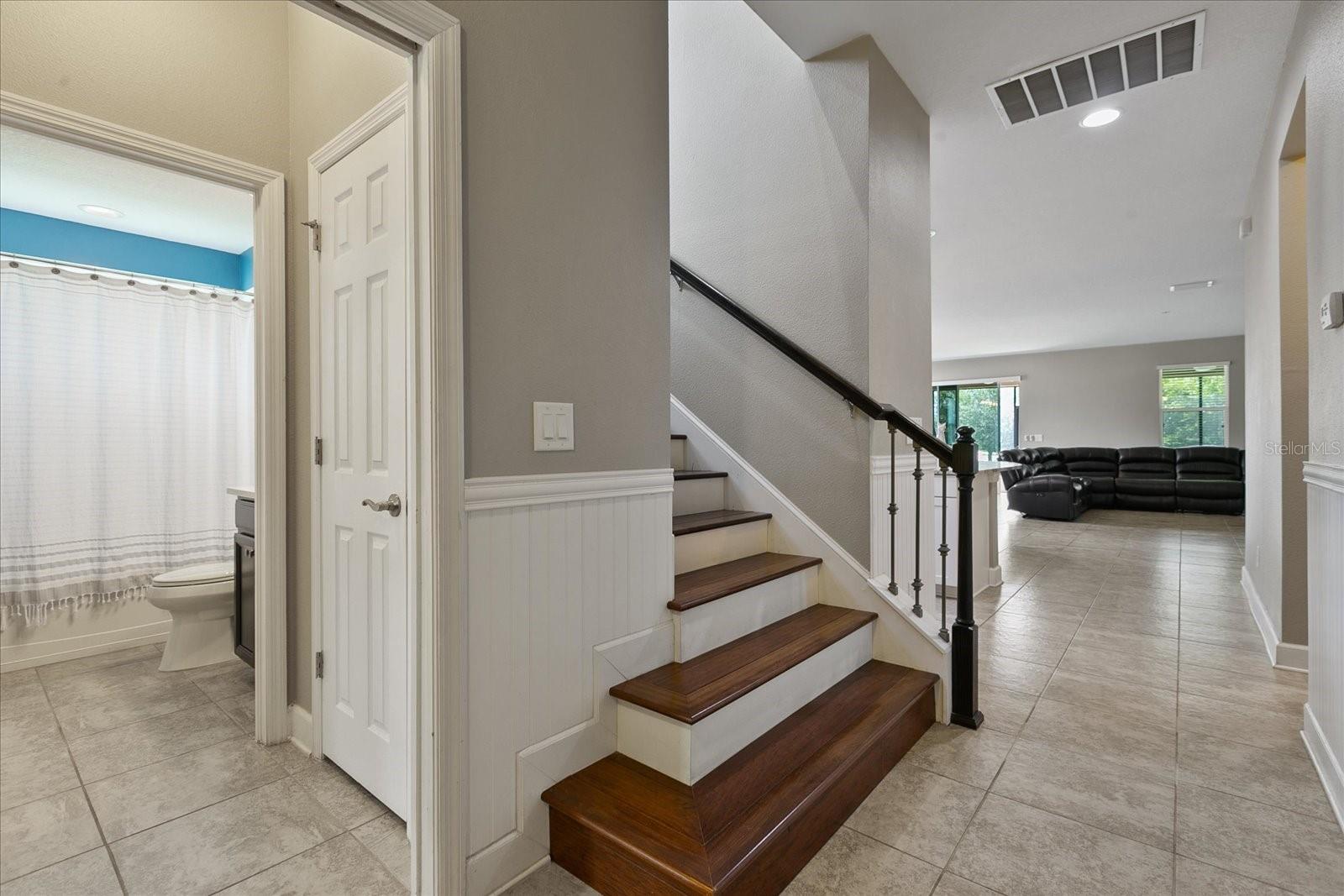 You're invited to visit and explore this beautiful, solar-powered property located just 1 mile from downtown Tarpon Springs and the Sponge Docks! Welcome To Affordable Waterfront Living! This modern home is located in a waterfront community with a private neighborhood boat ramp with access to the gulf, and a private fishing dock. Enjoy the gorgeous Tarpon sunsets and sunrises and watch the dolphins swim right from your own backyard! This incredible four-bedroom, three full bathroom home has been freshly painted and features several upgrades including crown molding, carpets, and flooring amongst others. You'll fall in love with the magnificent bright open space, the rustic farmhouse two-toned entertainment center with electric fireplace, music, and lighting, the impressive granite kitchen island, the privacy of a fenced-in huge corner lot with no side neighbors. Enjoy grilling on your own screened back patio overlooking the pond. There is a large master bedroom, with an oversized walk-in closet, master bathroom with double sinks, shower and hot tub. Property features another guest bedroom with full bathroom located downstairs. Two additional large bedrooms, and one full bathroom, plus a huge bonus room/office space located upstairs. This property boasts modern stainless steel appliances, Whirlpool fridge, washer and dryer in unit, brand new water heater (2023), brand new toilets throughout (2023), and a water softener. Brand new bamboo Java hardwood floors were recently installed in several bedrooms. The staircase was also revamped with both bamboo flooring. The property has a new solar panel system which covers ALMOST all of your electric bill. The system is automatically transferred to the new homeowner with title ownership forms sent and signed with Duke Great schools, restaurants, shopping, and water activities add to the lifestyle of this amazing home, with no flood insurance required and very low HOA fees!
