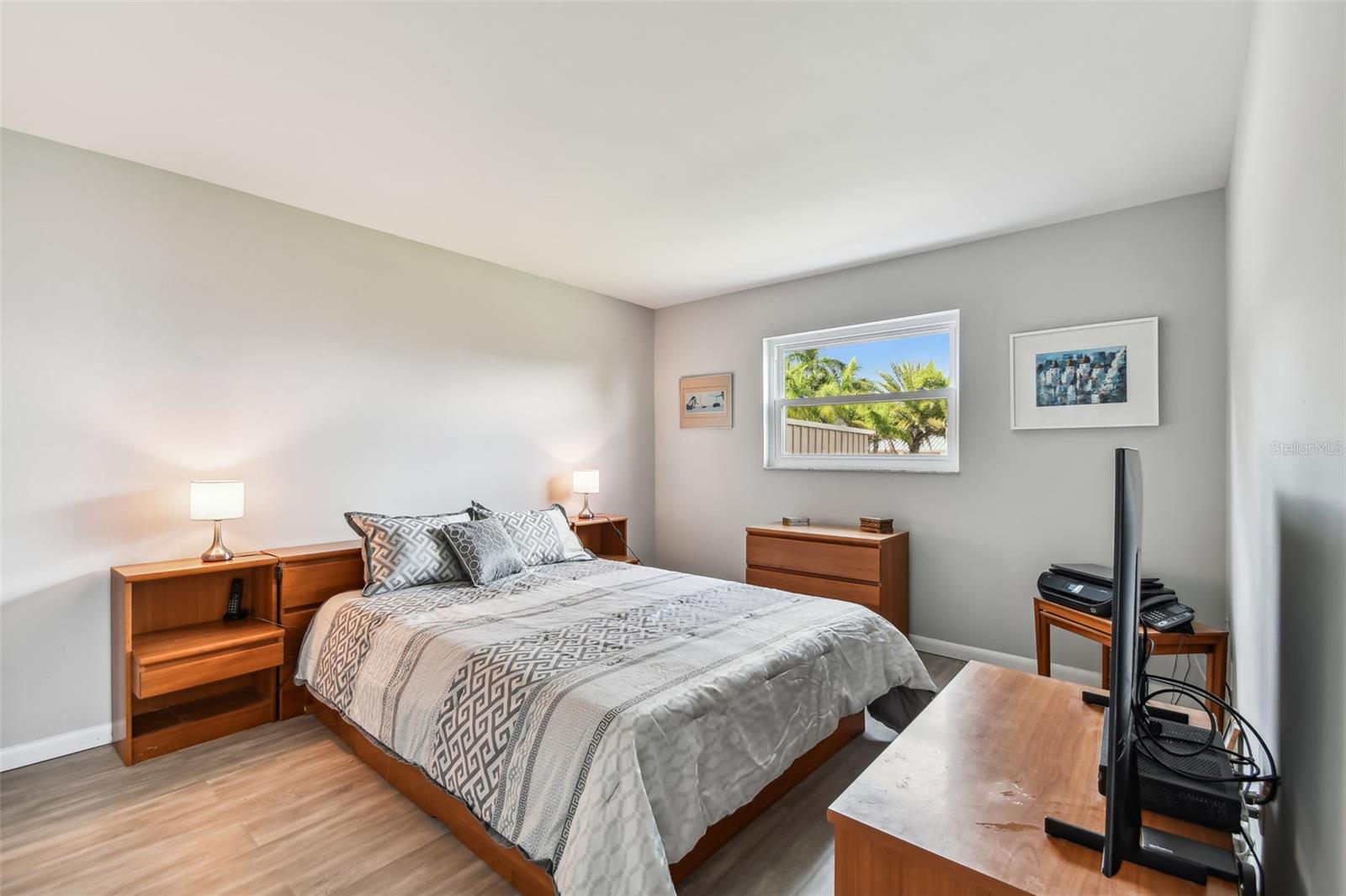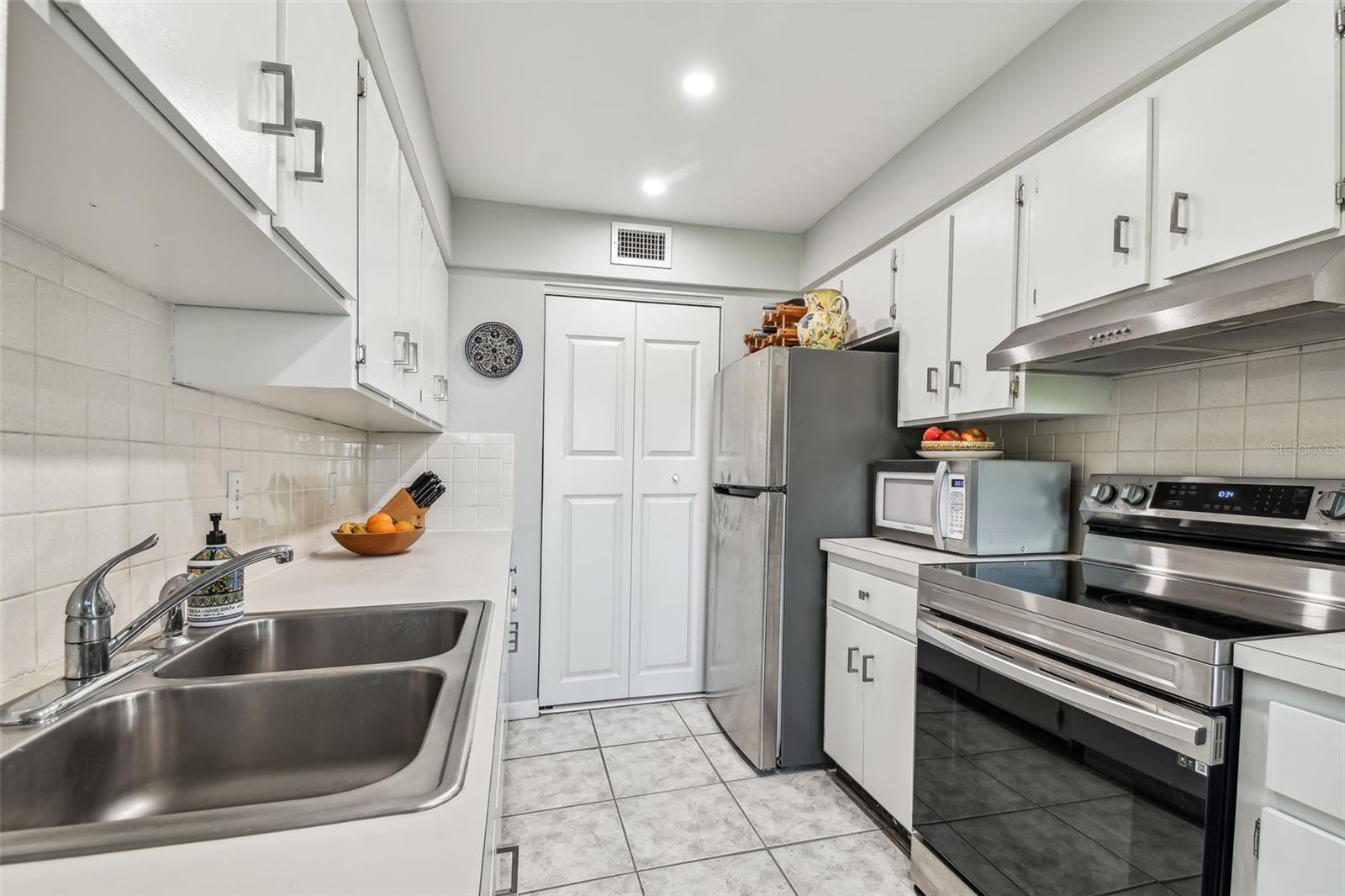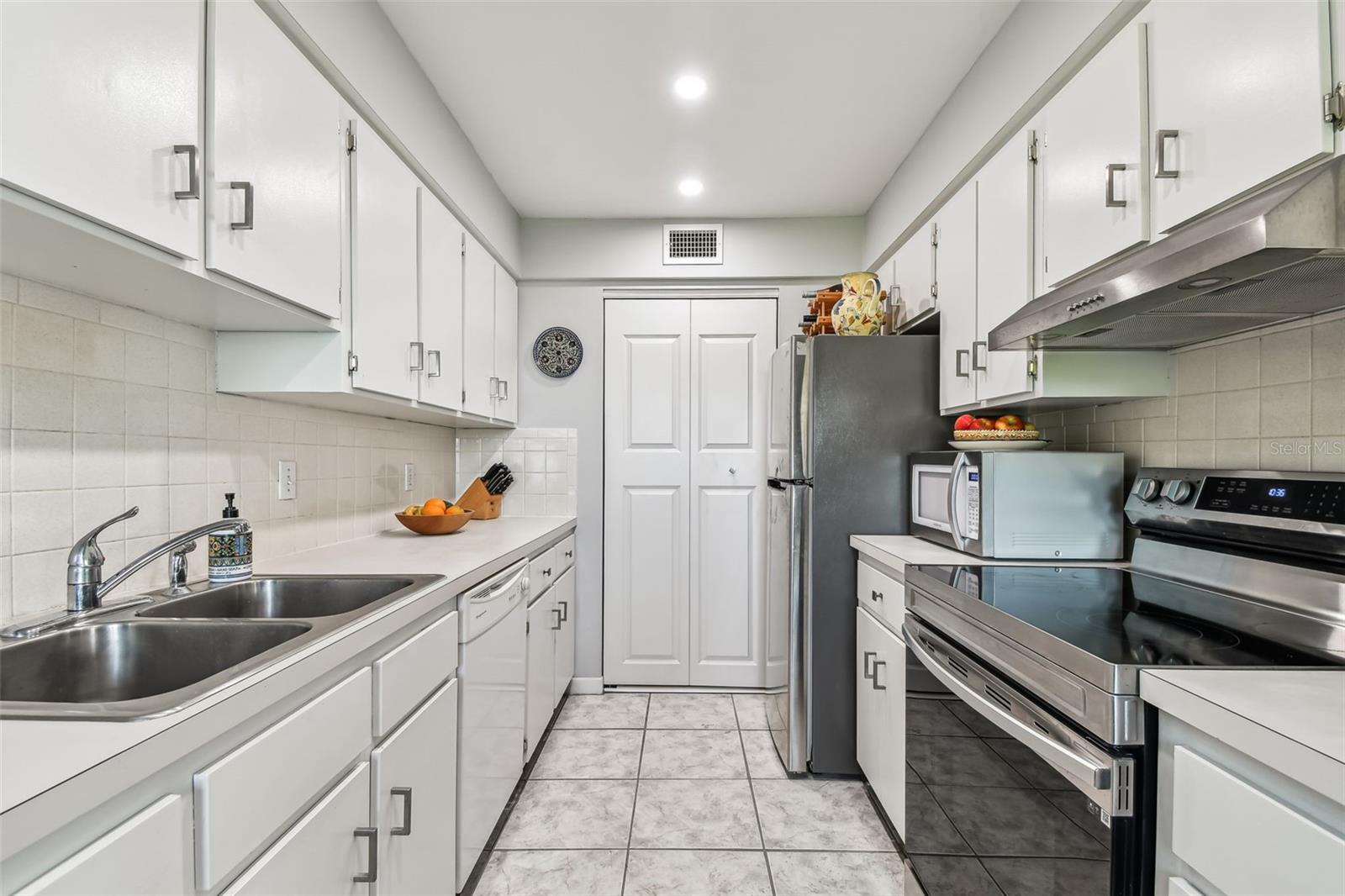 BREATHTAKING WATER VIEWS! This stunning first floor 2 bedroom, 2 bath condominium with 1,066 square feet of living space is move in ready and located steps just away from Sunset Beach. Large, open living room space with triple sliders leads out to your large patio offering beautiful views of the gulf/St. Joseph Sound. Kitchen features newer stainless-steel refrigerator, stove, and disposal as well as a pantry for ample storage. Tile and laminate flooring throughout. NO CARPET! There are NEW energy efficient/high impact windows throughout the condo. Both bathrooms have been remodeled with new tile tub surround, new mirrors, new vanities, and new flooring. This property is located at the entrance of Sunset Beach and is just minutes from Fred Howard Park, Tarpon Springs, the sponge docks, restaurants, hospitals, stores and more.