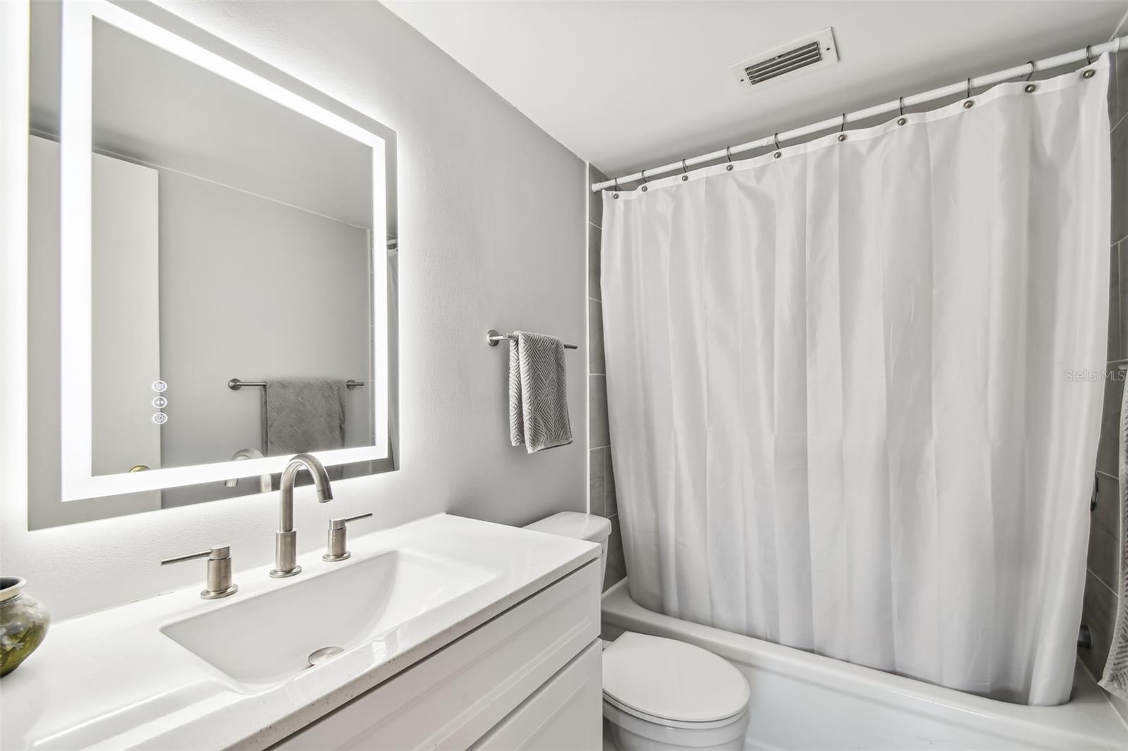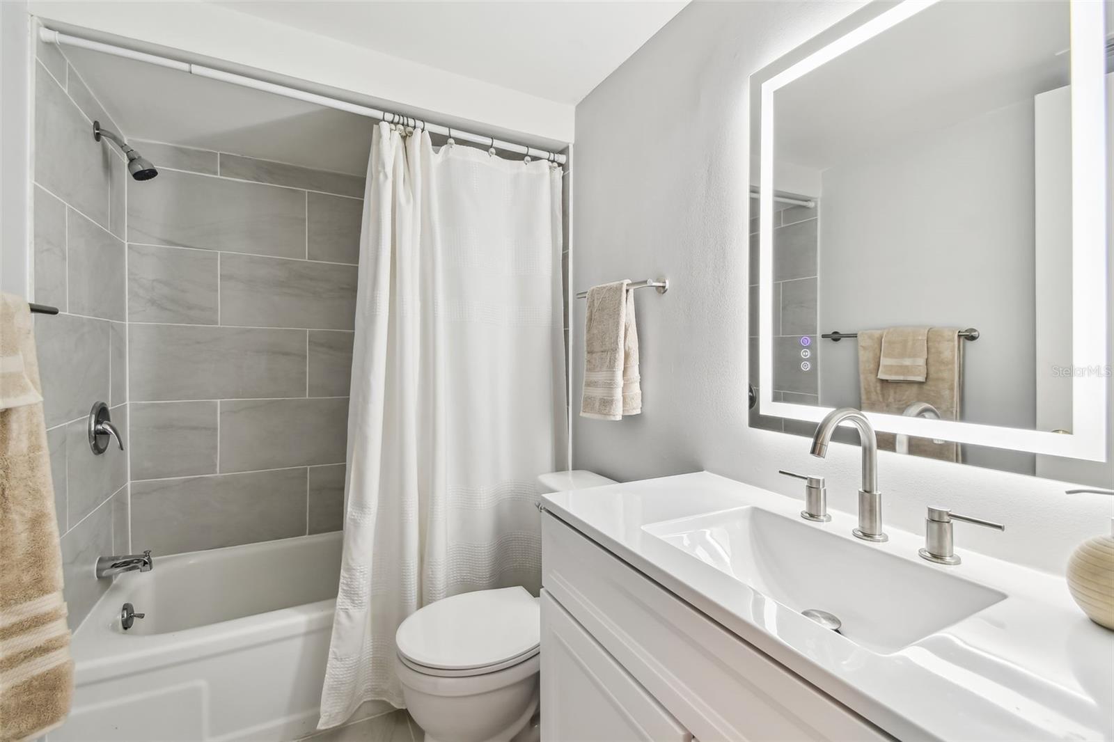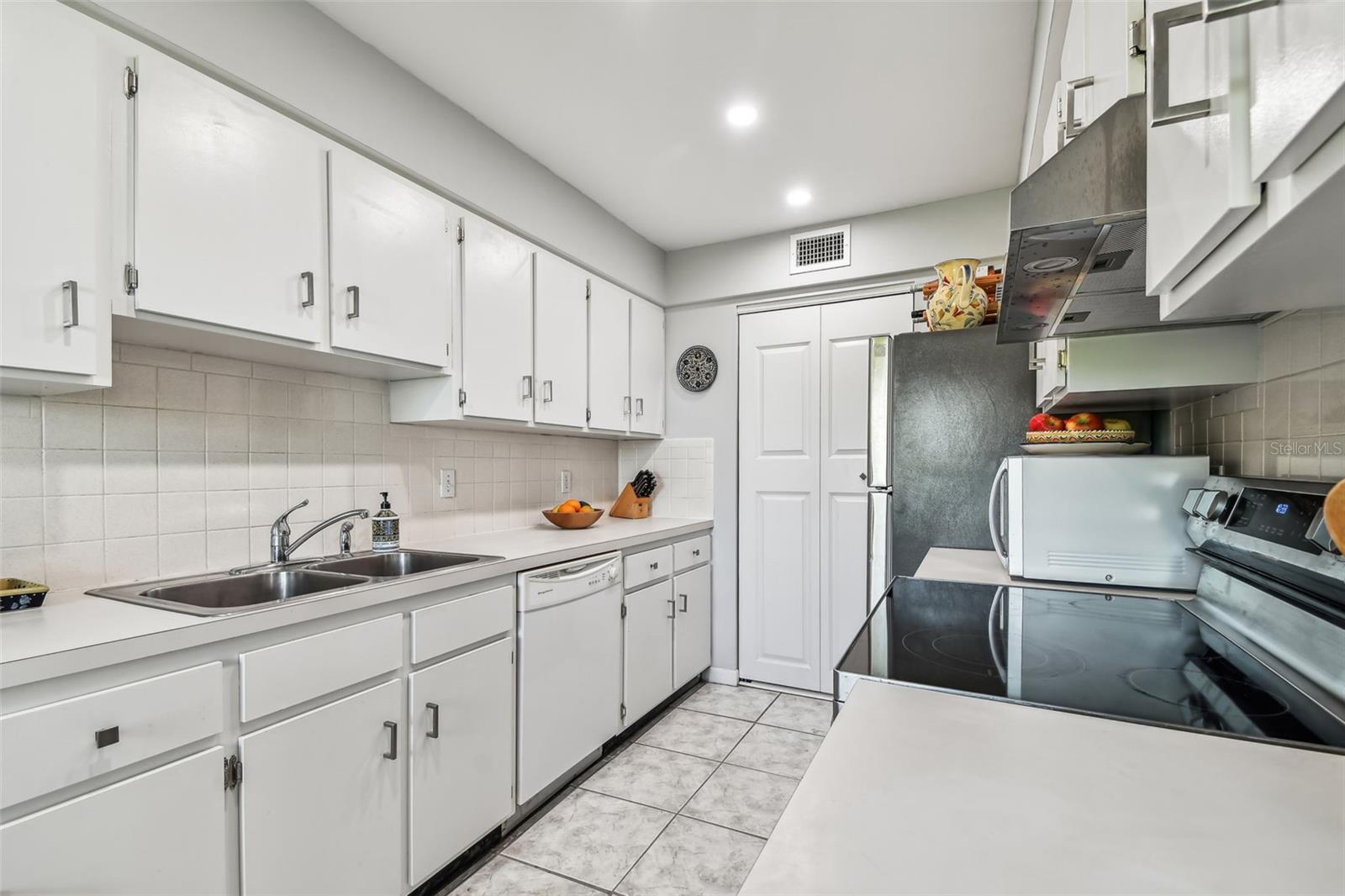 BREATHTAKING WATER VIEWS! This stunning first floor 2 bedroom, 2 bath condominium with 1,066 square feet of living space is move in ready and located steps just away from Sunset Beach. Large, open living room space with triple sliders leads out to your large patio offering beautiful views of the gulf/St. Joseph Sound. Kitchen features newer stainless-steel refrigerator, stove, and disposal as well as a pantry for ample storage. Tile and laminate flooring throughout. NO CARPET! There are NEW energy efficient/high impact windows throughout the condo. Both bathrooms have been remodeled with new tile tub surround, new mirrors, new vanities, and new flooring. This property is located at the entrance of Sunset Beach and is just minutes from Fred Howard Park, Tarpon Springs, the sponge docks, restaurants, hospitals, stores and more.