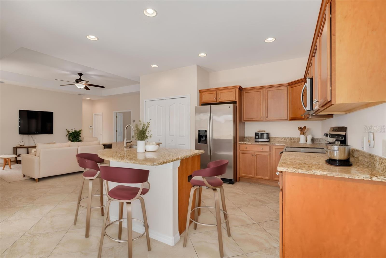 Under contract-accepting backup offers. Assumable low rate VA mortgage! NOTE: This home was high and dry during Hurricane Helene and Milton; not even a scratch. Helene surge, Tarpon Springs' record surge, was 6 feet below entry into the 1st floor! Elevation of 1st floor 1.4 feet above Base Flood Elevation (BFE). Stunning Pond View Home in Coastal Resort-Style Community! Discover the epitome of Florida living in this exquisite Tarpon Springs home, perfectly situated in the coveted Pointe Alexis community. Plan more golf, tennis or beach time, as your HOA fee covers all your home landscaping maintenance; yard mowing, edging, irrigation, and bush & tree trimming. HOA also covers water, garbage, sewer, cable, internet; everything you need for effortless living, not to mention the community center perks! A resort-style heated Olympic-size pool with a hot tub, impressive clubhouse facility with pool table, expansive kitchen for your own private parties, grill area, tennis, pickleball and basketball courts, and more. With 3 bedrooms and 2 baths, this 2014-built gem boasts an open floor plan adorned with beautiful vaulted tray ceilings, allowing for an abundance of natural sunlight to fill the space. The gourmet kitchen is a chef's delight, featuring expansive granite countertops, custom maple wood cabinets, soft-close drawers, and sleek stainless steel appliances. The split floor plan offers privacy, with a luxurious master suite that includes a master bath with double sinks, a glass-enclosed shower, and customized California Closets. Every detail of this home has been thoughtfully designed, from the upgraded tile flooring throughout to the large screened-in lanai where you can unwind and soak in serene pond views. The lush, tropical landscaping adds to the tranquil ambiance, with a yard that directly backs up to the peaceful pond. This home is not only beautiful but also functional, with a tankless hot water heater, hurricane shutters, a built-in generator that powers the entire house, and heavy-duty garage shelving for ample storage. Located just minutes from Fred Howard Park, where you can walk, bike, or kayak through a private launch to the Gulf of Mexico, this home is also conveniently close to shopping, schools, downtown, beaches, restaurants, and the famous Sponge Docks. This move-in-ready home is an opportunity you don’t want to miss! Call today for your private showing and start living the Florida dream! Seller is motivated.