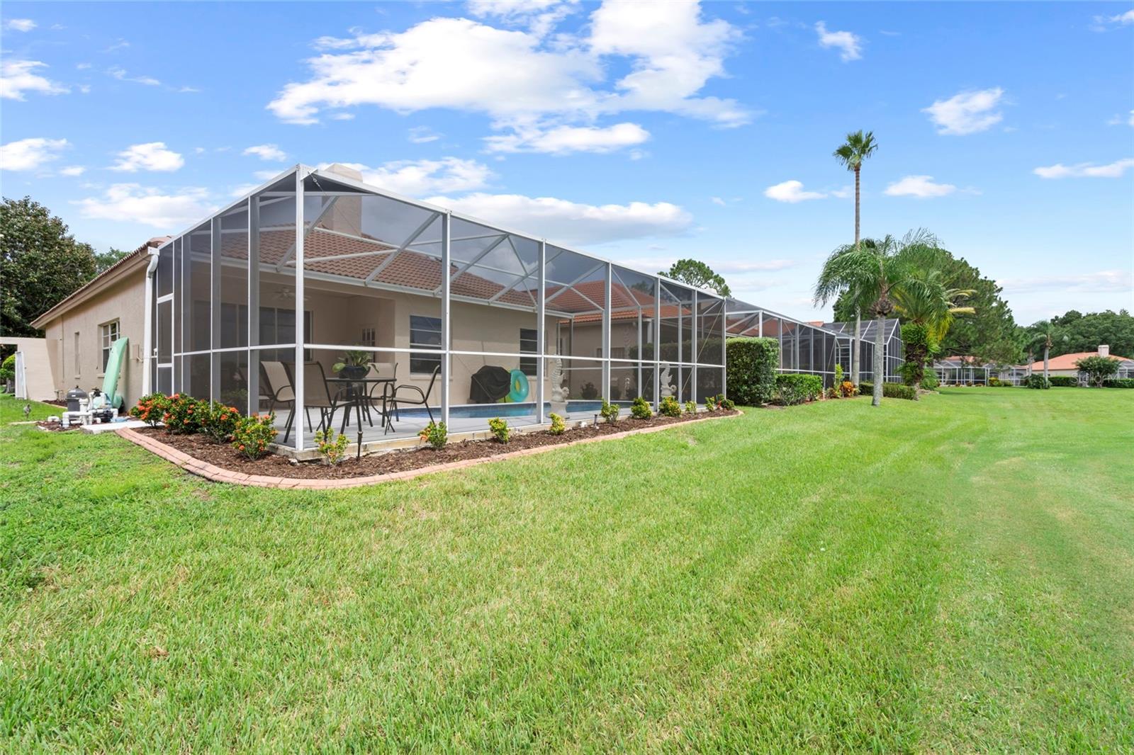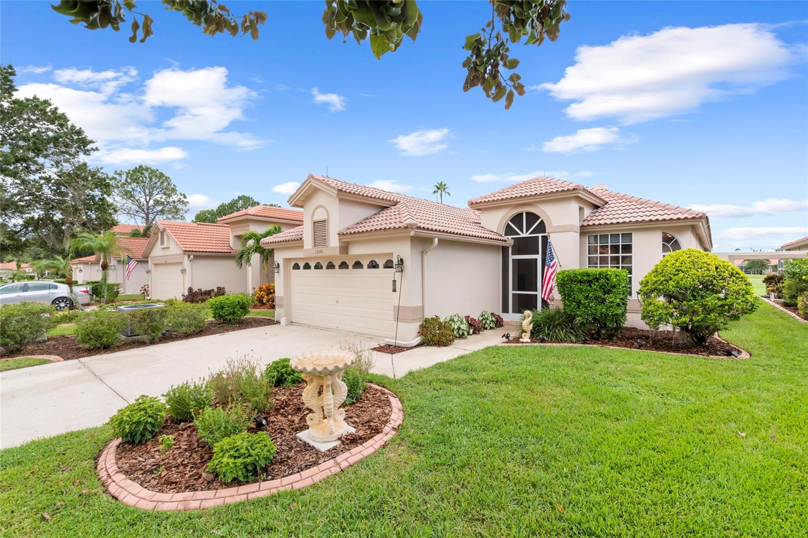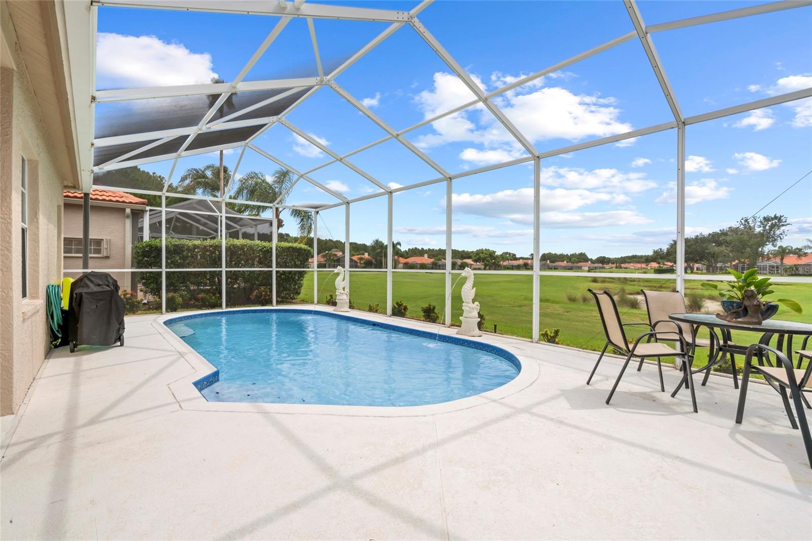 Welcome to your dream home in Crescent Oaks Country Club, where luxury living blends seamlessly with stunning golf course views. This pristine 3-bedroom, 2-bathroom home is nestled on the 16th hole, offering breathtaking vistas and a peaceful atmosphere, all while being safely located outside of a flood zone—no flood insurance required! Inside, you’ll find an open and inviting floor plan, perfect for both entertaining and everyday living. The spacious living room features high ceilings and large windows that fill the space with natural light. The gourmet kitchen is a chef’s delight, boasting granite countertops, stainless steel appliances, and ample cabinetry for all your culinary needs. The master suite offers a true retreat with a walk-in closet and spa-like en-suite bathroom featuring dual vanities, a soaking tub, and a separate shower. Two additional bedrooms are generously sized, providing comfortable space for family or guests. Outside, your private backyard oasis awaits, complete with a sparkling pool for those hot Florida days and a spacious patio perfect for outdoor dining and relaxation. Lush landscaping and mature trees provide the perfect backdrop, making this home a true escape. Enjoy maintenance-free living, with the HOA covering irrigation, lawn and shrub care, and exterior painting, giving you more time to enjoy the country club lifestyle. The roof has been upgraded to durable, long-lasting concrete, and with a 2-car garage, you’ll have plenty of storage and convenience. Don’t miss the opportunity to own a slice of paradise on the golf course—without the worry of flood insurance (this property is high and dry) or exterior upkeep. Schedule your private showing today and experience the best of Florida living!