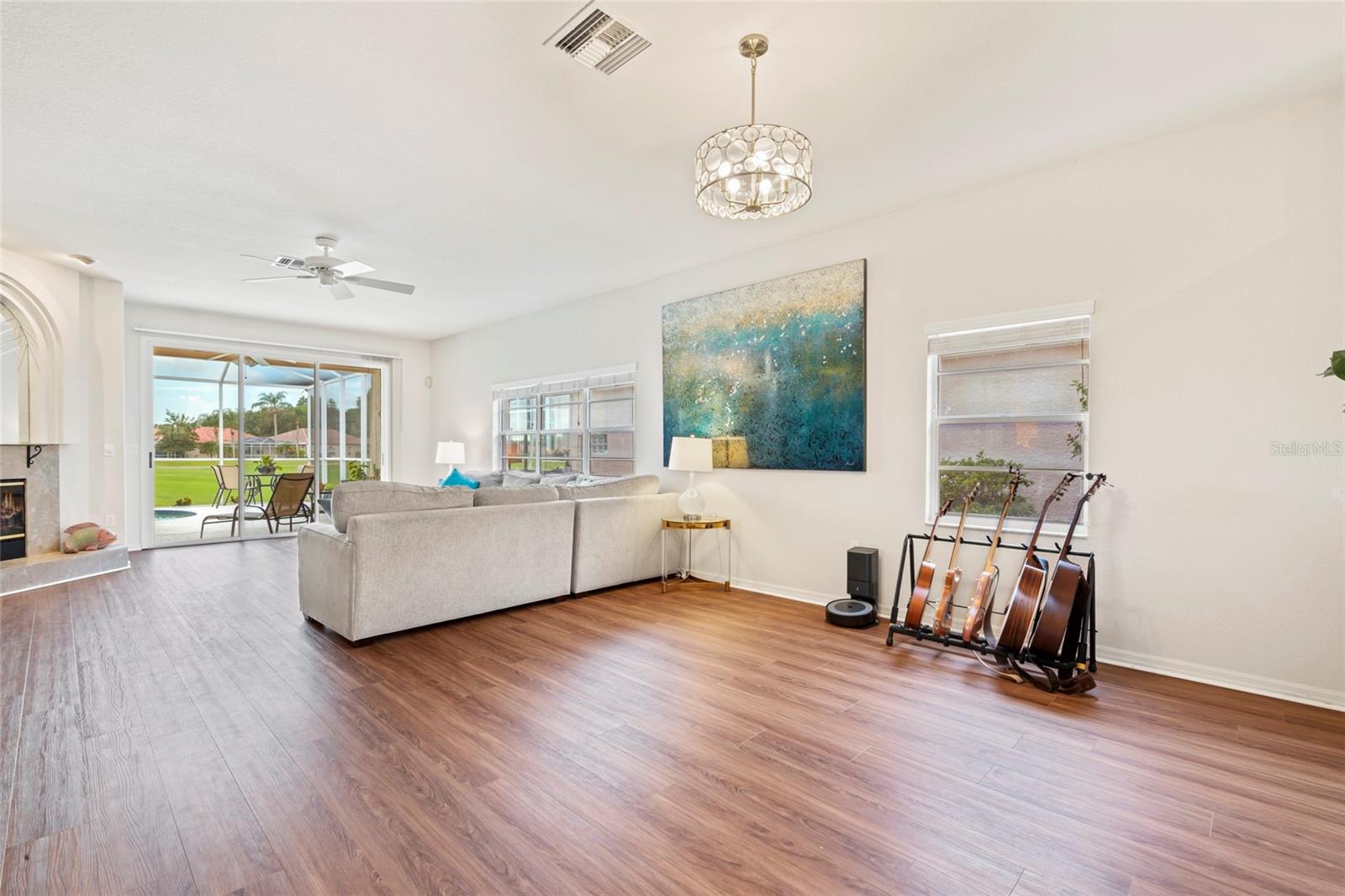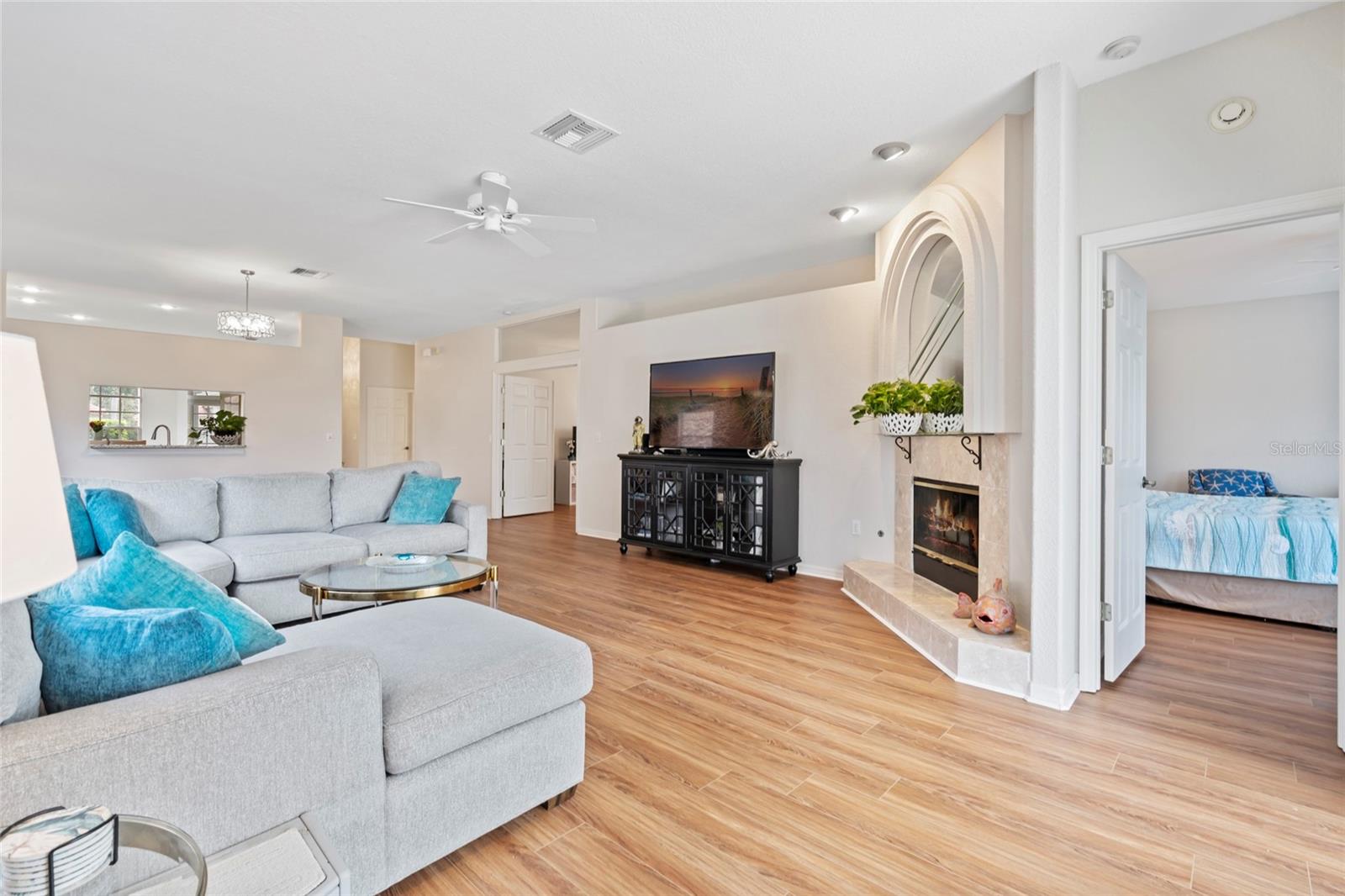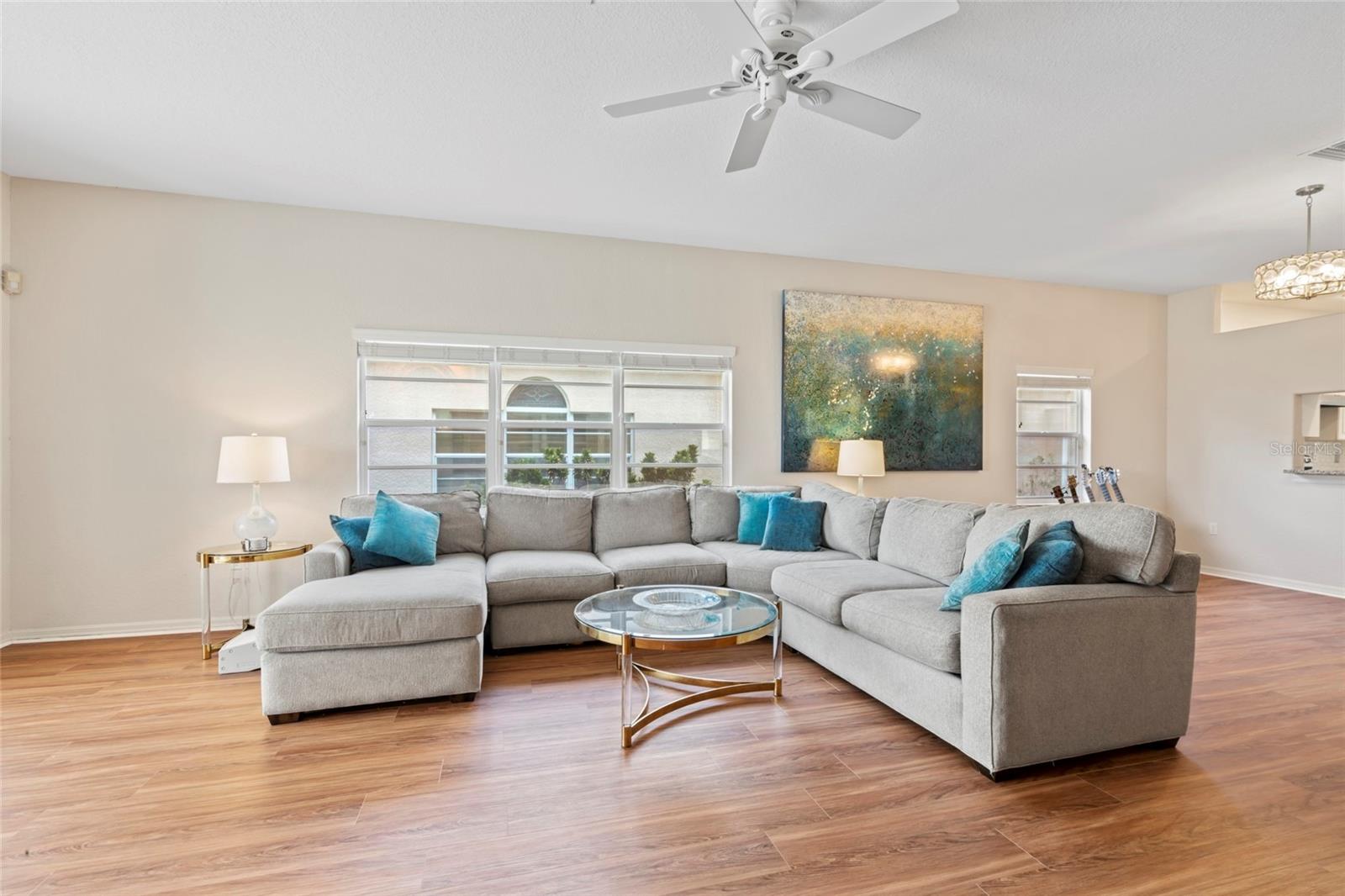 Welcome to your dream home in Crescent Oaks Country Club, where luxury living blends seamlessly with stunning golf course views. This pristine 3-bedroom, 2-bathroom home is nestled on the 16th hole, offering breathtaking vistas and a peaceful atmosphere, all while being safely located outside of a flood zone—no flood insurance required! Inside, you’ll find an open and inviting floor plan, perfect for both entertaining and everyday living. The spacious living room features high ceilings and large windows that fill the space with natural light. The gourmet kitchen is a chef’s delight, boasting granite countertops, stainless steel appliances, and ample cabinetry for all your culinary needs. The master suite offers a true retreat with a walk-in closet and spa-like en-suite bathroom featuring dual vanities, a soaking tub, and a separate shower. Two additional bedrooms are generously sized, providing comfortable space for family or guests. Outside, your private backyard oasis awaits, complete with a sparkling pool for those hot Florida days and a spacious patio perfect for outdoor dining and relaxation. Lush landscaping and mature trees provide the perfect backdrop, making this home a true escape. Enjoy maintenance-free living, with the HOA covering irrigation, lawn and shrub care, and exterior painting, giving you more time to enjoy the country club lifestyle. The roof has been upgraded to durable, long-lasting concrete, and with a 2-car garage, you’ll have plenty of storage and convenience. Don’t miss the opportunity to own a slice of paradise on the golf course—without the worry of flood insurance (this property is high and dry) or exterior upkeep. Schedule your private showing today and experience the best of Florida living!
