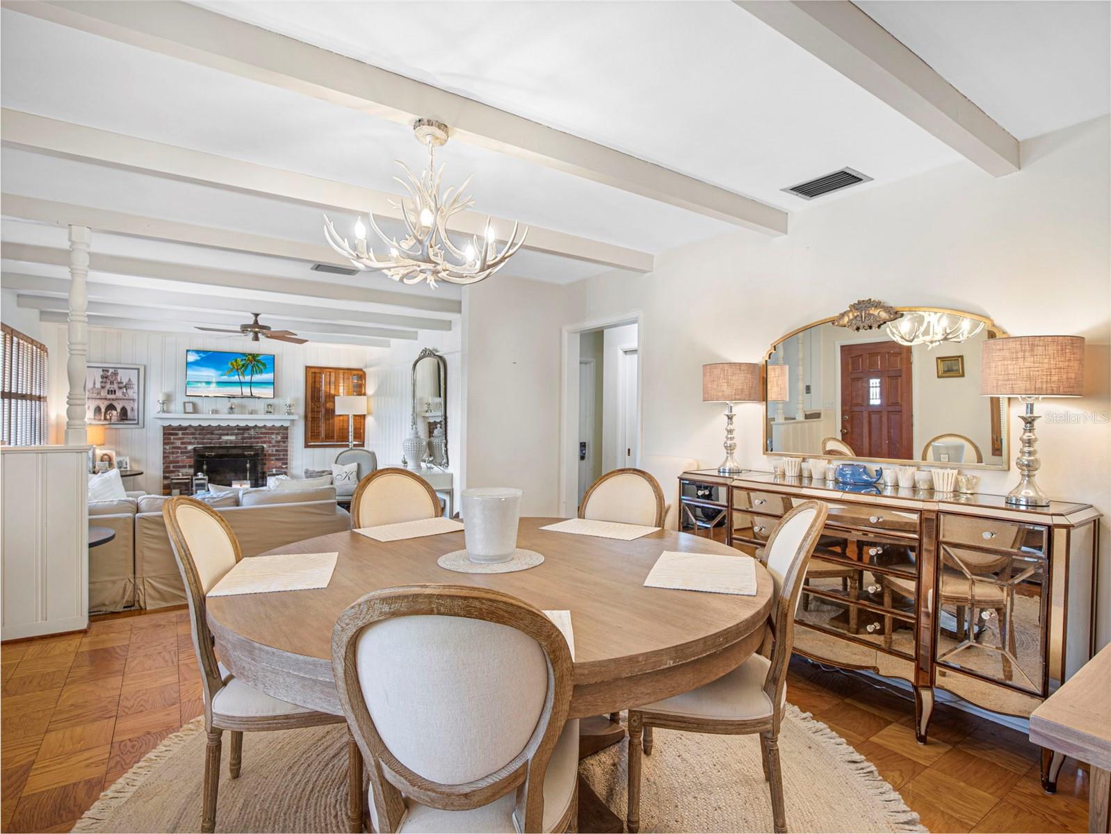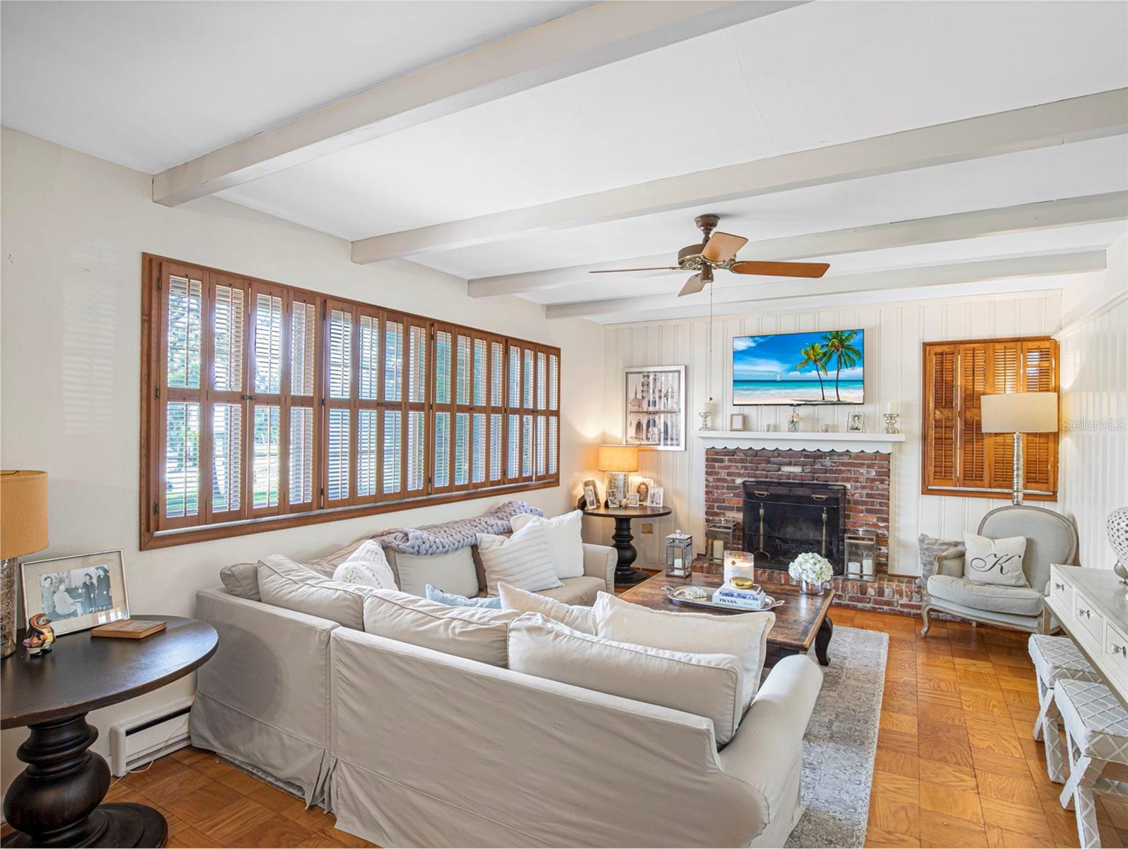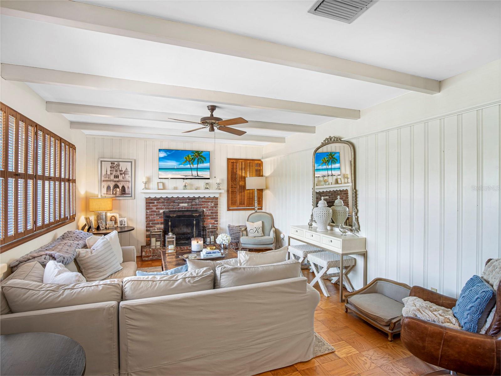 LOCATION LOCATION LOCATION. Pride of ownership shows in this incredibly well maintained Ranch style home, which sits on a double lot with plenty of yard for that backyard oasis you have been dreaming of. The home is 1805 square feet and has 3 bedrooms, 2 bathrooms, and an amazingly historic feel. Once you step inside the Dining Room it opens to the sunken Living Room with a wood-burning fireplace and wood beam ceilings. There are hardwood parquet floors throughout the home and the oversized carport has a large attached utility room. The owners got a certificate to remove the property from a Flood zone so no flood insurance needed! Perfectly located close to schools, public shopping, the famous Sponge Docks, Downtown Tarpon, and two separate beaches.