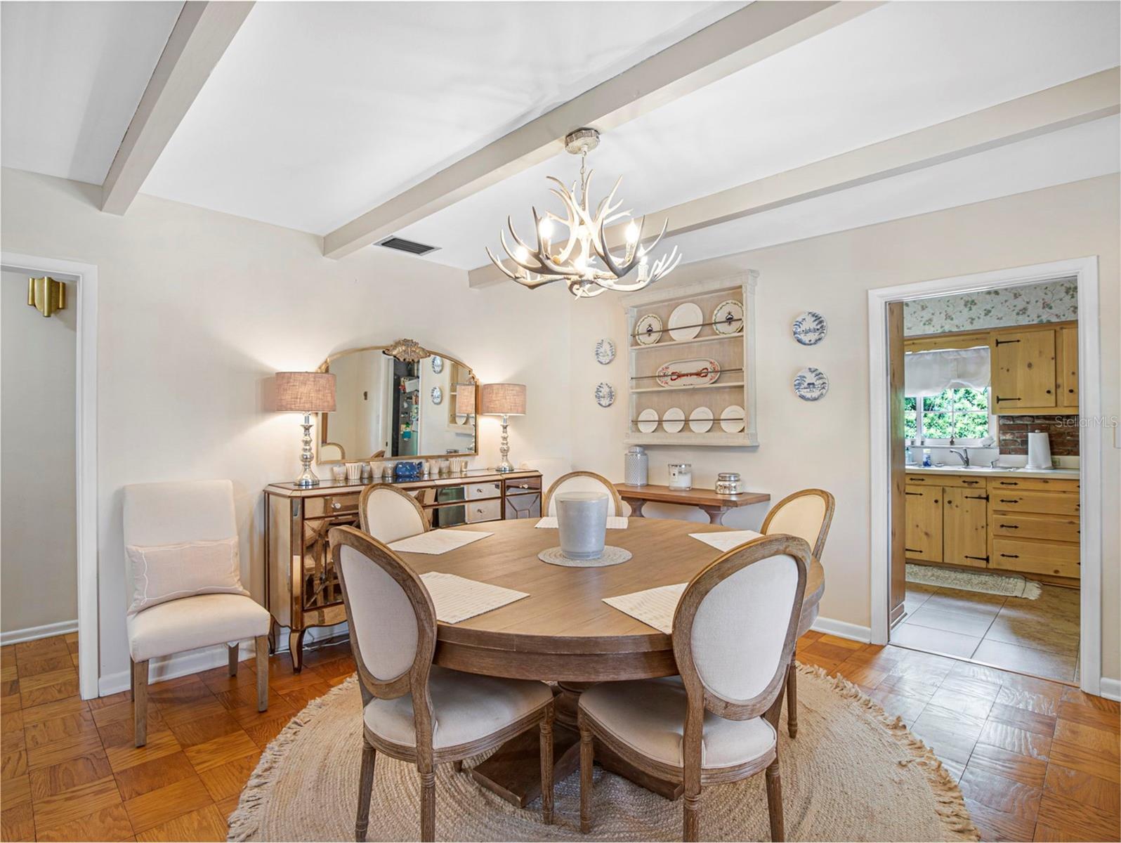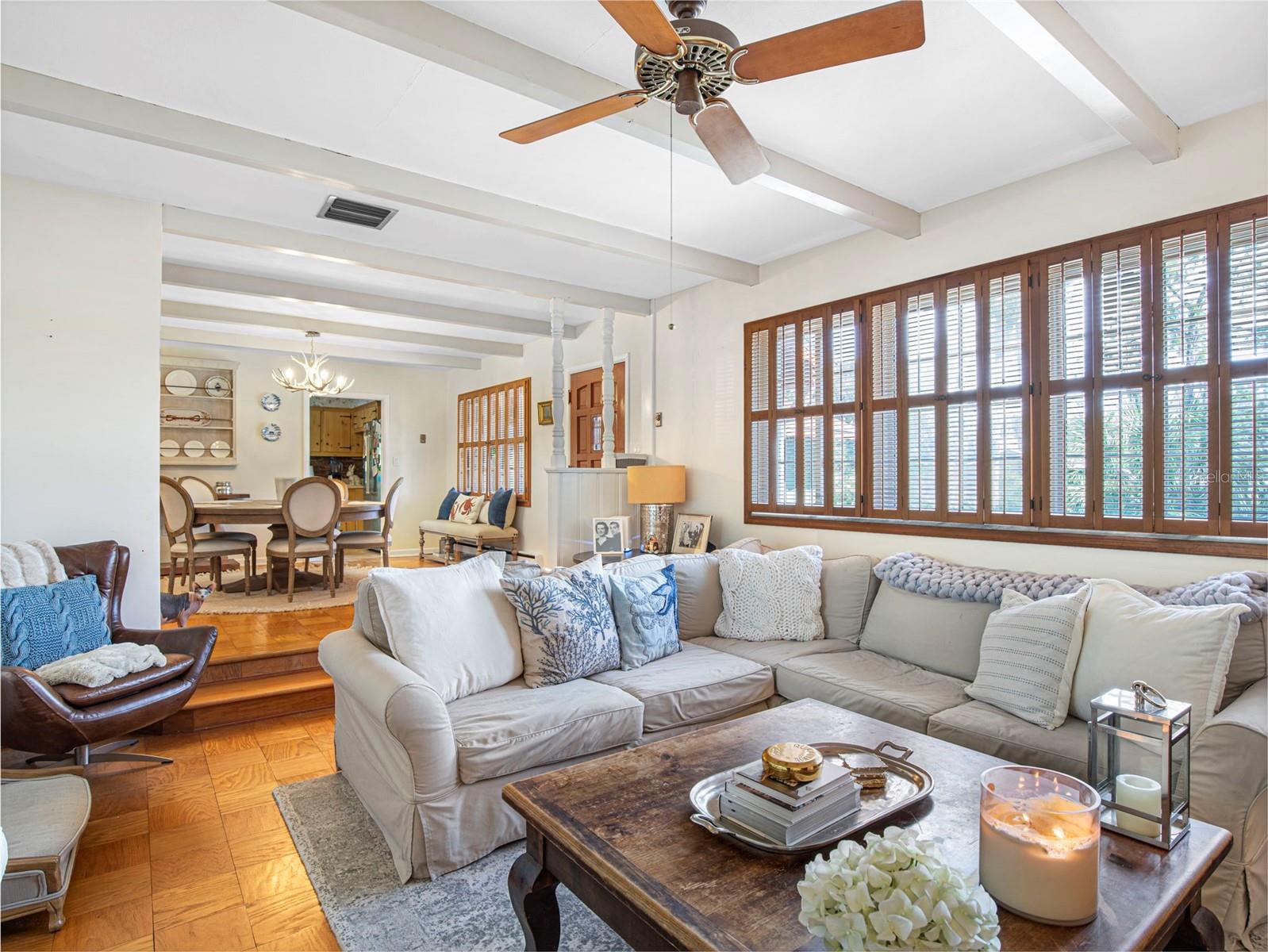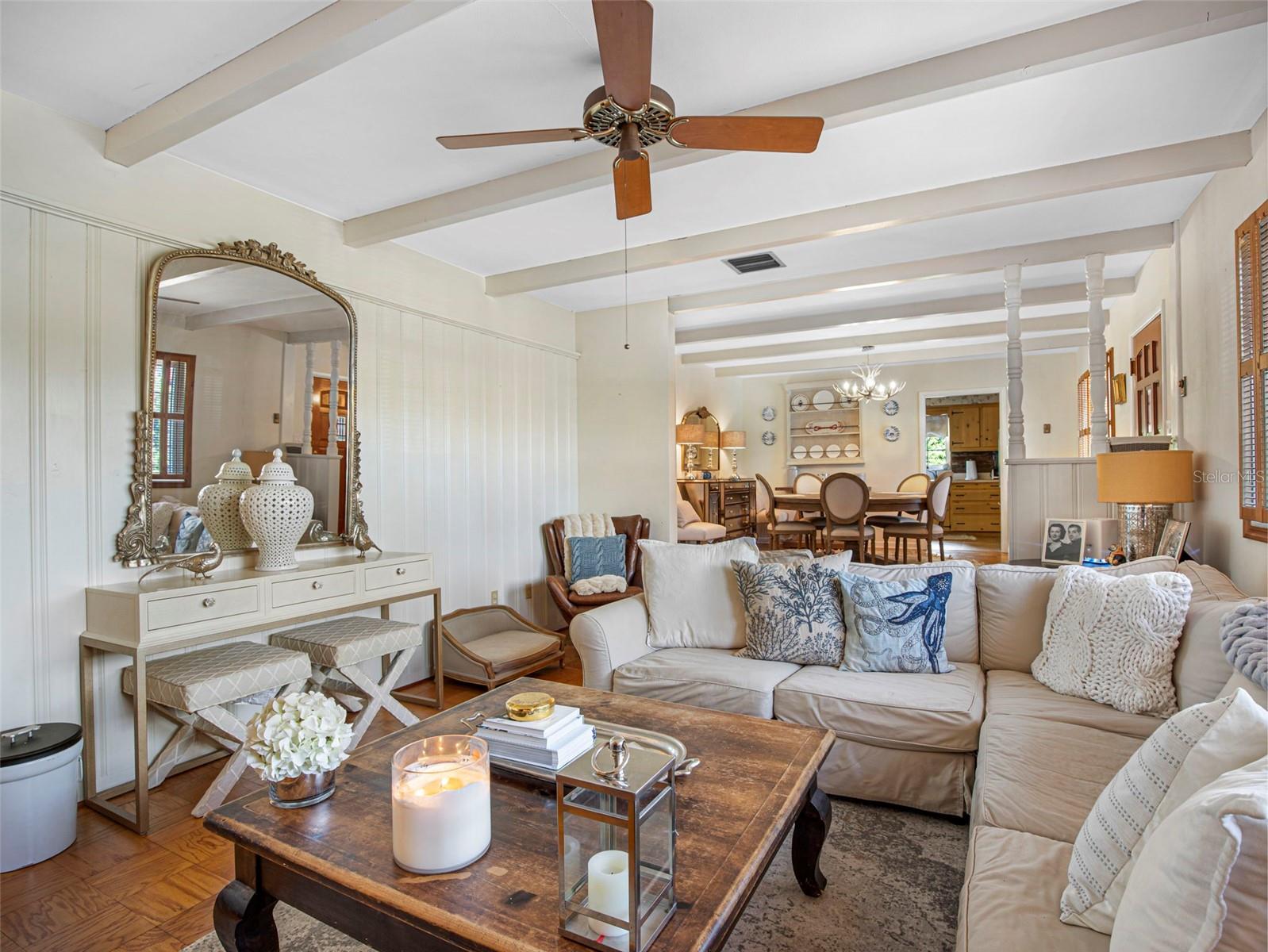 LOCATION LOCATION LOCATION. Pride of ownership shows in this incredibly well maintained Ranch style home, which sits on a double lot with plenty of yard for that backyard oasis you have been dreaming of. The home is 1805 square feet and has 3 bedrooms, 2 bathrooms, and an amazingly historic feel. Once you step inside the Dining Room it opens to the sunken Living Room with a wood-burning fireplace and wood beam ceilings. There are hardwood parquet floors throughout the home and the oversized carport has a large attached utility room. The owners got a certificate to remove the property from a Flood zone so no flood insurance needed! Perfectly located close to schools, public shopping, the famous Sponge Docks, Downtown Tarpon, and two separate beaches.