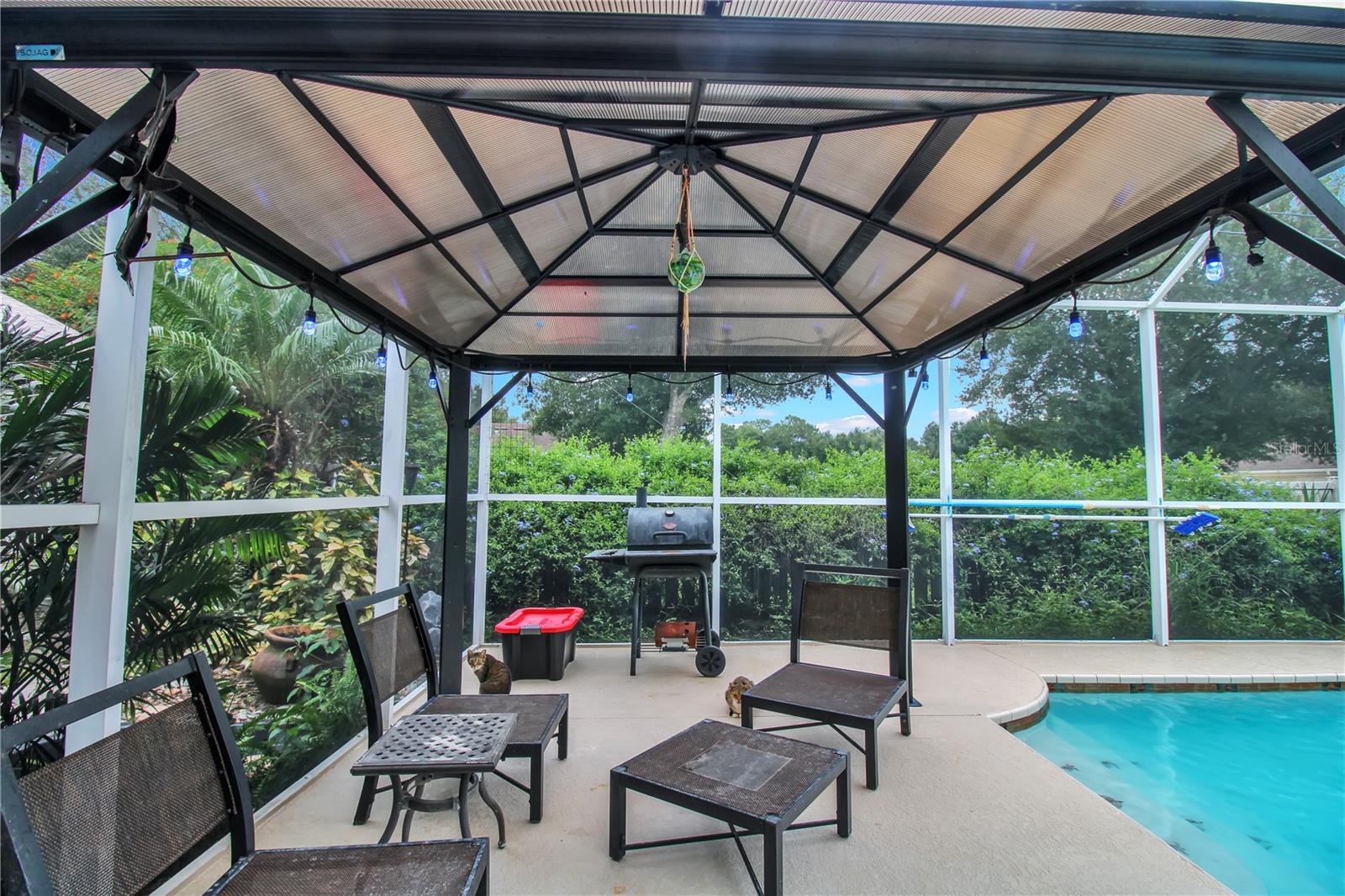 Motivated sellers! BRAND NEW FLOORING IN LIVING ROOM AND DINING ROOM! Tucked away in the peaceful community of Misty Woods, within the highly desirable East Lake corridor, this 4 bed, 2 bath, 2,124 sq ft POOL home had NO FLOODING/ NO DAMAGE DURING HURRICANES and located in FLOOD ZONE X, Evacuation Zone D. Upgrades include a new roof (2022), HVAC system (2017), tankless propane water heater (2019), pool resurfacing (2017), and water softener (2019). A former Chapman Model Home, the kitchen shines with granite countertops, stainless steel appliances (including a 5 burner gas stove) and Luxury Vinyl Plank flooring, while the beautiful paver driveway and walkway add curb appeal to this home. Surrounded by lush nature and just moments from the Brooker Creek Preserve, this charming residence features 3 bedrooms on the main floor and an expansive UPSTAIRS BONUS ROOM that can serve as a 4th bedroom. Windows are all adorned with timeless Plantation Shutters throughout the home and the upstairs window has a view of the pond down the street. With 2,124 square feet of living space, the home’s updated bathrooms are a standout, featuring sleek granite countertops and slate tile showers. A cozy wood-burning FIREPLACE adds warmth and character to the inviting living area. The outdoor space feels like your own private sanctuary, with no rear neighbors and a FULLY FENCED YARD that hosts an in-ground pool, a six-person hot tub, a tranquil koi pond with a fountain, and two relaxing gazebos. The covered screened lanai is perfect for year-round enjoyment. The garage is thoughtfully designed with an automatic privacy screen and Gladiator tile, transforming it into a functional workshop when needed. This home boasts a prime location, offering exceptional convenience—just 30 minutes from Tampa International Airport and only 15 minutes from the breathtaking beaches and the renowned Tarpon Springs Sponge Docks. If you love outdoor adventures and recreation, you’ll appreciate being near the Upper Pinellas Trail, Brooker Creek Preserve, Lake Tarpon, East Lake Sports Complex, the John Geigle YMCA, and several local golf courses. Whether you're commuting, exploring, or simply enjoying a day of leisure, this home serves as the perfect launching point. Enjoy the tranquility of nature with the comfort of modern amenities right at your fingertips. Don’t miss the chance to make this peaceful oasis your own—schedule your private showing today!