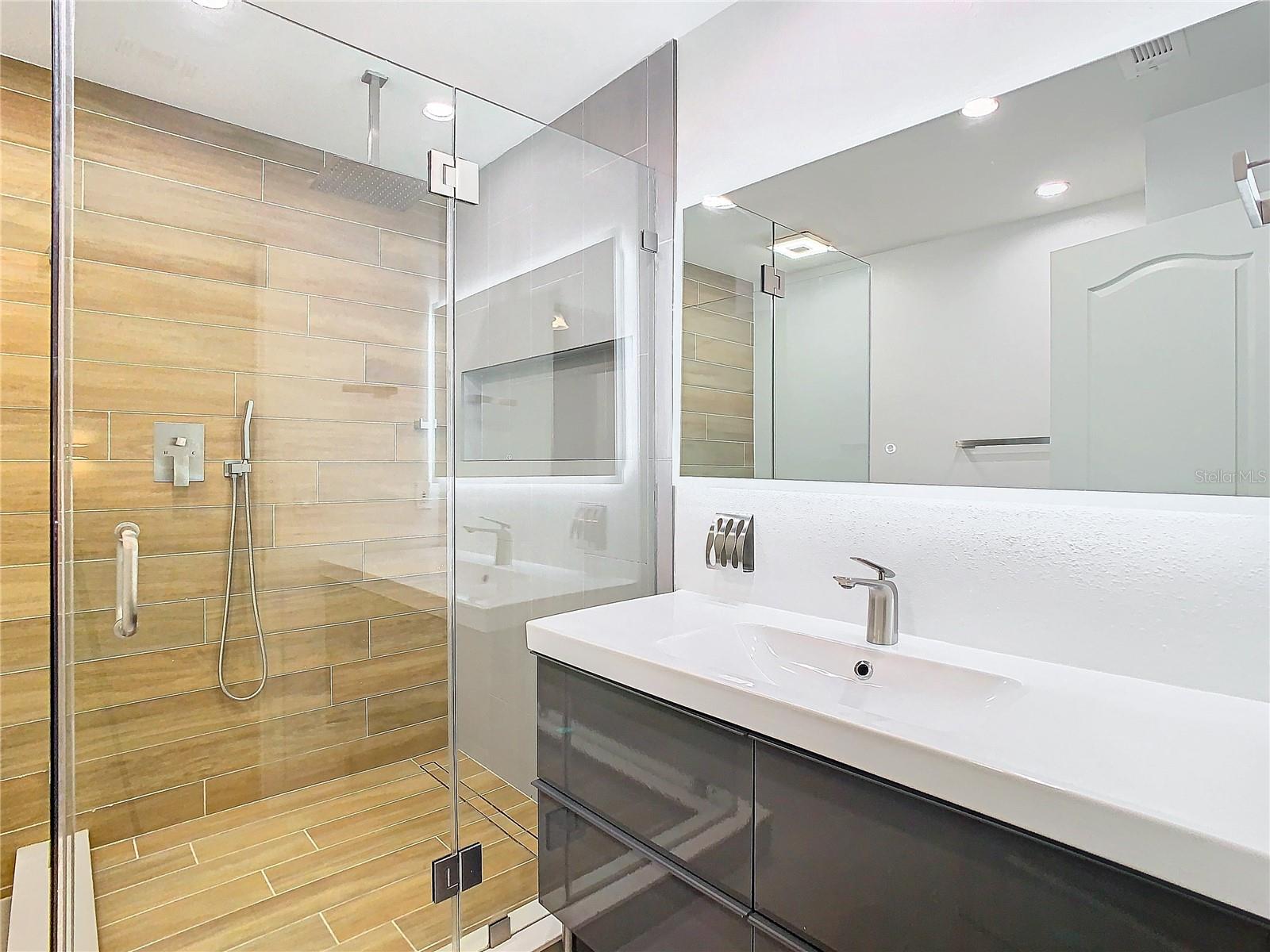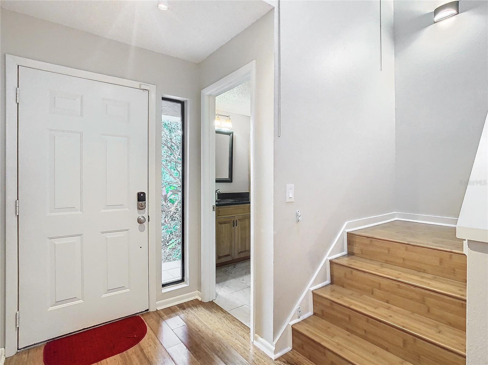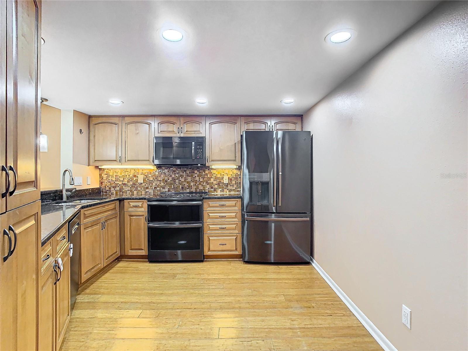 Come check out this amazing gem in Whispering Woods, Tarpon Springs! This updated 3-bedroom, 2.5-bathroom townhome is a total standout with its modern flair and stylish upgrades. As you enter into the home you find a extended foyer with a handy guest ½ bathroom. The first level boasts a bright, open floor plan with a spacious living and dining area featuring high ceilings and lots of recessed lighting. The kitchen is a dream, complete with ample wood cabinets, granite countertops, a trendy backsplash, and a breakfast bar that overlooks the living and dining spaces. Slide open the retractable sliding glass doors from the living room to a cozy screened lanai with storage closet, and step out onto the charming brick patio surrounded by lush, mature trees Head upstairs to discover THREE BEDROOM and TWO FULL BATHROOM. The PRIMARY BEDROOM is a showstopper with vaulted ceilings, LIGHTED WALL CLOSET, and a stylish en suite featuring a modern vanity, a touch-sensor LED mirror, and a large glass-framed shower. Both the primary and second bedrooms open onto a screened balcony with views of the patio. The second bathroom also boasts a frameless shower door and a contemporary vanity with a touch-sensor LED mirror. **ADDITIONAL FEATURES include a NEW ROOF (2023), NEW LIGHT FIXTURES, 3 REMODELED BATHROOMS, SKYLIGHT, LOTS OF CAM/RECESSED LIGHTING IN LIVINGROOM & DININGROOM. This home offers both comfort and style in a fantastic location! *** Whispering Woods boasts a community pool, tennis courts and is just minutes from legendary Gulf Coast beaches, Fred Howard Park, St. Pete College and famous, quaint Tarpon Springs shopping, restaurants, entertainment, festivals, and more.