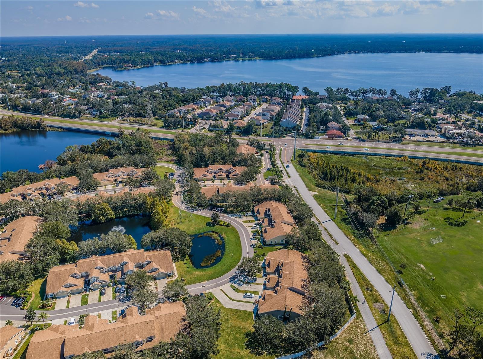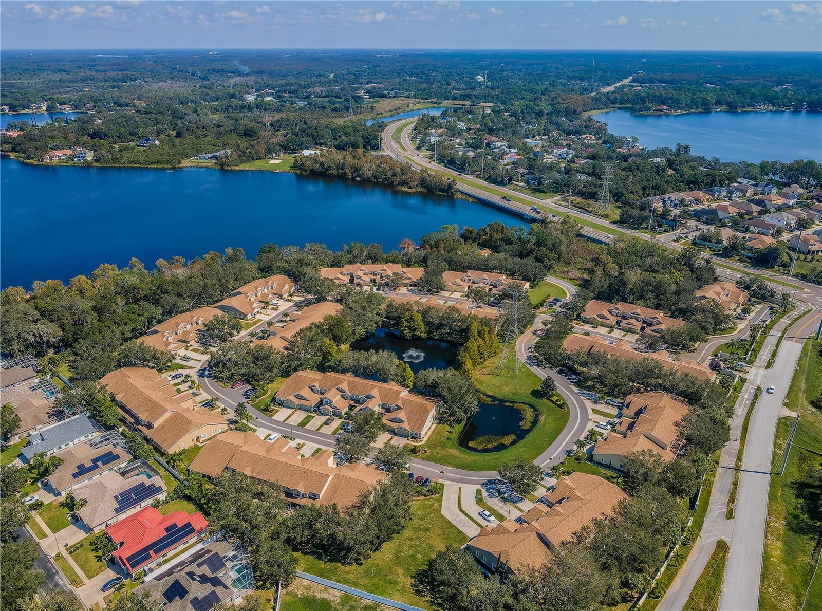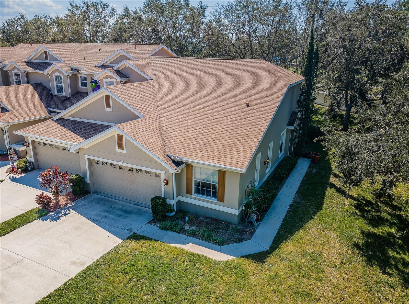 SELLER PROVIDING 1 YEAR HOME WARRANTY. LOW HOA FEES. NO FLOOD DAMAGE. Here is your chance to come relax in this 3 bedroom, 2 bath, 2-car garage corner unit villa. When you walk inside you will immediately notice the vaulted ceilings with permeating natural light, open floor plan, tile flooring throughout the unit with carpeting in the bedrooms. Inside laundry with washer and dryer. The kitchen flows seamlessly into the dining room and living room. Sliding glass doors lead out into the screened in lanai. There is a private door off the lanai allowing access to the master bedroom, which has an attached ensuite bathroom with a roomy walk-in closet, secured safe, stand-up shower and two separate vanities. This villa is in the gated community of Townhomes at North Lake in Tarpon Springs. Situated on Salt Lake and located near beaches, Downtown Tarpon Springs, Sponge Docks, shopping and restaurants. Take in lake views from the community dock or gather around the community pool. It is your time to relax and experience all these great features with the comfort of knowing the HOA fees cover future major expenses including roof (2018), exterior paint, cable, internet, Insurance and pool and ground maintenance. This unit sustained no damages from either of the hurricanes. SELLERS ARE OFFERING a 1 YEAR HOME WARRANTY at closing. Make your appointment today to view this beautiful home!!!