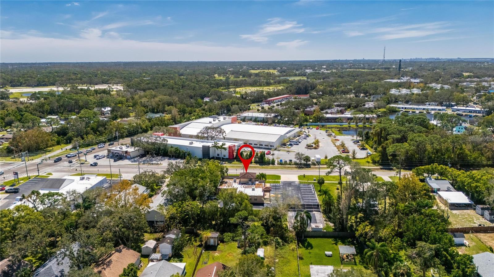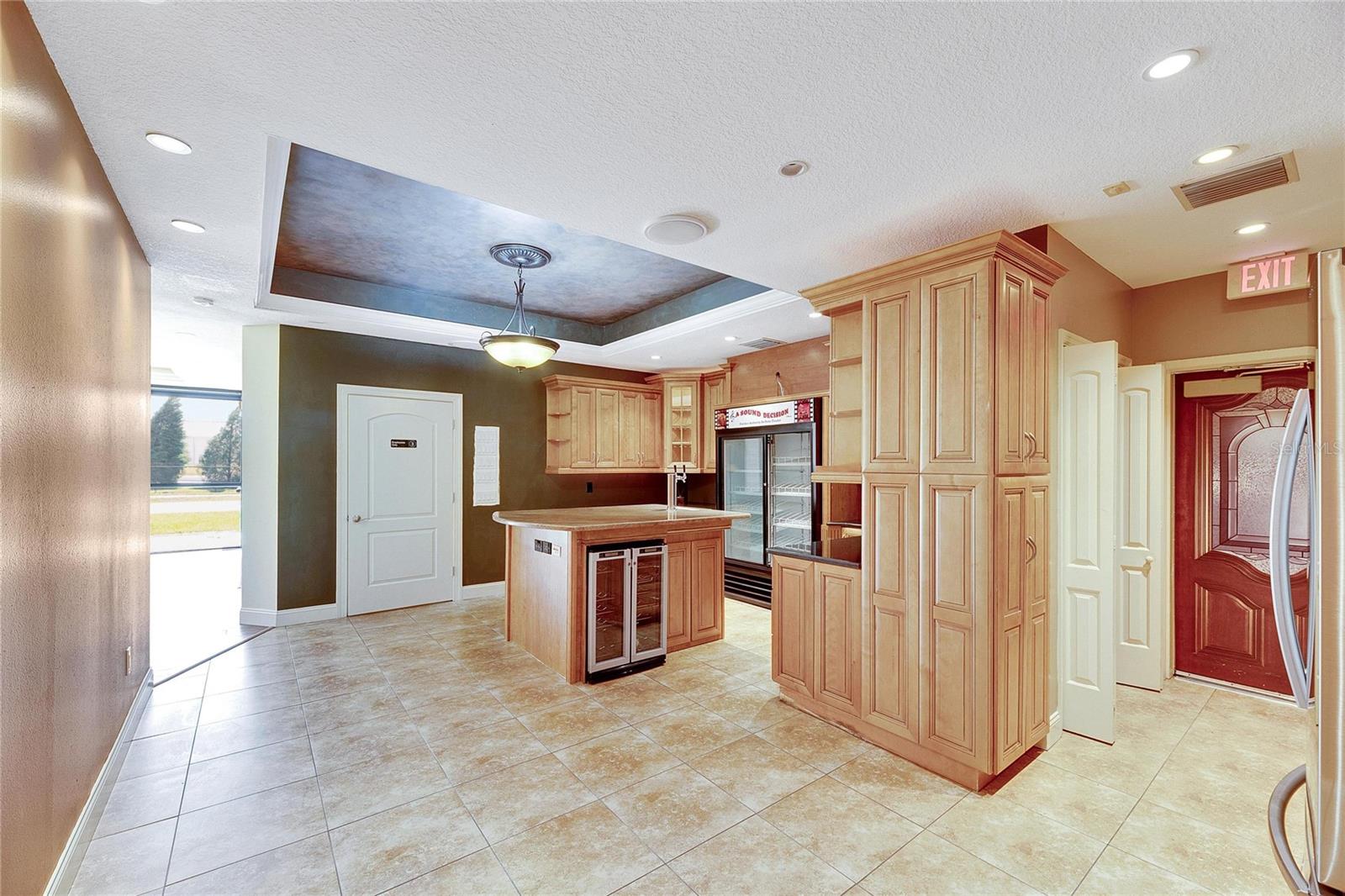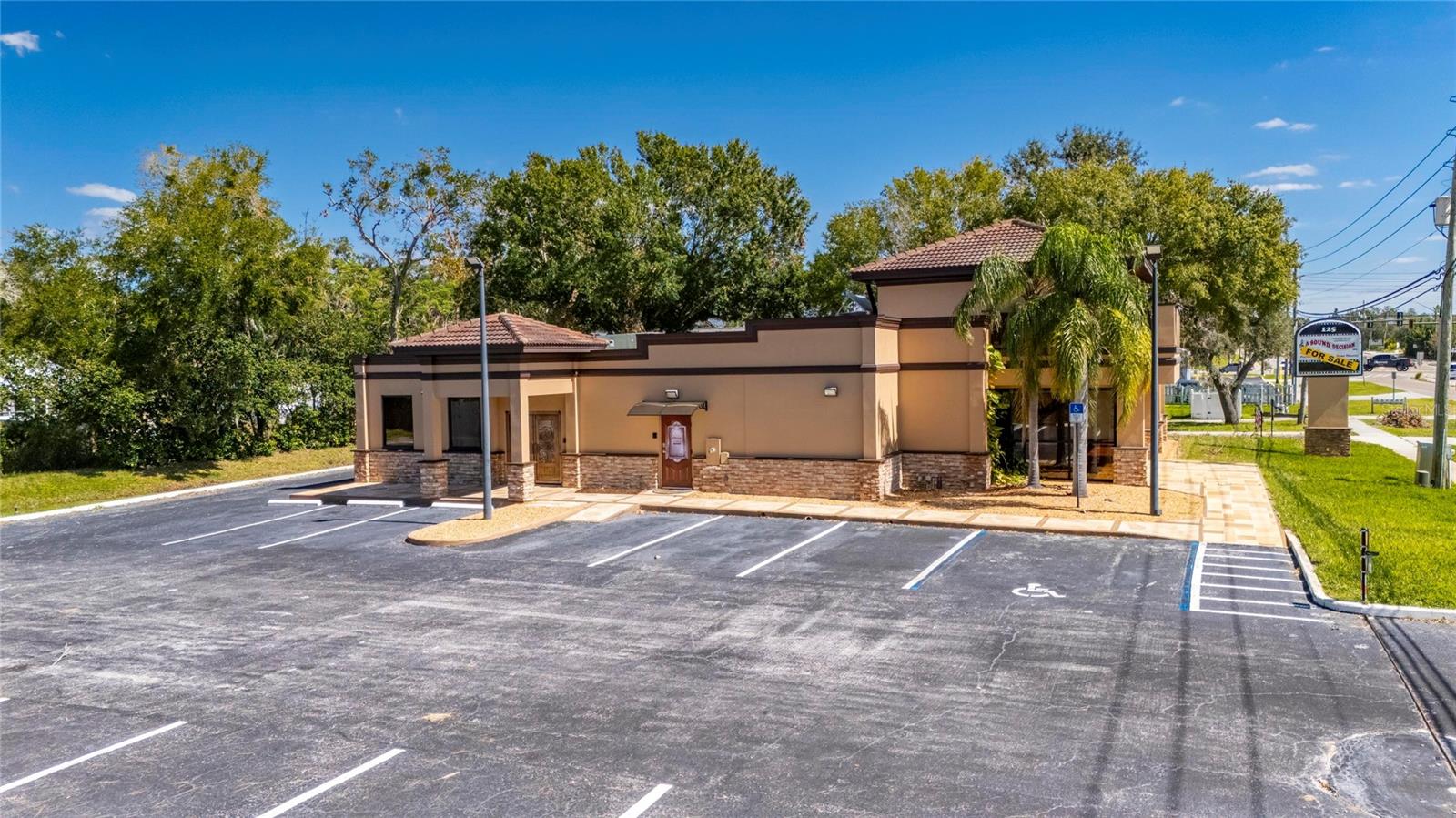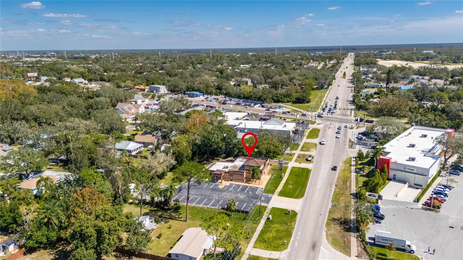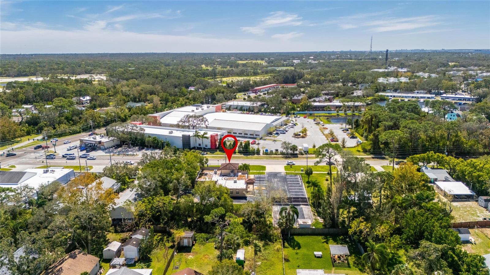 This prime commercial/mixed-use property, located in a high-traffic area with excellent exposure, offers endless business opportunities and retail activities. Built in 1984 as a bank on four small lots (42-45), creating a large 0.83-acre space (200' x 182'), the building has been fully renovated. The asphalt parking lot provides over 25 parking spaces. The building's exterior was recently painted, and the windows were serviced or replaced. Features include a waterfall at the front entrance and a west-side patio for employee breaks. The property is connected to public sewer, water, and electricity, with well water used for irrigation. The building is divided into two separate workspaces. Ground Level Front Showroom Space: A kitchen/breakroom/dining area with ceramic tile floors, granite countertops, custom cabinets, a raised granite island, chandelier, and coffered ceilings with crown molding and ambient lighting. A reception area/entry features coffered ceilings, crown molding, ambient lighting, and a custom mural. The showroom and display area have an open floor plan, coffered ceilings, crown molding, wood flooring, and ambient lighting. The main/executive office offers space for multiple workstations, automated blinds/shades, and pre-wired connections for TVs and sound. A large walk-in vault provides space for additional workstations or secure storage. The extra-large presentation/training room features a 3-tiered layout, coffered ceilings, pre-wiring for a projector, seating for 25+, a 156" Cinecurve projection screen, and wood flooring. This room can be modified into an open floor plan by removing the tiered stage and adjoining wall. Another presentation/conference room, originally the bank's safety deposit box area, seats 12+. The 3-tiered stage can be removed to create a single-level floor, making it ideal for an executive office or secure storage area. Back Space: Separate entry/exit and alarm partition make this area perfect for rental income or secondary offices. Features include six separate offices with doors and windows, pre-wiring for internet/data, a large common area, a kitchenette, and a patio. Second Level: Accessed via an interior stairwell, the second level includes a large executive office or bedroom, a full bathroom, and a walk-in closet/laundry area. Storage/Service Shed: Contains irrigation control, ample storage cabinets, and well/pump controls for the irrigation system.