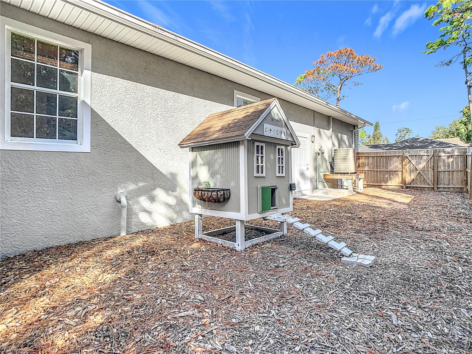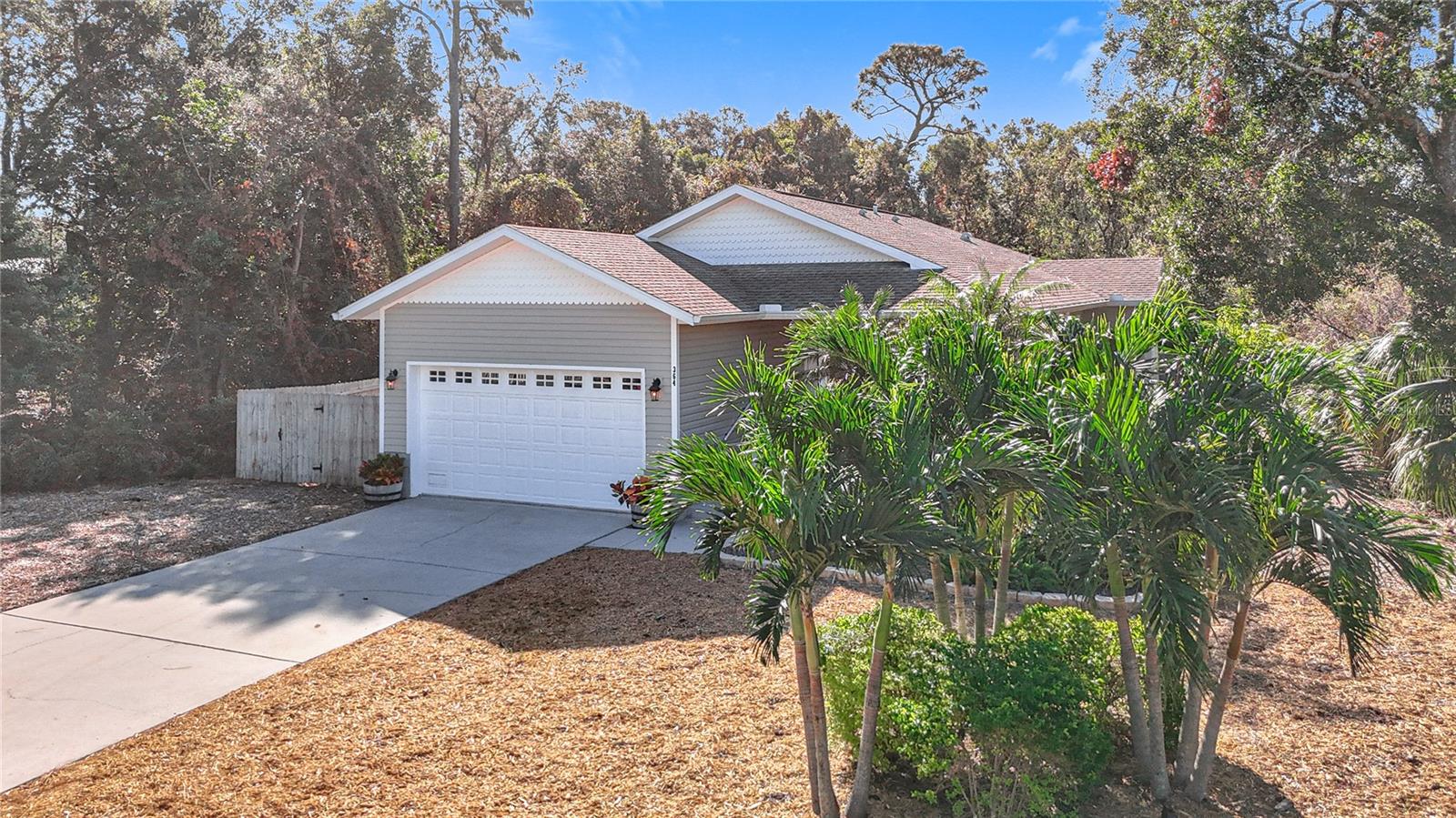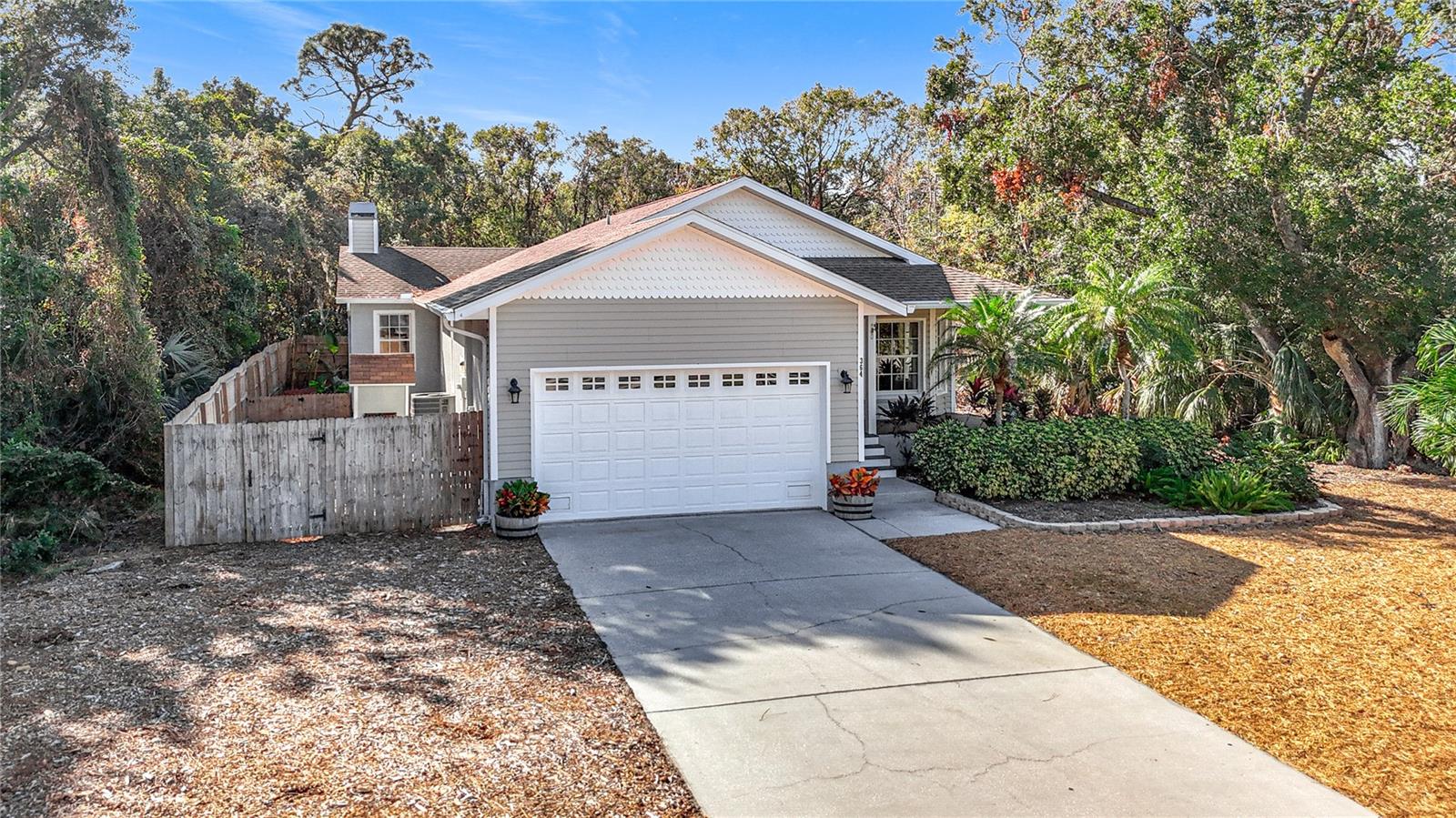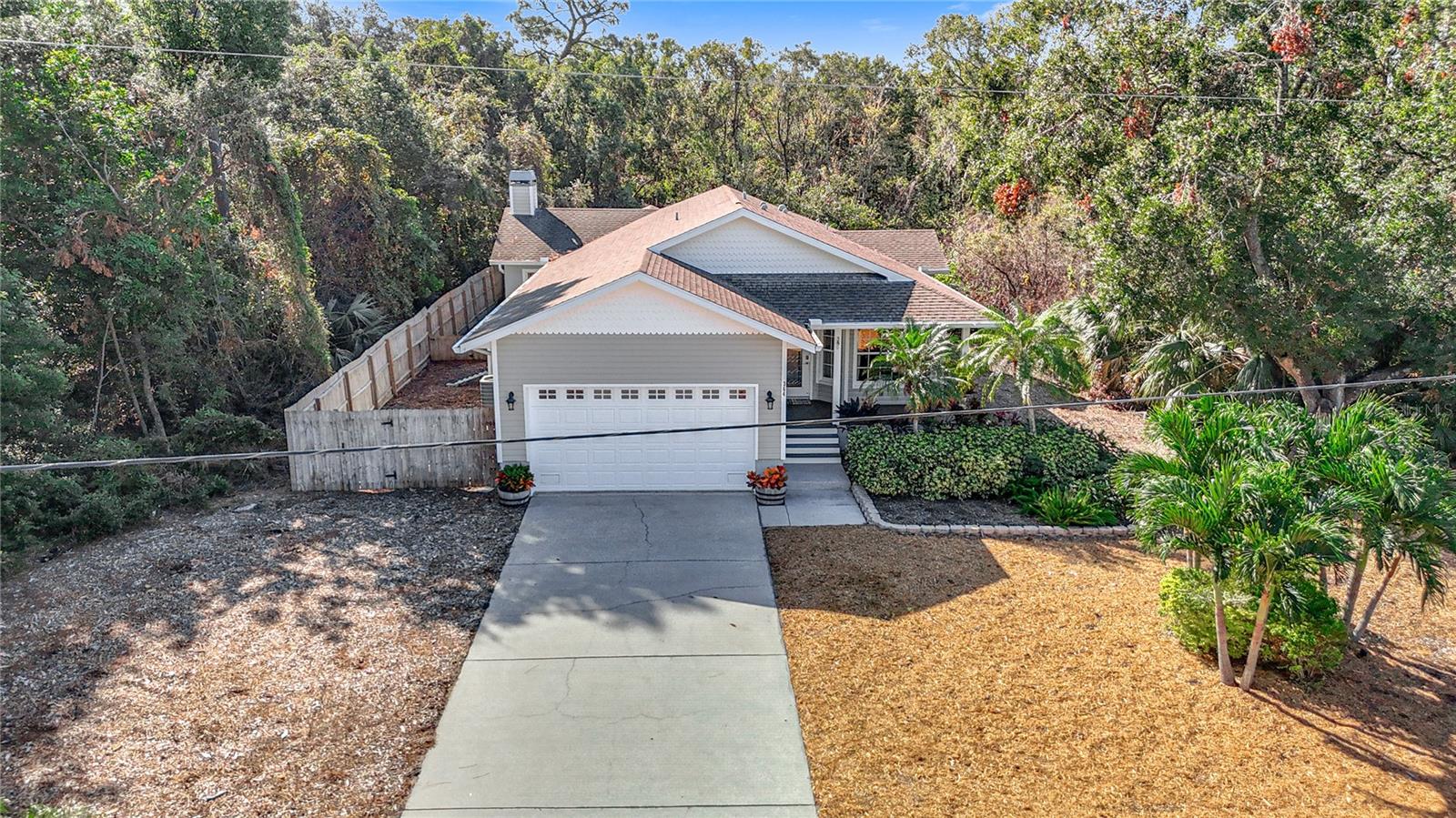 This Home has never been flooded. Charming Elevated Home Surrounded by Nature in Tarpon Springs - This solid block, elevated home offers the perfect blend of country serenity and urban convenience. Situated on a lot surrounded by lush greenery, it feels like a private retreat right in the heart of town. Step inside to discover defined high ceilings throughout an open-layout split floor plan that exudes spaciousness and style. The home boasts Hurricane Impact windows, an oversized two-car garage with high ceilings, and two porches, including a screened-in back porch for relaxing evenings. Natural light floods the home, enhanced by charming bay windows. The thoughtfully designed kitchen is a chef’s dream, featuring wood cabinetry, granite countertops, an oversized farmhouse sink, a separate island, pot hanger rack, and a breakfast bar. The cozy family room includes a wood-burning fireplace, a large mounted TV, and elegant window treatments, creating a welcoming space to unwind. The spacious master suite is a true haven, complete with window treatments, a walk-in closet with a wall safe, and an en suite bath featuring a Jacuzzi tub, a glass-enclosed shower, granite counters, and a linen closet. Step through the French doors into your private backyard oasis, where you’ll find mature palm trees, a lush lawn, a fire pit area, and a soothing running fountain. The fully fenced backyard also includes a custom-built chicken coop in the side yard for added charm. Ideally located near the Pinellas Trail, beaches, and downtown Tarpon Springs, this home offers the best of Florida living with its unique blend of comfort, style, and convenience.