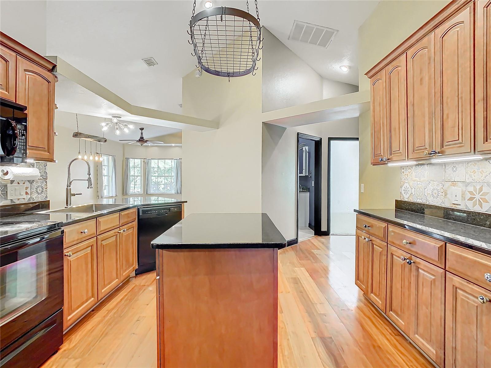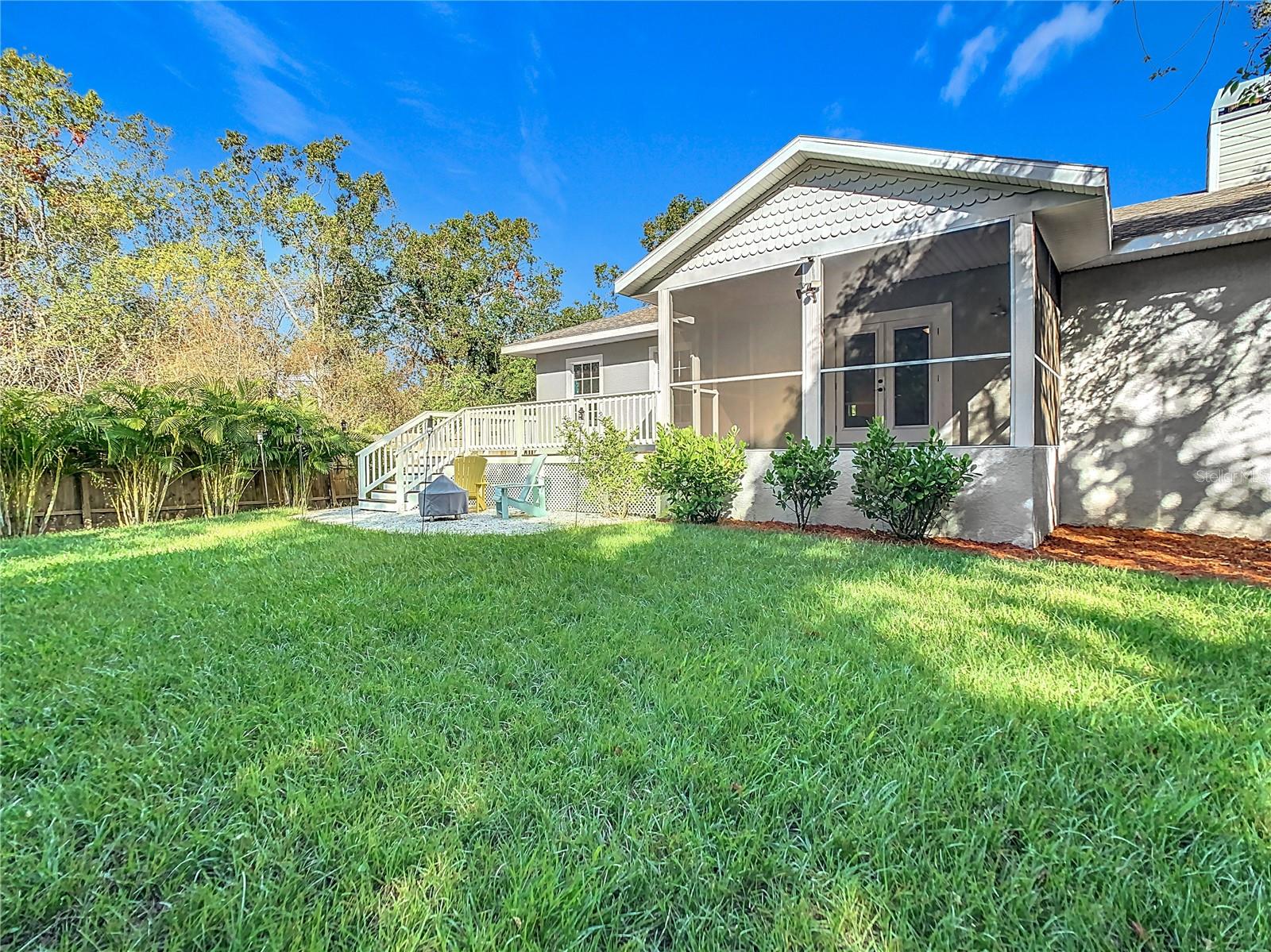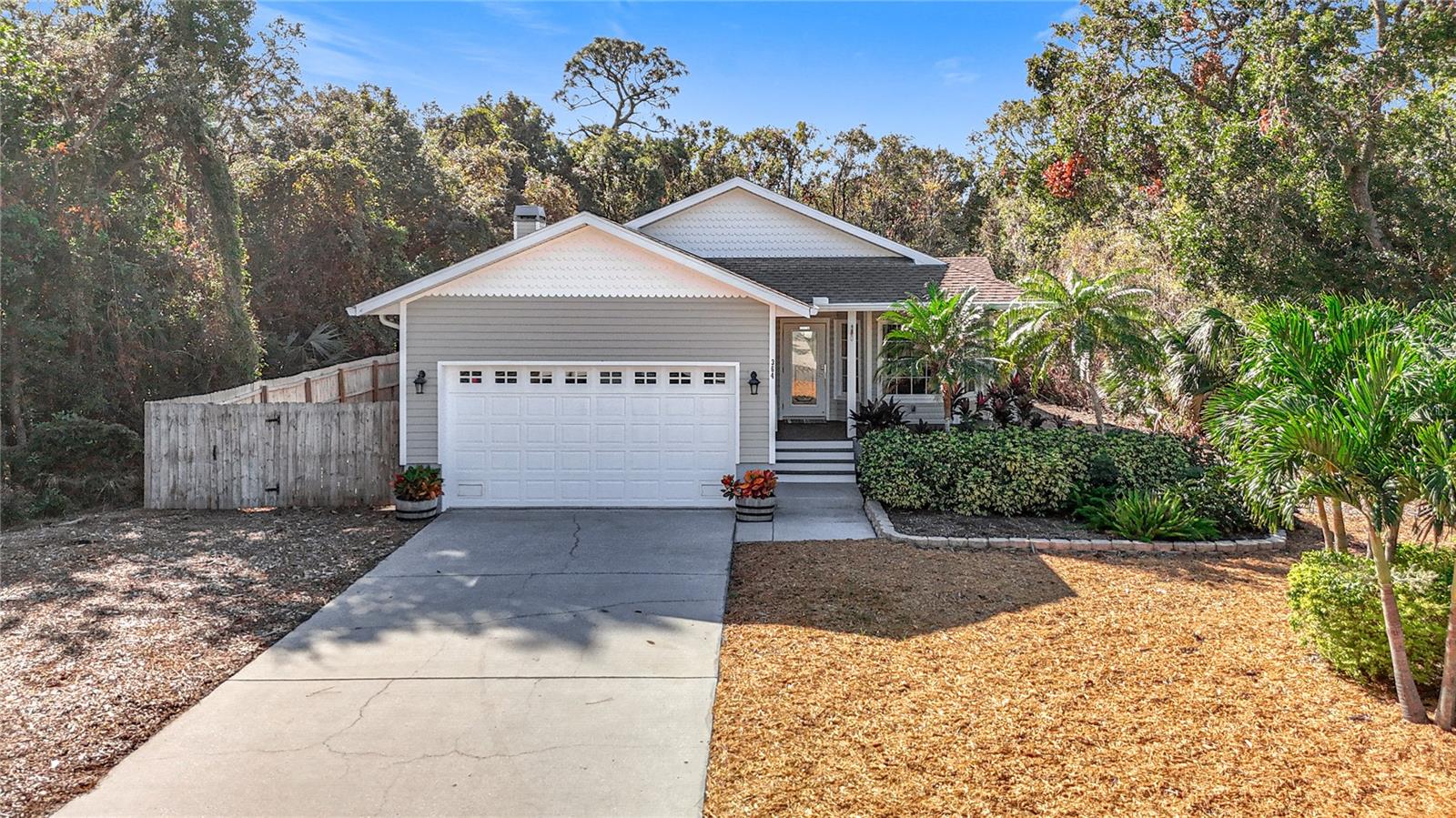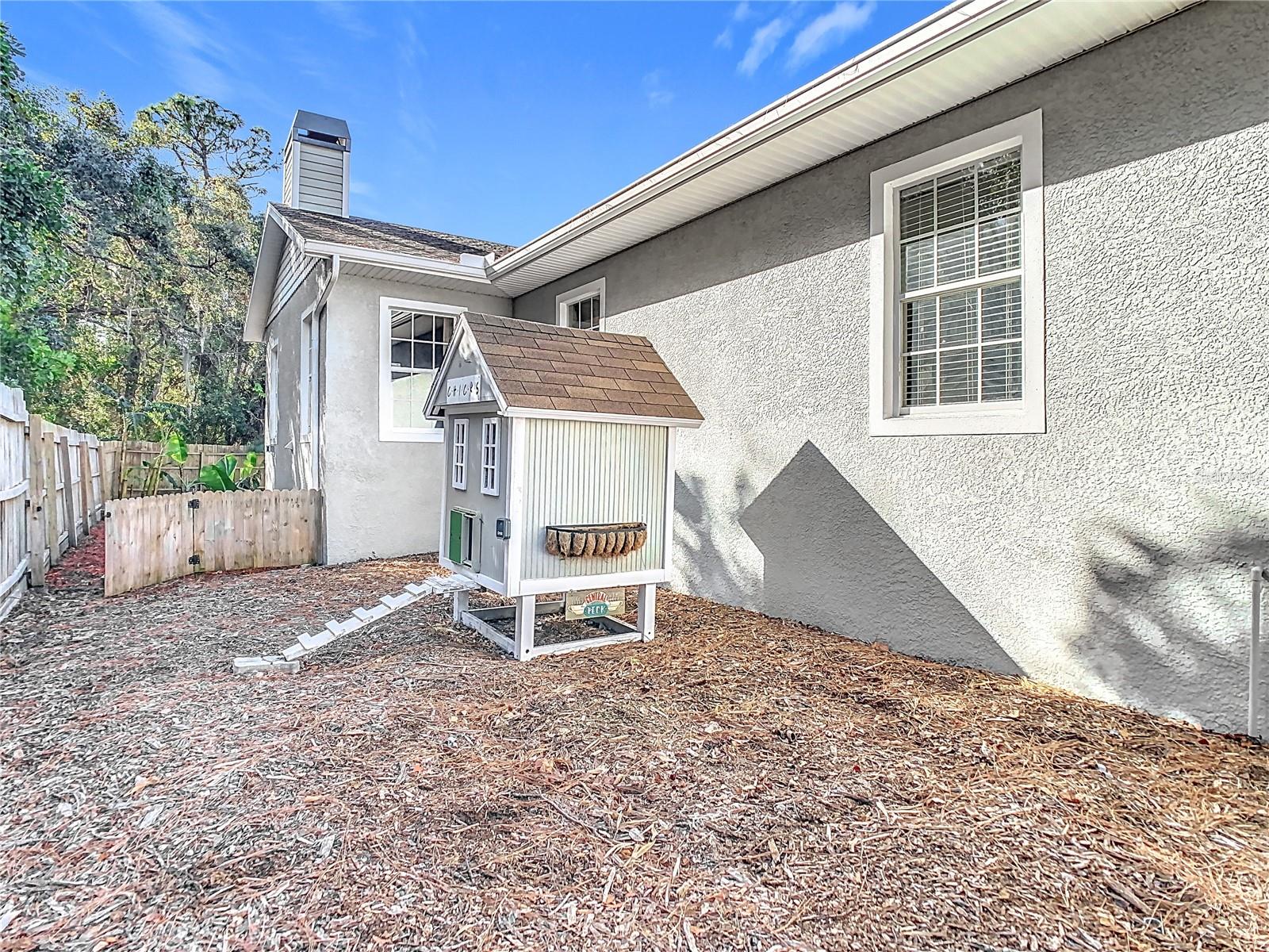 This Home has never been flooded. Charming Elevated Home Surrounded by Nature in Tarpon Springs - This solid block, elevated home offers the perfect blend of country serenity and urban convenience. Situated on a lot surrounded by lush greenery, it feels like a private retreat right in the heart of town. Step inside to discover defined high ceilings throughout an open-layout split floor plan that exudes spaciousness and style. The home boasts Hurricane Impact windows, an oversized two-car garage with high ceilings, and two porches, including a screened-in back porch for relaxing evenings. Natural light floods the home, enhanced by charming bay windows. The thoughtfully designed kitchen is a chef’s dream, featuring wood cabinetry, granite countertops, an oversized farmhouse sink, a separate island, pot hanger rack, and a breakfast bar. The cozy family room includes a wood-burning fireplace, a large mounted TV, and elegant window treatments, creating a welcoming space to unwind. The spacious master suite is a true haven, complete with window treatments, a walk-in closet with a wall safe, and an en suite bath featuring a Jacuzzi tub, a glass-enclosed shower, granite counters, and a linen closet. Step through the French doors into your private backyard oasis, where you’ll find mature palm trees, a lush lawn, a fire pit area, and a soothing running fountain. The fully fenced backyard also includes a custom-built chicken coop in the side yard for added charm. Ideally located near the Pinellas Trail, beaches, and downtown Tarpon Springs, this home offers the best of Florida living with its unique blend of comfort, style, and convenience.