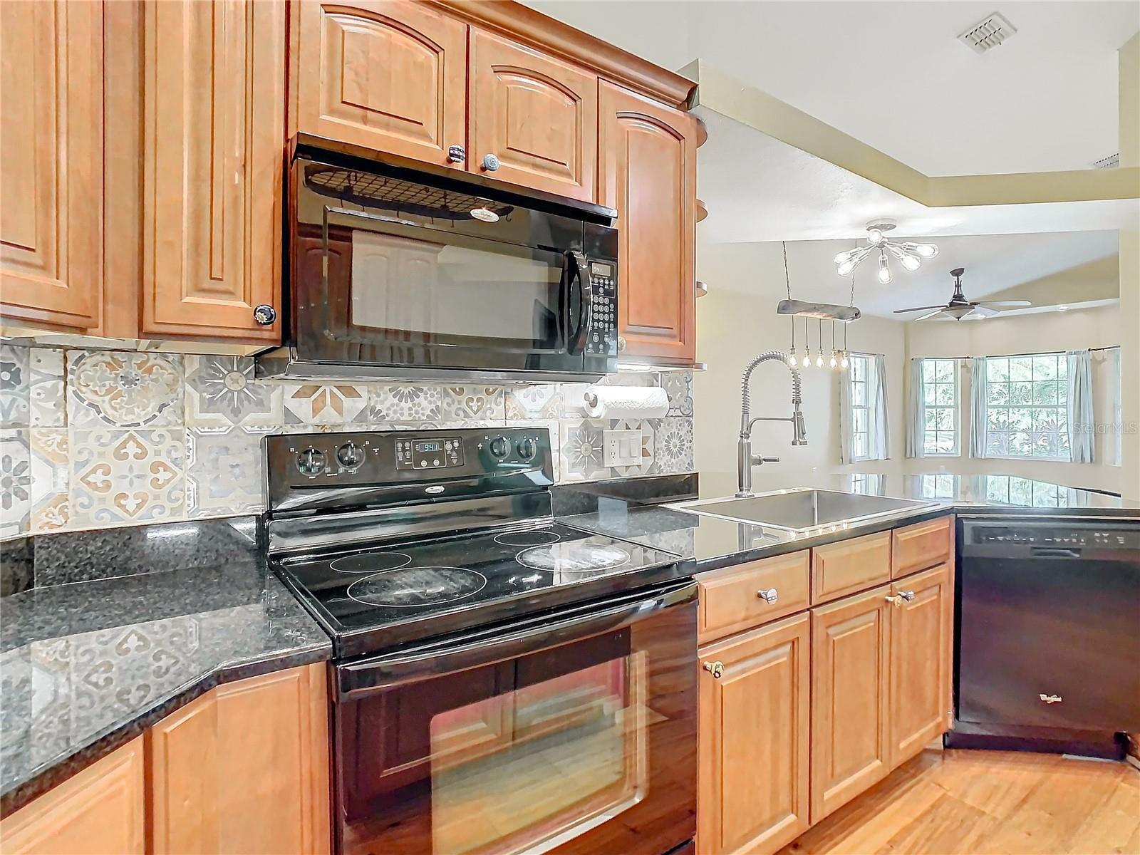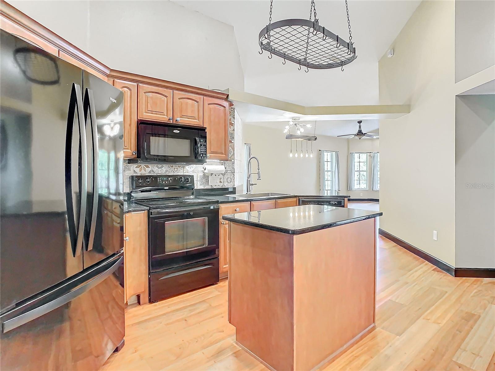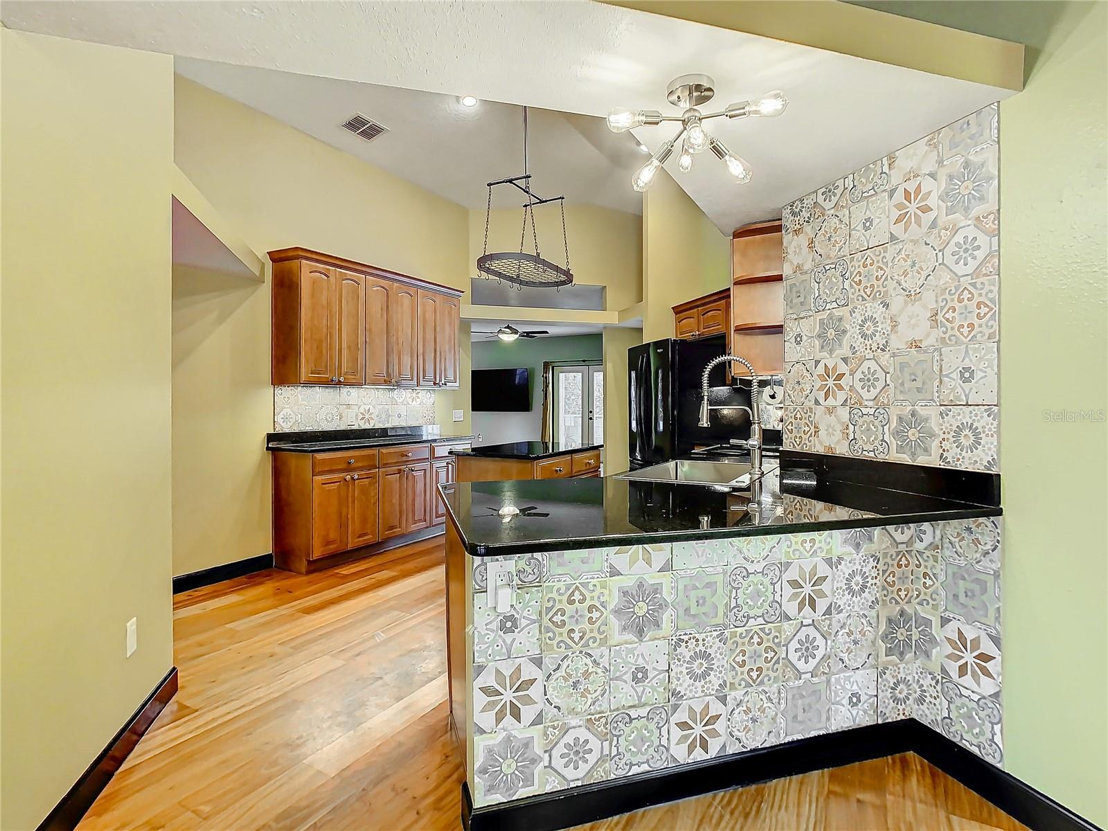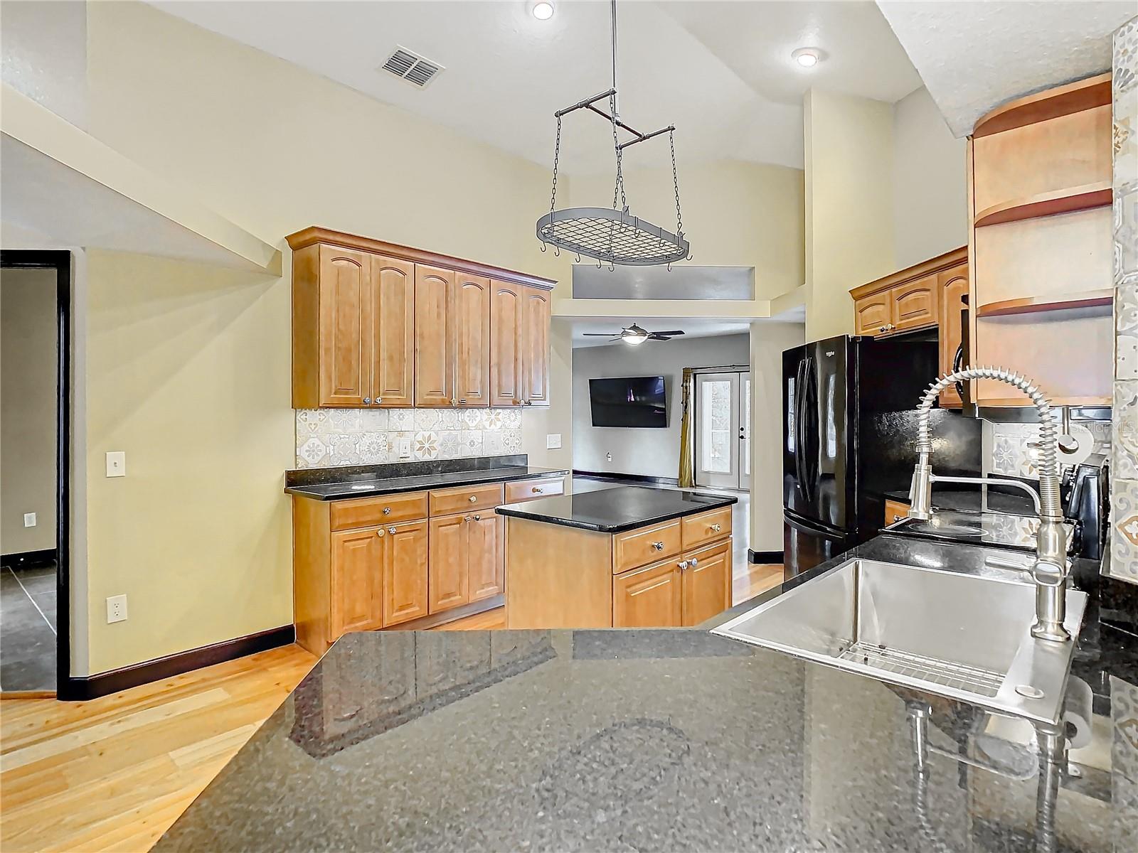 This Home has never been flooded. Charming Elevated Home Surrounded by Nature in Tarpon Springs - This solid block, elevated home offers the perfect blend of country serenity and urban convenience. Situated on a lot surrounded by lush greenery, it feels like a private retreat right in the heart of town. Step inside to discover defined high ceilings throughout an open-layout split floor plan that exudes spaciousness and style. The home boasts Hurricane Impact windows, an oversized two-car garage with high ceilings, and two porches, including a screened-in back porch for relaxing evenings. Natural light floods the home, enhanced by charming bay windows. The thoughtfully designed kitchen is a chef’s dream, featuring wood cabinetry, granite countertops, an oversized farmhouse sink, a separate island, pot hanger rack, and a breakfast bar. The cozy family room includes a wood-burning fireplace, a large mounted TV, and elegant window treatments, creating a welcoming space to unwind. The spacious master suite is a true haven, complete with window treatments, a walk-in closet with a wall safe, and an en suite bath featuring a Jacuzzi tub, a glass-enclosed shower, granite counters, and a linen closet. Step through the French doors into your private backyard oasis, where you’ll find mature palm trees, a lush lawn, a fire pit area, and a soothing running fountain. The fully fenced backyard also includes a custom-built chicken coop in the side yard for added charm. Ideally located near the Pinellas Trail, beaches, and downtown Tarpon Springs, this home offers the best of Florida living with its unique blend of comfort, style, and convenience.