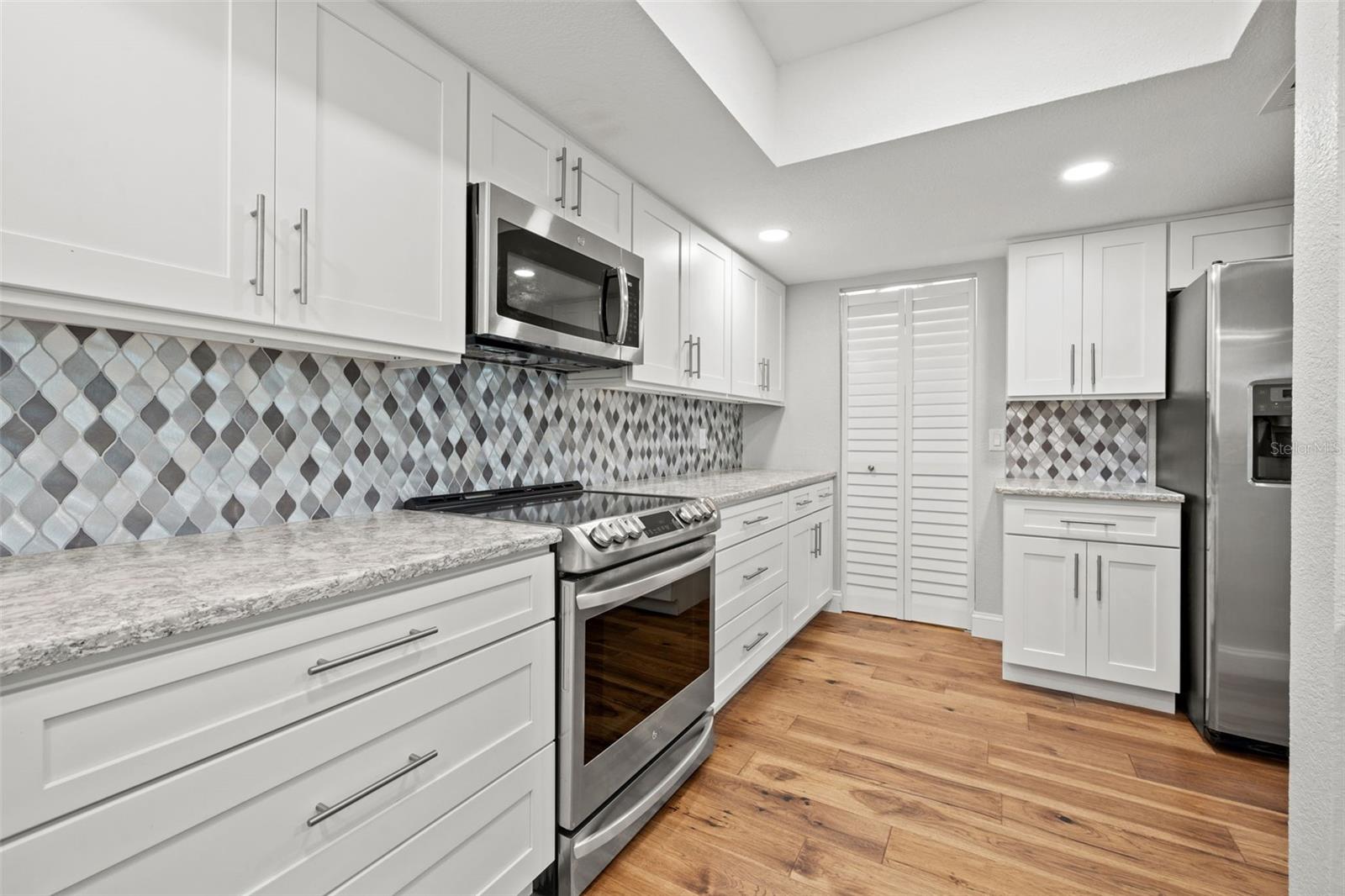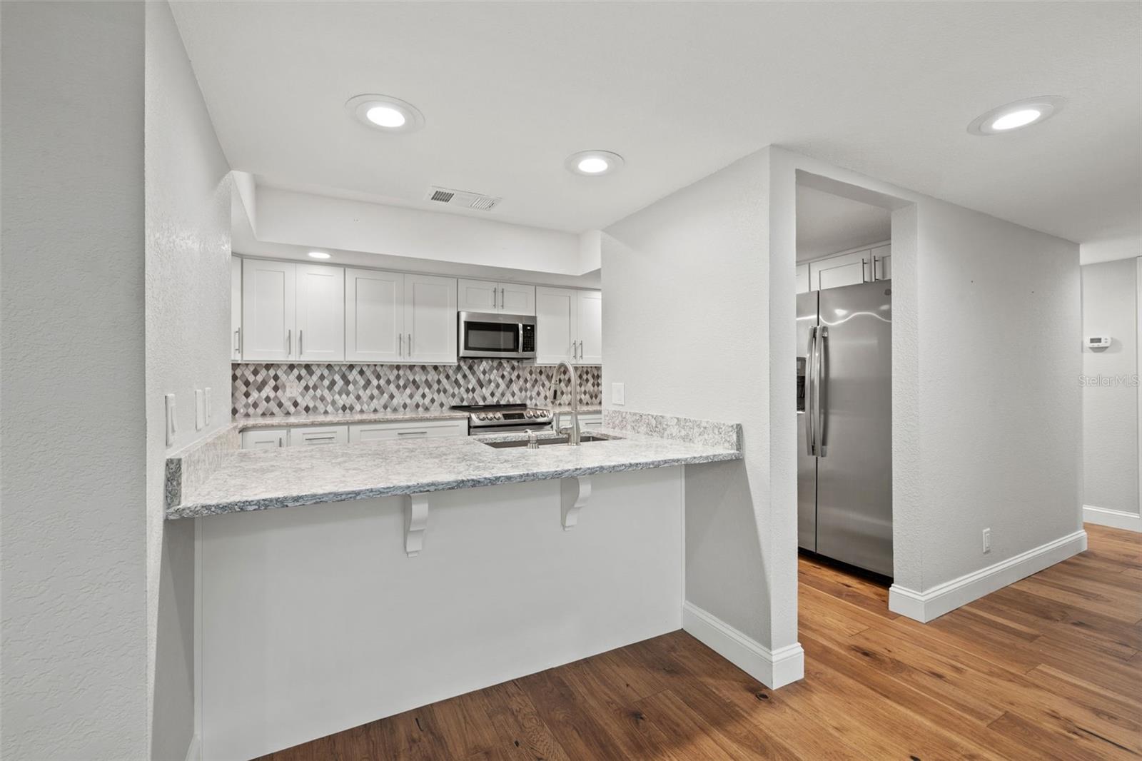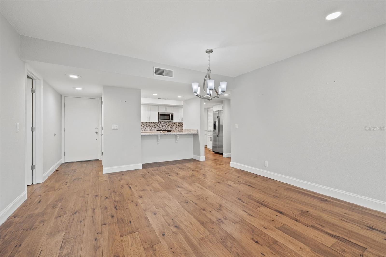 One or more photo(s) has been virtually staged. Discover effortless elegance in this fully renovated 3-bedroom, 2-bath residence, offering 1,666 square feet of meticulously designed, single-level living with building elevator in the prestigious gated waterfront community of Mariner Village in Tarpon Springs. Step inside to find stunning hickory floors that flow through an open and light-filled floor plan. The fully updated kitchen dazzles with quartz countertops, stainless steel appliances, custom cabinetry, breakfast bar and full pantry. The primary suite is a sanctuary with a walk-in closet featuring built-ins and a spa-inspired bathroom with dual sinks and private water closet with walk-in shower. On the opposite side of the home the 2 additional bedrooms each have balcony access and the fully updated 2nd bathroom with tub/shower combo are tucked away for added privacy for guests, office space or den area. Outside, unwind on your private, covered balcony, surrounded by serene wooded and mangrove views along your picturesque walking trails. Indulge in the amenities of Mariner Village, including kayak access, a heated pool, clubhouse with sauna, fitness center, tennis and pickleball courts, and breathtaking waterfront walking paths. The neighboring community of Tarpon Cove offers boat docks available on a first-come, first-serve basis, adding to your lifestyle options. Every detail within the unit, from the hurricane impact windows and doors plus electric hurricane shutters, newer water heater, upgraded electrical and plumbing, window treatments and more has been thoughtfully considered for your comfort and peace of mind. With a 24-hour guard gate and a vibrant, close-knit community, this property is perfect for those seeking a low-maintenance, luxury lifestyle with a multitude of amenities included. Whether you’re a snowbird or looking for your forever home, this is your chance to embrace the best of Florida living in a stunning waterfront setting.