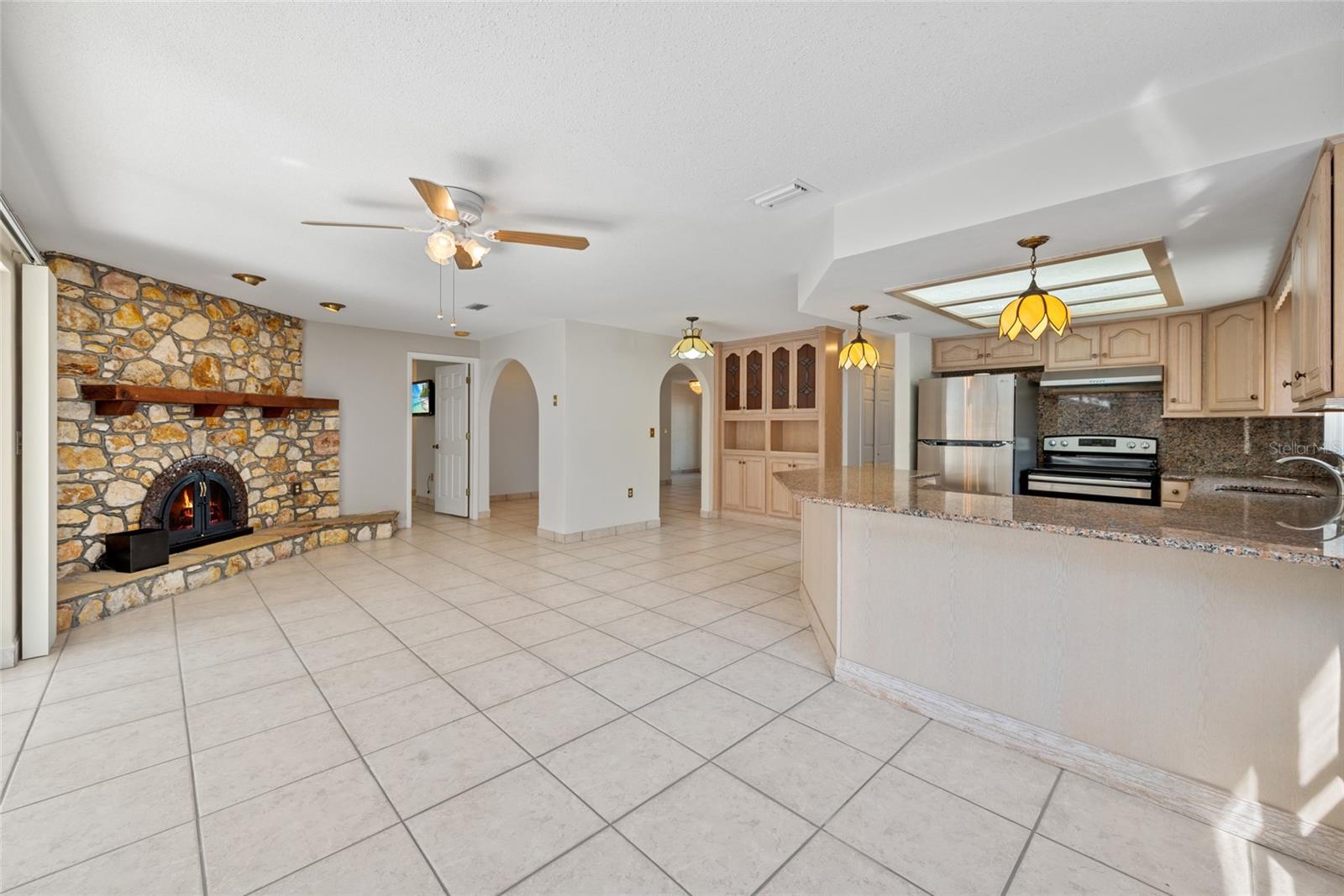 This charming 3-bedroom, 2-bathroom pool home offers an unbeatable location, just a short stroll from Fred Howard Park and only six homes away from the Gulf of Mexico. With 37 years of prideful ownership, this property radiates care and attention to detail. Situated in one of Tarpon Springs’ most desirable neighborhoods, homes like this are rare to come by. The bright and open kitchen features elegant granite counter-tops and seamlessly flows into a spacious living area, centered around a stunning stone fireplace with a wood mantel. For added convenience, a half-bath is located nearby, perfect for guests. The formal dining room offers easy access to an additional living space, providing plenty of room for entertaining. The thoughtfully designed floor plan includes a private primary suite with an en-suite bath, complete with an over-sized vanity and a large walk-in shower. The two generously sized guest bedrooms are bathed in natural light and provide ample storage, sharing a second full bathroom with dual pedestal sinks and a walk-in shower. Step outside to the sparkling pool, ideal for relaxing and enjoying Florida’s warm climate, especially as the evening breeze rolls in from the nearby Gulf. The lush backyard is home to a variety of fruit trees and native Florida plants, enhancing the beauty of this well-maintained property. This home is ready for its next owner to enjoy the best of coastal living. Don’t miss the opportunity to make it yours—schedule a showing today and experience this beautiful home and the sought-after neighborhood for yourself. *NO water intrusion from the two 2024 storms*