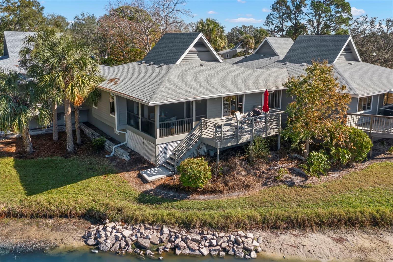 PRIVATE, PEACEFUL, POINTE ALEXIS! Tucked away on the peninsula of Tarpon Springs, this upscale community offers the perfect setting to relax, reflect & recharge. Launch your kayak in Lake Avoca, enjoy pickleball, tennis, shuffleboard, basketball. The grand Clubhouse includes fitness center, library, billiard room & large function room with kitchen facilities. Wind down in the amazing oversized, heated, pool/spa or join ongoing activities with friends & family. Light & bright, this 3 bedroom/2 bath waterside villa (high & dry - unit had no water intrusion) offers an open concept, split floor plan, large screened porch, open deck, water views & amazing sunsets! Villas are designed to afford privacy, quiet & relaxation for each unit. The updated kitchen with granite countertops, solid wood cabinets & convenient breakfast bar leads you to a spacious dining area & living room. The primary bedroom includes private en suite bath with walk in closet. French doors lead out to the large screened porch overlooking a pond. Plenty of light provides a sitting area to read a good book. Spend your afternoons watching the scene unfold in front of you that nature offers from the deck. Laminate/tile flooring throughout, generous cabinets & closet space, outdoor storage closet & 2 assigned parking spaces complete the package. Location close to everything Tarpon Springs has to offer - art, shopping, restaurants, golf, beaches, parks, hospital/medical facilities, historical Tarpon Springs Sponge Docks & the Pinellas Trail. Easy commute to Tampa, Clearwater & St. Petersburg for work or pleasure. Excellent rental history. Love where you live!