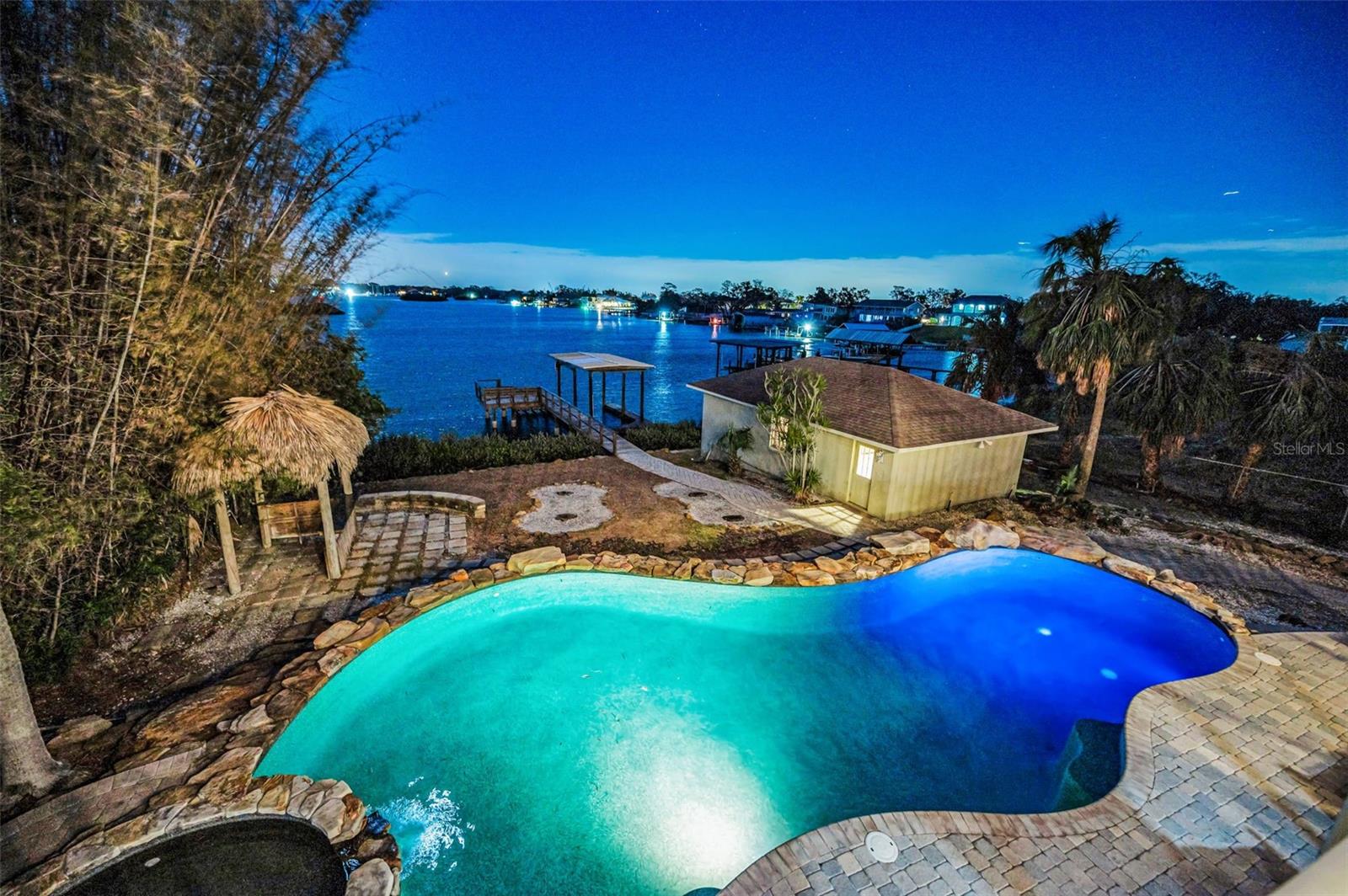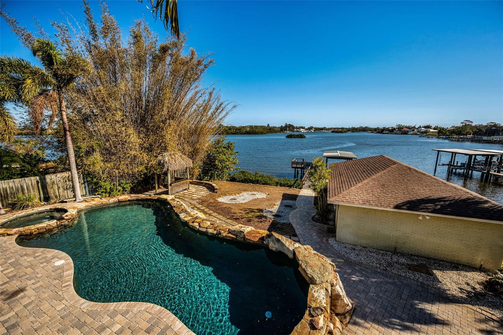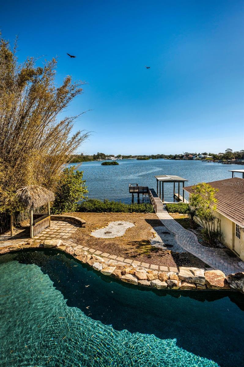 DOLPHIN COVE ESTATE! Truly unique, comprising of 3 detached structures, each with private residences. This magnificent estate home is a rare find in north Pinellas County, located in the Historic City of Tarpon Springs. Perfectly situated on the most desirable waters of the Anclote River, built high above any recent flood waters (X Zone with no flooding on any structure). The estate is comprised of three structures: Main House with 4 bedrooms, 4 baths (3 full, 1 half), and the main living areas; the Boat House or in-law suite with kitchen, bath and private entry; and the Detached, 3 bay garage with rough plummed 2nd floor living space, private parking and private entry. Spectacular views abound from almost every room revealing open views of the river frontage, distant marinas and protected islands that welcome exotic birds from around the world. This property offers an unmatched feeling of peace and serenity! To the chefs delight, you will find the gourmet kitchen with top end appliances, stone countertops, and unique honey marble flooring. The floor plan is traditional with some of the largest rooms you will find in any residential home. Window treatments included plantation shutters on the first floor. Two fireplaces; the living and family room with other built in features. So many bonuses to the property: the very customized pool with large boulder landscape; detached in-law quarters; detached garage with private entries; rough plumbed second floor that is ready to become your dream space. All nestled along the banks of the Anclote River. Share your views morning and afternoon with dolphins, manatee, shore birds, eagles, and more. The lifestyle this property offers is certainly special and not often available.
