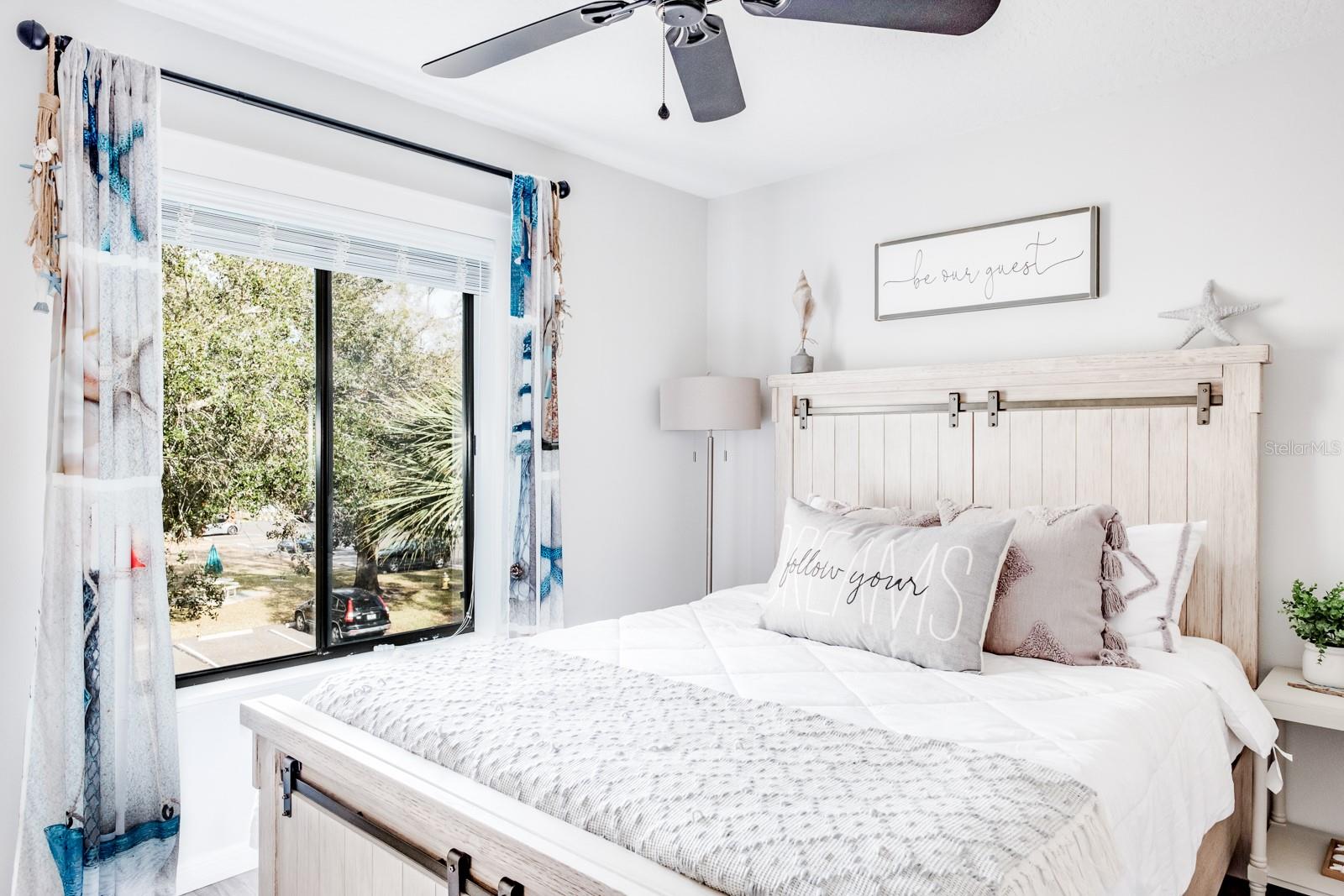 Dazzling! Fully updated home in the carefree living community of Pine Ridge at Lake Tarpon Village! This spectacular, fashionably reimagined condo is meticulously maintained! Pride of ownership abounds! Totally upgraded with sophisticated taste this elegant home perfectly combines style and functionality. Nearly 1,000 sq. ft. with 2 bedrooms and 2 bathrooms plus an enclosed balcony. NO POPCORN ceilings!!!!! This open concept great room floorplan features spacious dining and living areas with gorgeous luxury vinyl flooring, upgraded fixtures, ceiling fan, recessed lighting, and soaring vaulted ceilings accented by a transom window allowing tons of natural light. Sliding glass doors with fabulous plantation shutters lead to the outdoor balcony which extends your living and entertaining space. The spacious balcony boasts a new enclosure. Sliding windows with screens allow you to open or close and comfortably experience the Florida seasons! A perfect setting for morning coffee or afternoon cocktails! The kitchen is a showstopper… fully remodeled with upscale solid wood white shaker soft-close cabinetry featuring 42 inch upper cabinets, lazy susan and spice cabinet, topped with designer quartz counters and glass tile backsplash and accented with upgraded hardware, undermount SS sink, top-of-the-line SS appliances including a café’ style ceran top range, built in microwave, side by side refrigerator and dishwasher, recessed lighting and the beautiful luxury vinyl flooring found throughout the home. A cozy breakfast bar serves as a pass through and opens the kitchen to the great room. Laundry is conveniently located in the hall closet with washer and dryer conveying with purchase. The perfectly situated hall bathroom is smartly updated in the same refined aesthetic found throughout the home. It features a single decorative vanity, shiplap walls, and a beautifully tiled tub/shower combination. The secondary bedroom is across the hall with convenient bathroom access. The spacious primary bedroom boasts a full walk-in closet outfitted with a fabulous custom closet system, fully remodeled ensuite with chic shiplap walls, a decorative vanity, full walk-in shower with floor to ceiling tile and framed shower glass. Pine Ridge at Lake Tarpon Village is a well-kept community in the desirable East Lake Corridor. The HOA fee includes exterior and grounds maintenance, sewer, water and trash, community pool, playground, and tennis courts. The community is zoned for some Pinellas County's most sought-after schools. Close to shopping, restaurants and medical, easy access to the Pinellas Trail, and of course the famed Gulf beaches are nearby. A welcoming community and a stylish, updated, truly move-in ready home awaits! This is carefree Florida living at its finest!!!!