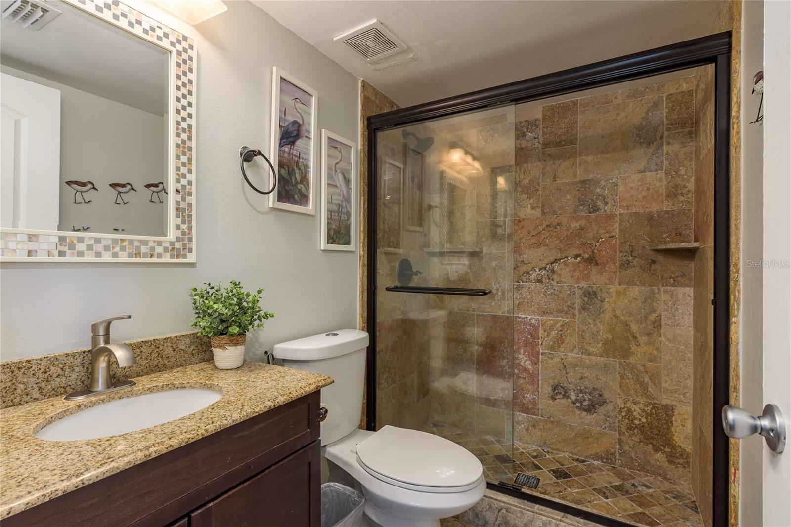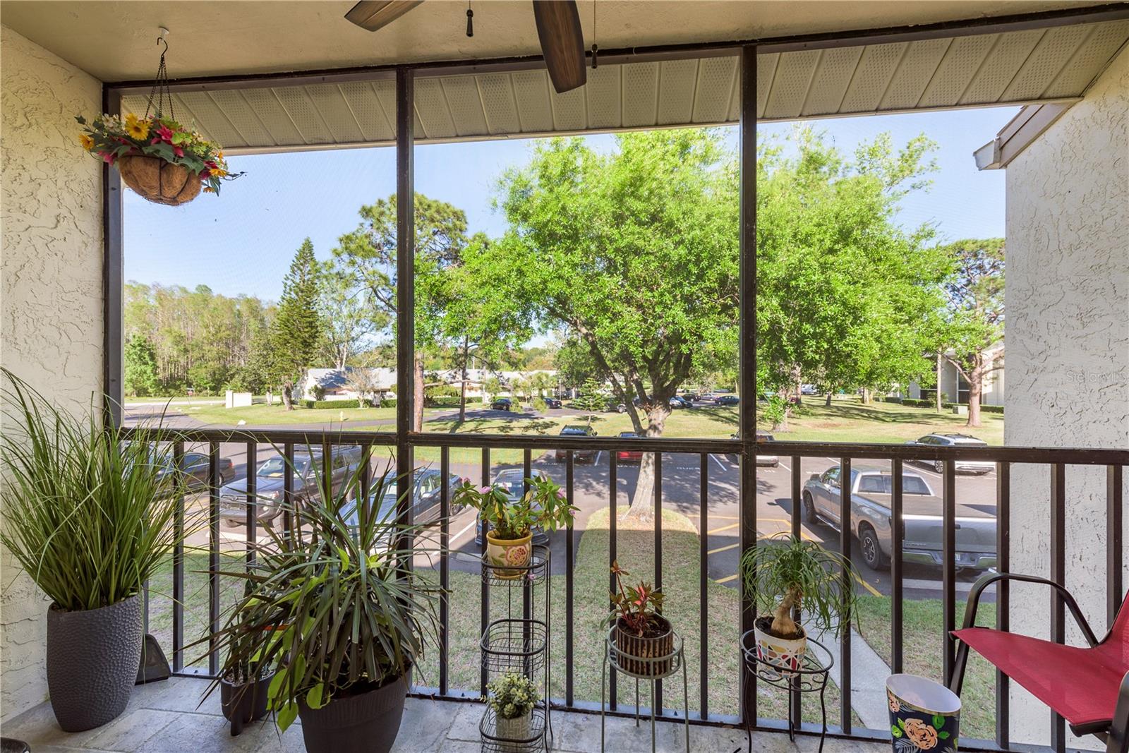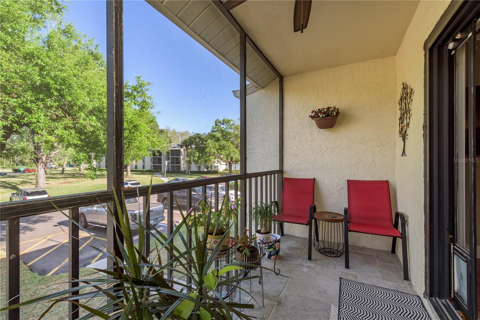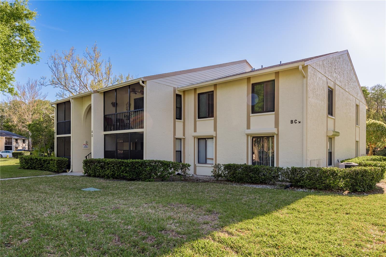 Ready to move into a beautifully updated and meticulously maintained condo in the serene community of Pine Ridge? This is a fantastic opportunity to own a 2 bedroom, 2 bathroom, 1,041sf home 2nd floor CORNER UNIT! Upon entering you are wowed by the open concept and natural flow of the floor plan. You can’t miss the screened-in patio through the recently upgraded hurricane-force sliding glass doors and travertine tiled floor, perfect for your morning coffee. Back inside, you’ll notice the laminate wood flooring that spans across most of the unit. The dining space is adjacent to the breakfast bar in the kitchen. You will find custom wood cabinets with stunning granite countertops, stone tile backsplash, travertine tile flooring and modern, updated stainless steel appliances and fixtures. The kitchen also overlooks the living and dining room, which is perfect for entertaining. Just down the hall is the large primary suite (14’4”x 13’4”), with two large hurricane-force windows. The room features a large walk-in closet (with paneled floor attic storage space), an en-suite bathroom that has been tastefully updated with a beautiful travertine tile walk-in shower, and a granite countertop vanity. The adjacent bedroom is perfect for visitors with two closets, hurricane-force window and access to the 2nd updated bathroom with a bath/shower combo and a newer vanity. In the hallway, you will also find a unique 8x10 laundry room which currently features a custom built-in office area, with an abundance of storage. The All-Ages Welcome community of Pine Ridge is a peaceful neighborhood surrounded by nature with many walking paths, and ponds. Pine Ridge features a heated pool & spa, two tennis courts, and a fenced-in playground. Location is everything as you are near all types of retail, restaurants, hospitals, top-rated schools, and a short 30-minute drive to Tampa International Airport, as well as award-winning beaches.