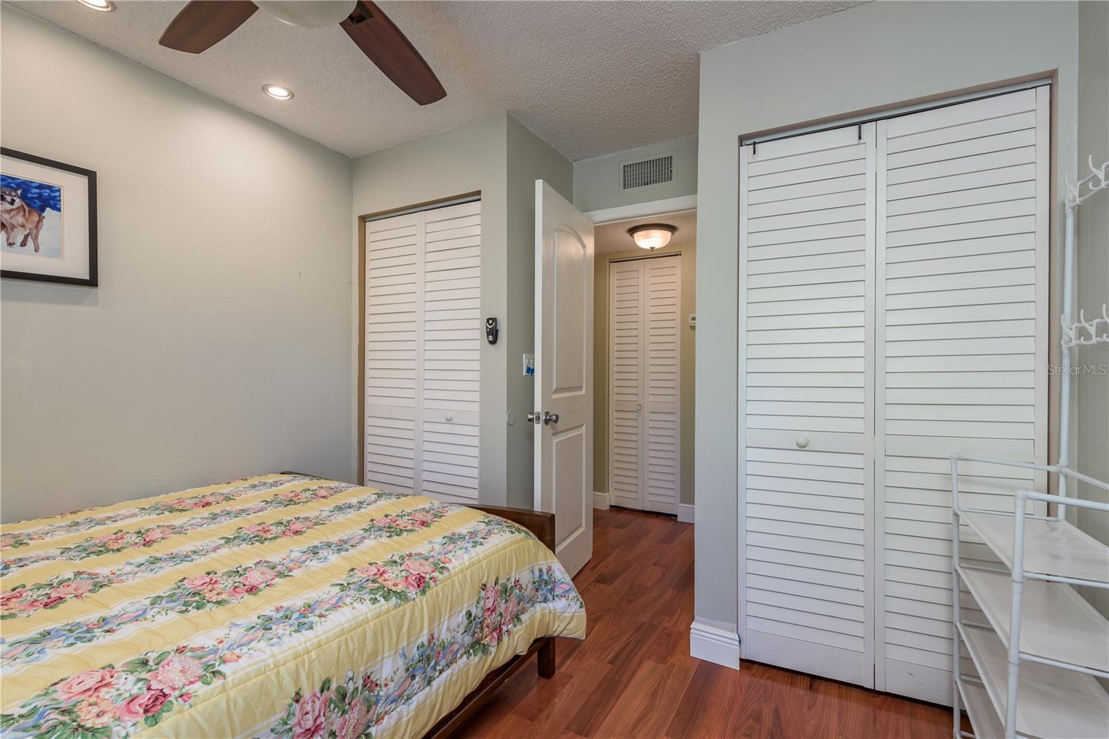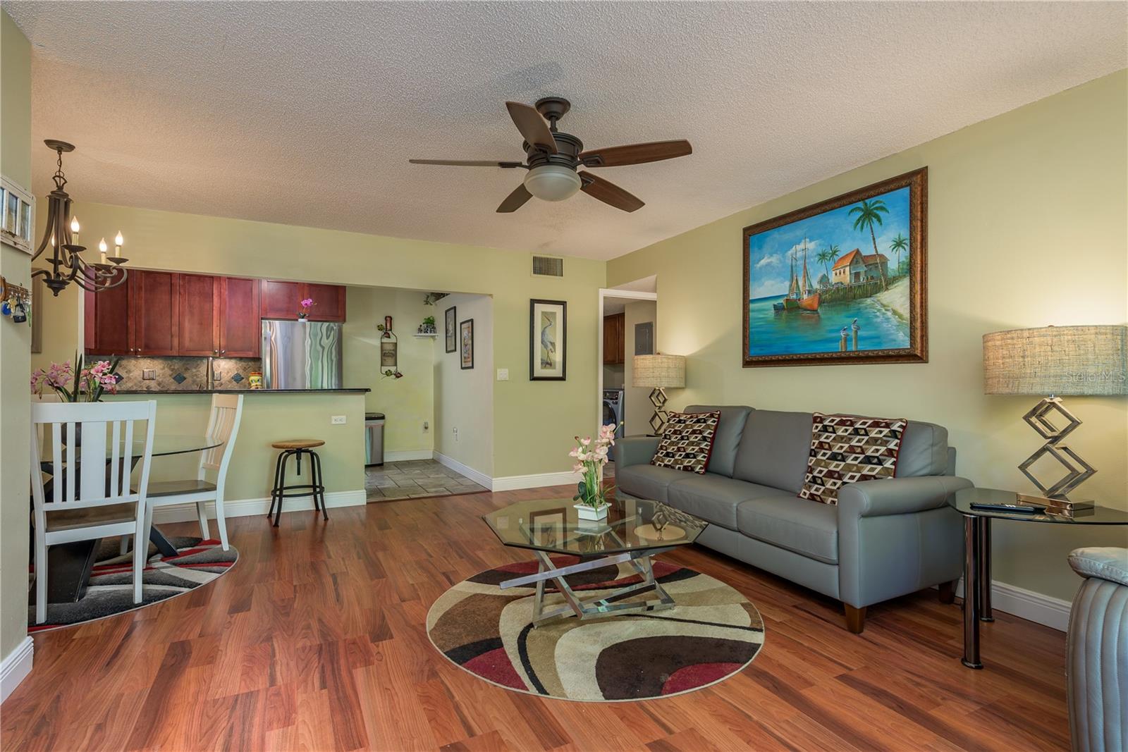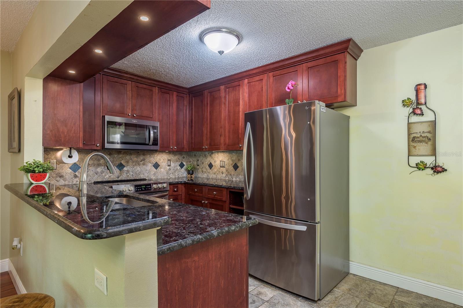 Ready to move into a beautifully updated and meticulously maintained condo in the serene community of Pine Ridge? This is a fantastic opportunity to own a 2 bedroom, 2 bathroom, 1,041sf home 2nd floor CORNER UNIT! Upon entering you are wowed by the open concept and natural flow of the floor plan. You can’t miss the screened-in patio through the recently upgraded hurricane-force sliding glass doors and travertine tiled floor, perfect for your morning coffee. Back inside, you’ll notice the laminate wood flooring that spans across most of the unit. The dining space is adjacent to the breakfast bar in the kitchen. You will find custom wood cabinets with stunning granite countertops, stone tile backsplash, travertine tile flooring and modern, updated stainless steel appliances and fixtures. The kitchen also overlooks the living and dining room, which is perfect for entertaining. Just down the hall is the large primary suite (14’4”x 13’4”), with two large hurricane-force windows. The room features a large walk-in closet (with paneled floor attic storage space), an en-suite bathroom that has been tastefully updated with a beautiful travertine tile walk-in shower, and a granite countertop vanity. The adjacent bedroom is perfect for visitors with two closets, hurricane-force window and access to the 2nd updated bathroom with a bath/shower combo and a newer vanity. In the hallway, you will also find a unique 8x10 laundry room which currently features a custom built-in office area, with an abundance of storage. The All-Ages Welcome community of Pine Ridge is a peaceful neighborhood surrounded by nature with many walking paths, and ponds. Pine Ridge features a heated pool & spa, two tennis courts, and a fenced-in playground. Location is everything as you are near all types of retail, restaurants, hospitals, top-rated schools, and a short 30-minute drive to Tampa International Airport, as well as award-winning beaches.