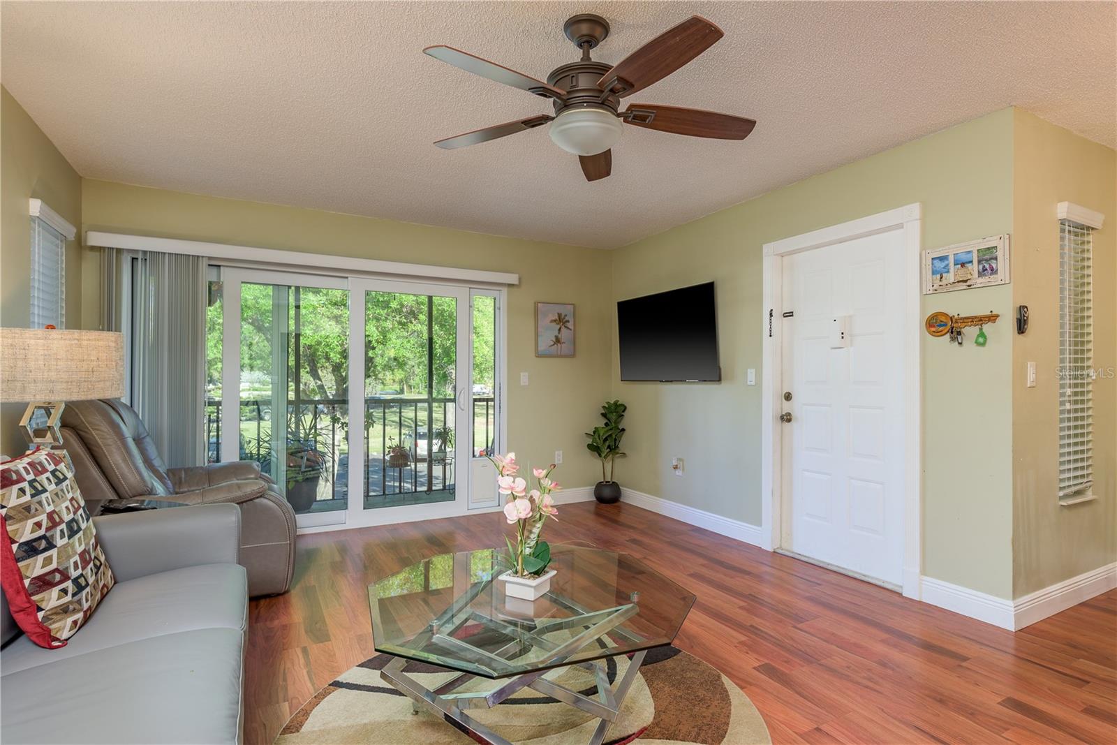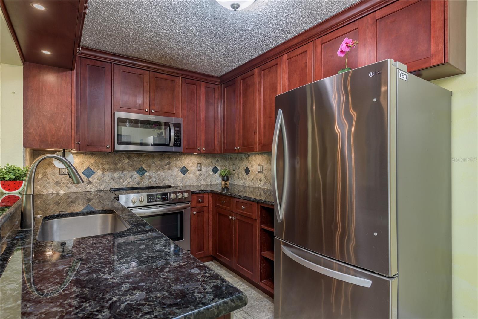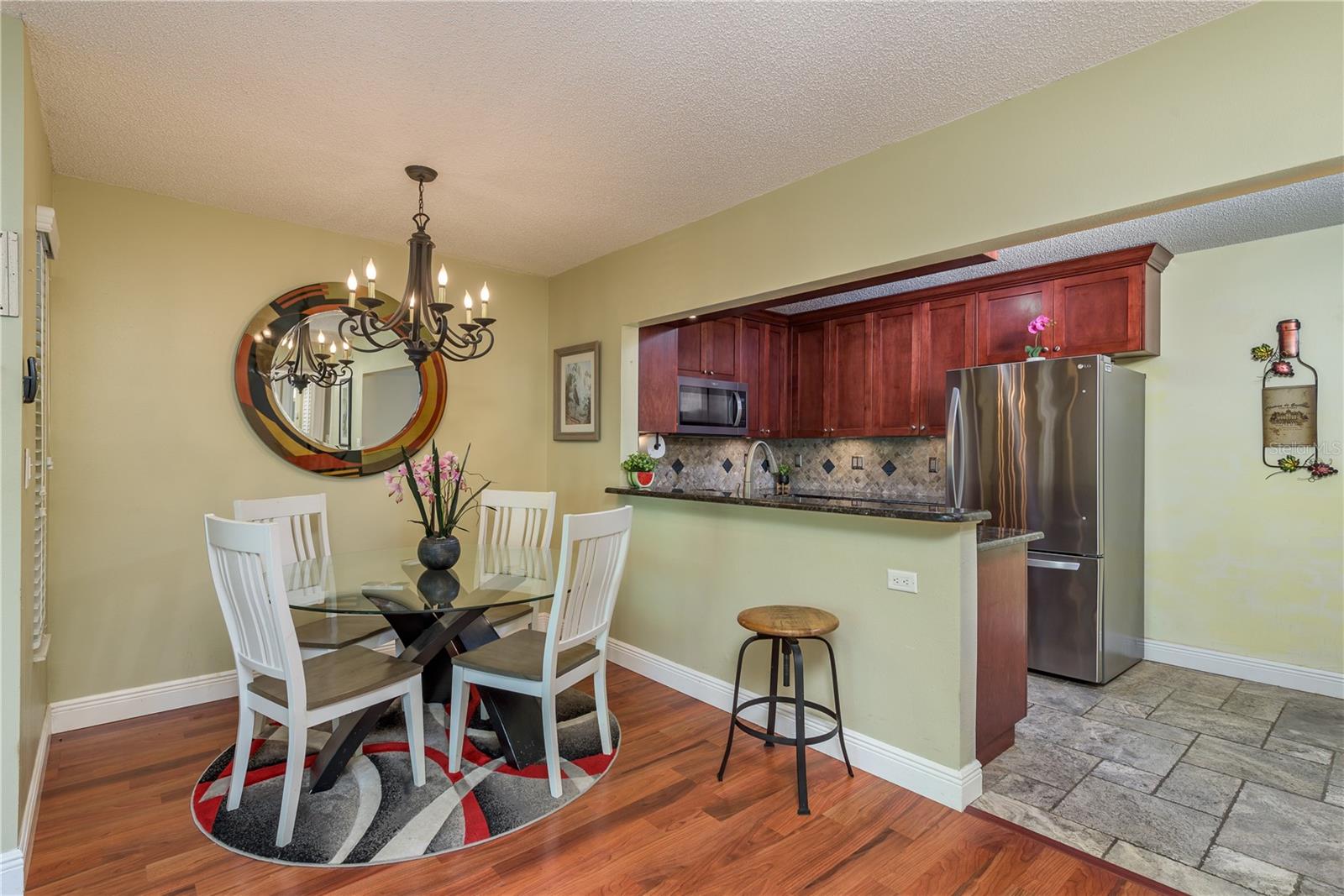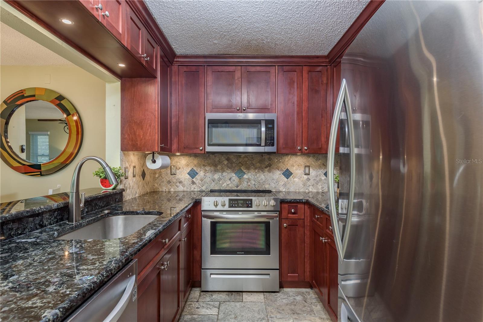Ready to move into a beautifully updated and meticulously maintained condo in the serene community of Pine Ridge? This is a fantastic opportunity to own a 2 bedroom, 2 bathroom, 1,041sf home 2nd floor CORNER UNIT! Upon entering you are wowed by the open concept and natural flow of the floor plan. You can’t miss the screened-in patio through the recently upgraded hurricane-force sliding glass doors and travertine tiled floor, perfect for your morning coffee. Back inside, you’ll notice the laminate wood flooring that spans across most of the unit. The dining space is adjacent to the breakfast bar in the kitchen. You will find custom wood cabinets with stunning granite countertops, stone tile backsplash, travertine tile flooring and modern, updated stainless steel appliances and fixtures. The kitchen also overlooks the living and dining room, which is perfect for entertaining. Just down the hall is the large primary suite (14’4”x 13’4”), with two large hurricane-force windows. The room features a large walk-in closet (with paneled floor attic storage space), an en-suite bathroom that has been tastefully updated with a beautiful travertine tile walk-in shower, and a granite countertop vanity. The adjacent bedroom is perfect for visitors with two closets, hurricane-force window and access to the 2nd updated bathroom with a bath/shower combo and a newer vanity. In the hallway, you will also find a unique 8x10 laundry room which currently features a custom built-in office area, with an abundance of storage. The All-Ages Welcome community of Pine Ridge is a peaceful neighborhood surrounded by nature with many walking paths, and ponds. Pine Ridge features a heated pool & spa, two tennis courts, and a fenced-in playground. Location is everything as you are near all types of retail, restaurants, hospitals, top-rated schools, and a short 30-minute drive to Tampa International Airport, as well as award-winning beaches.