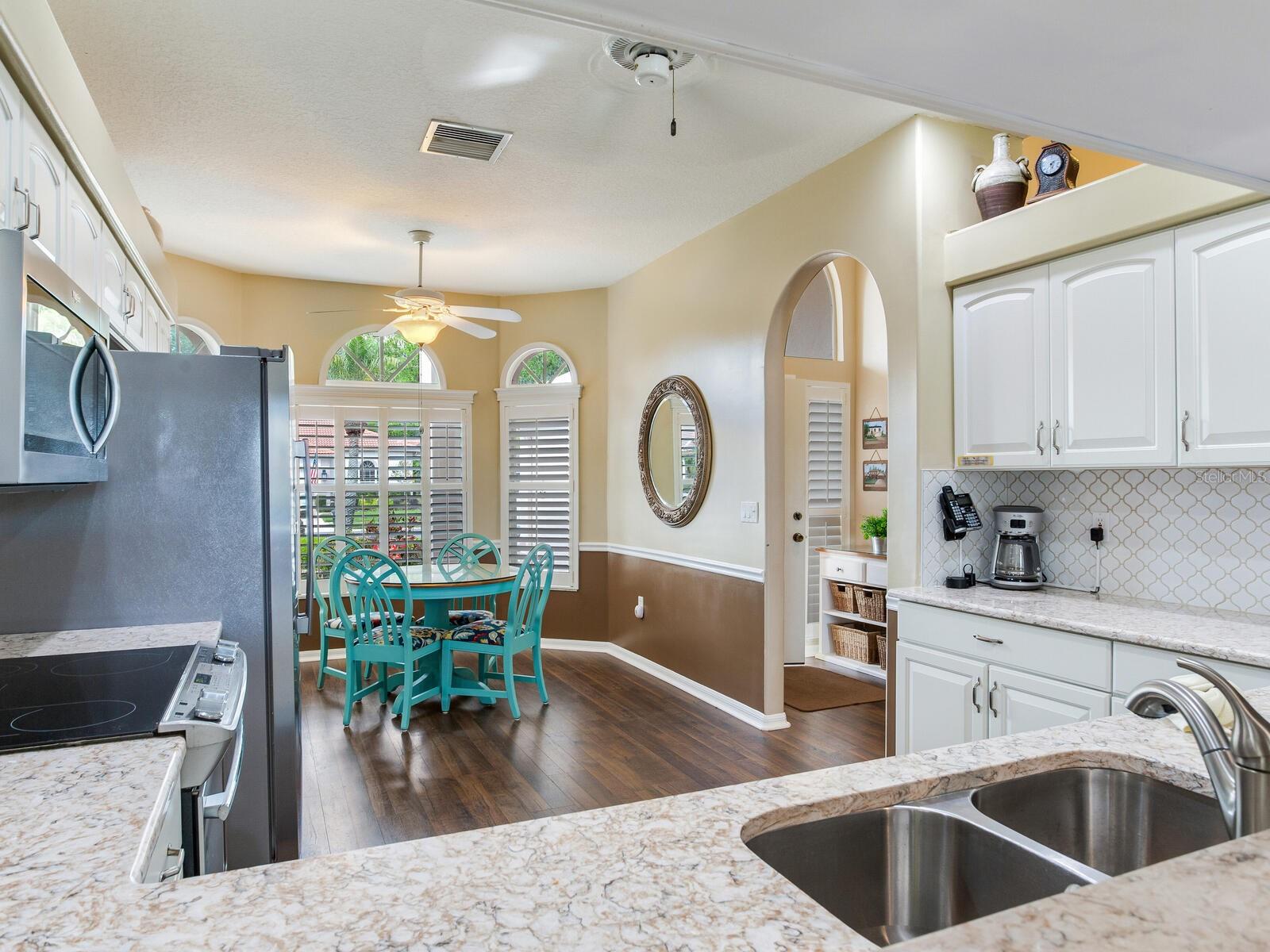 Welcome to your new home in the exclusive, gated, golf front community of Crescent Oaks Country Club! This beautifully maintained 3-bedroom, 2-bath, golf-front villa offers breathtaking views of the 18th hole and year-round serenity. This home delivers the perfect blend of elegance, comfort, and low maintenance Florida living. Step inside to find a spacious, updated kitchen with modern finishes, plenty of cabinet space and a cozy dinette with bay windows overlooking the lush front yard. It’s perfect for both everyday living and entertaining The home offers a split-bedroom layout, the guest bedroom at the front of the house and the primary suite tucked away on the far side for added privacy as well as a central third bedroom that can be used as a quiet retreat or flexible workspace. Light-filled living areas open seamlessly to your backyard oasis featuring a private saltwater pool and serene golf course views—a perfect space to relax or entertain. Upgrades include; new roof (2025) newer water heater (2023) custom shutters that add style and function throughout, and fresh interior paint(2025). This home is move-in ready. Crescent Oaks is a beautifully maintained, active, 24/7 guard-gated community with year-round events and a wide array of top-tier amenities including an 18-hole championship golf course, tennis and pickleball courts, and a full restaurant, bar, and banquet facility. Zoned for excellent schools and located just minutes from the charming Sponge Docks of Tarpon Springs, you'll also enjoy easy access to local restaurants, beaches, and bars, plus both Tampa International and St. Pete-Clearwater airports are only 30 minutes away. Don’t miss the opportunity to live in one of the area’s most sought-after neighborhoods—this is Crescent Oaks living at its finest!